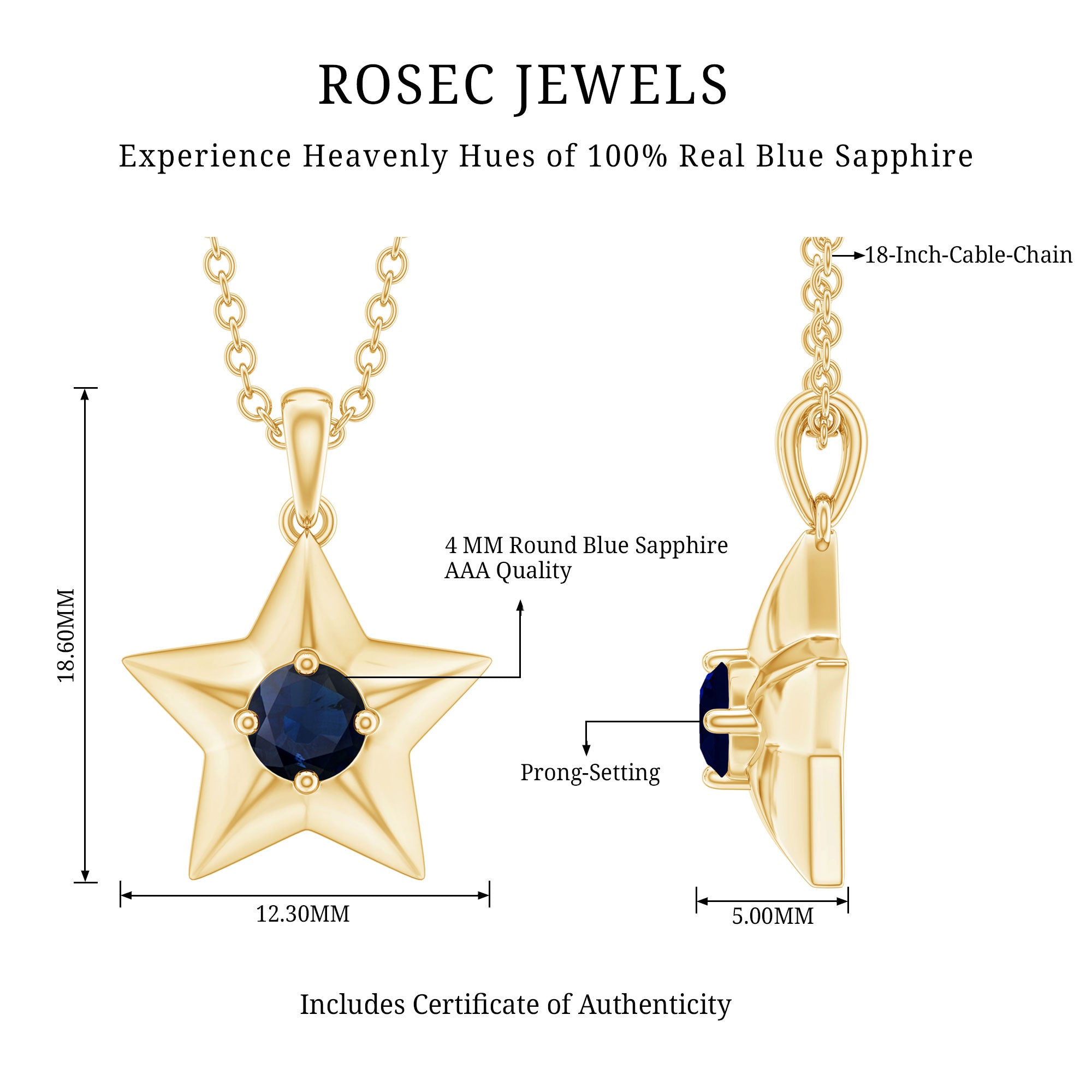 This Gold Star Pendant is embellished with Round Shape Blue Sapphire in Prong Setting. It will be an amazing Birthday gift for a woman to wear that she will adore a lot.