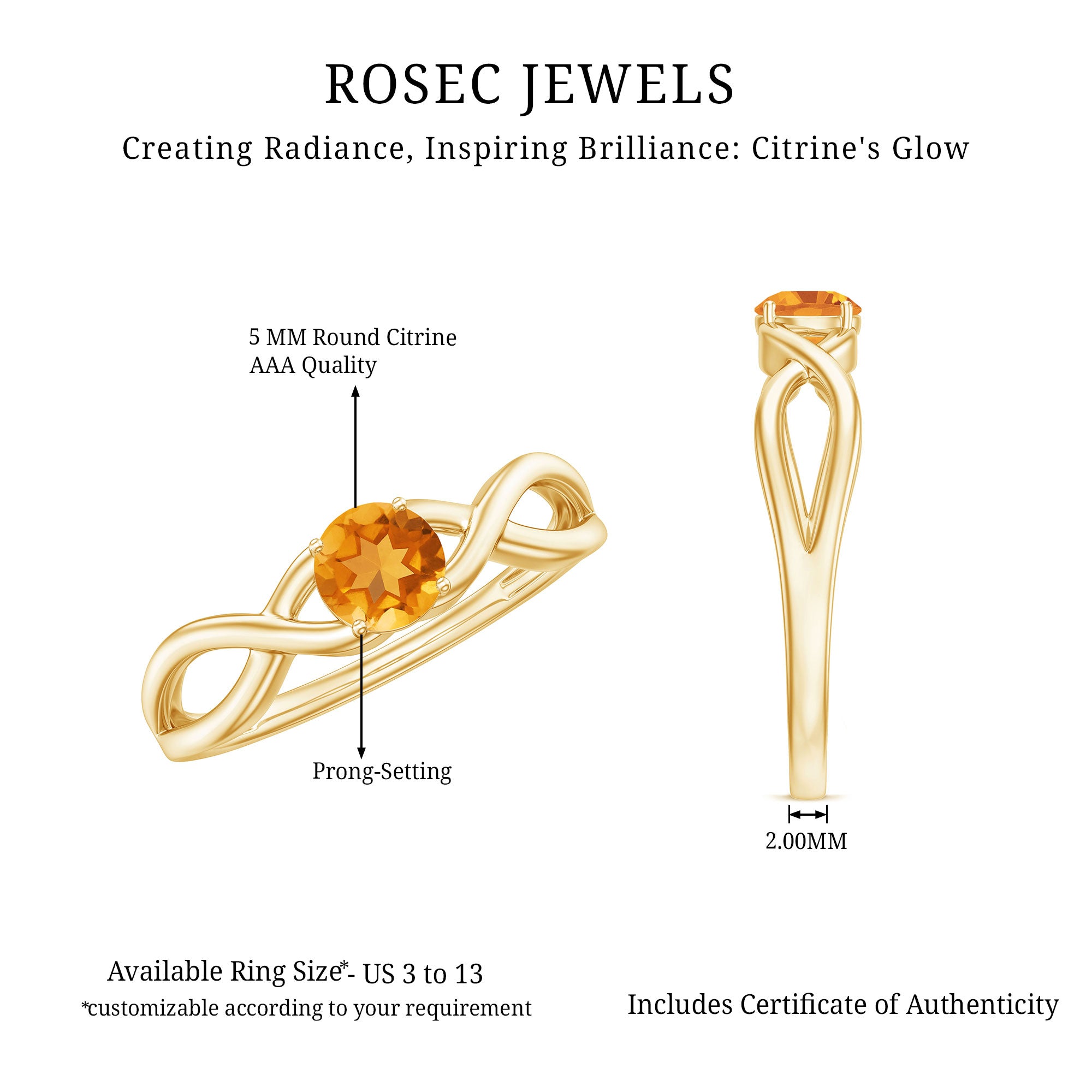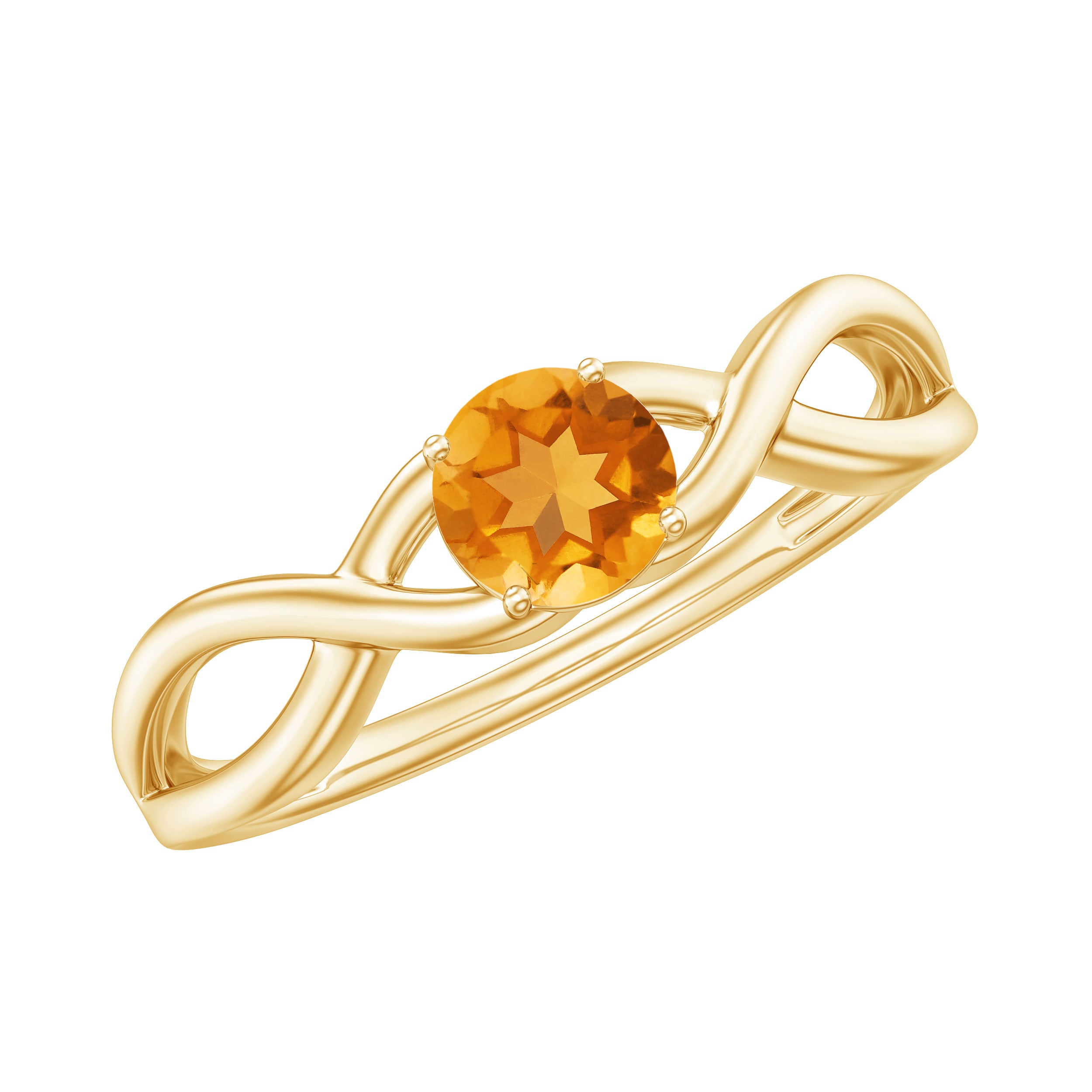 With this adorable Crossover Solitaire Ring add a subtle touch of elegance to your look. Embellished with Round Cut Citrine in Prong Setting, this Citrine Solitaire Ring is crafted with Gold for a luxurious appeal. This Citrine Ring will be a perfect addition to your everyday wear jewelry collection.