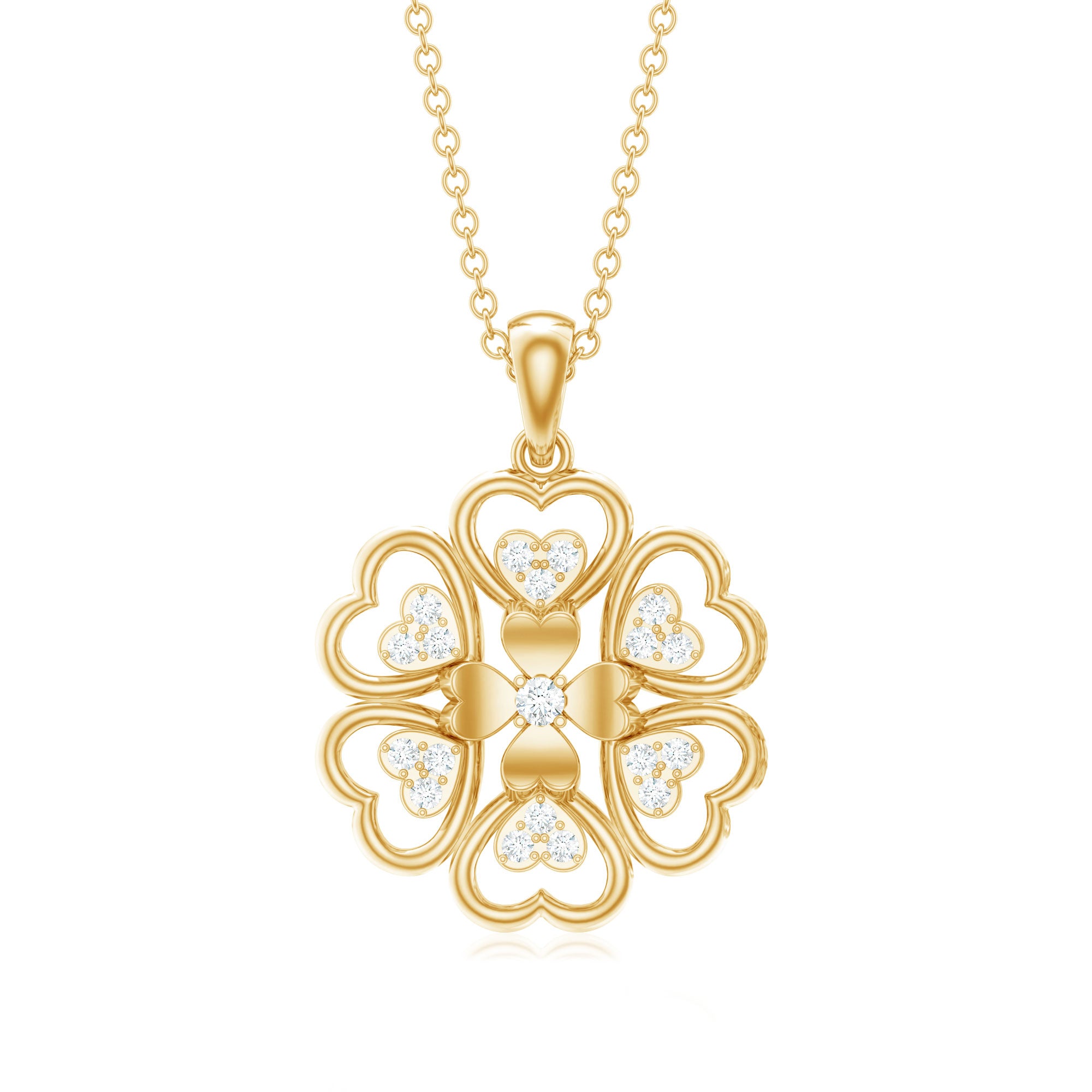 0.25 CT Natural Diamond Heart Gold Petal Flower Pendant Necklace