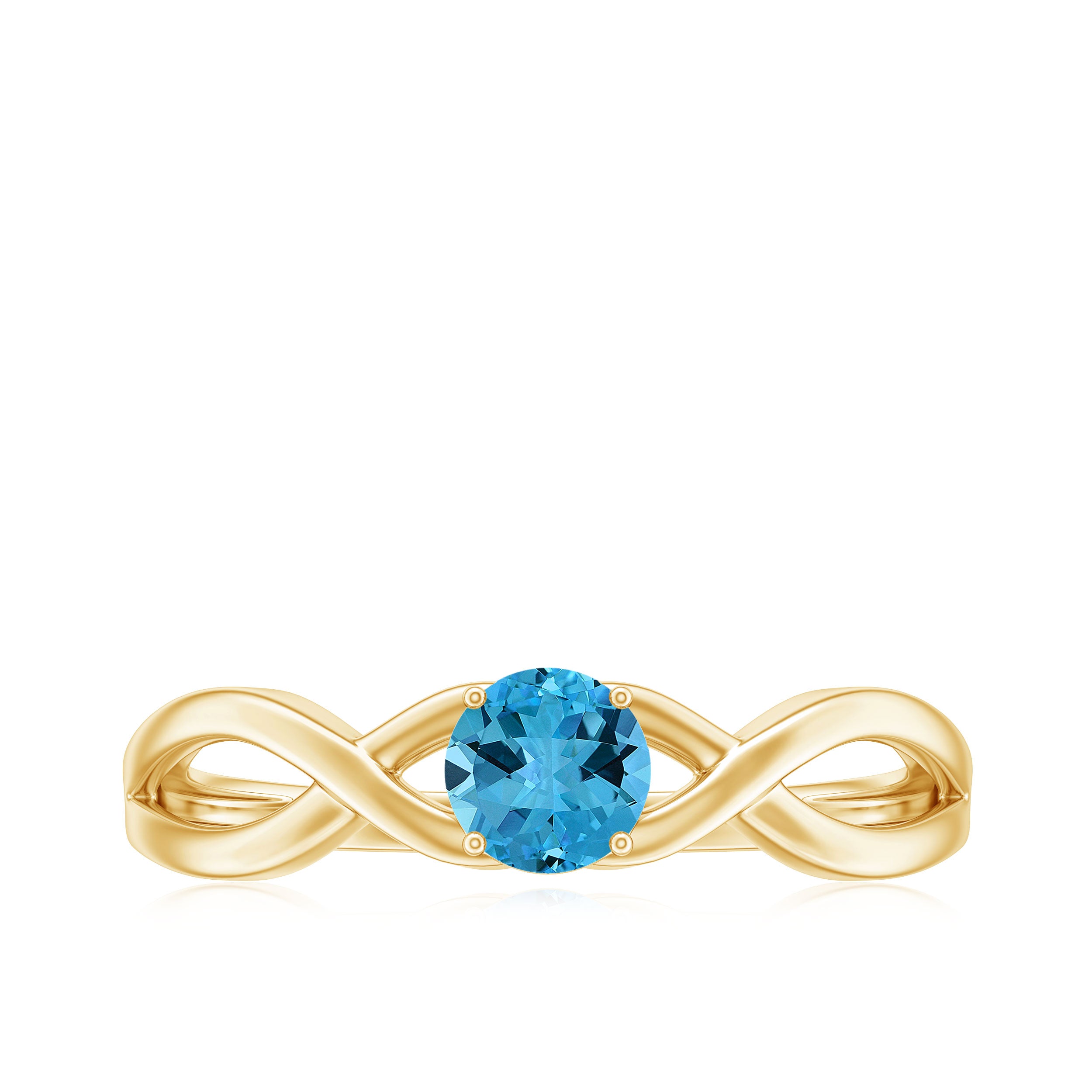 Add a subtle touch of elegance to your day-to-day look by wearing this elegant Crossover Swiss Blue Topaz Solitaire Ring.Swiss Blue Topaz - Brilliant Cut Swiss Blue Topaz Gemstone exhibits AAA Quality and possess vibrant color. Semi-Precious December Birthstone summons prosperity and wealth. It is Natural and Certified, helps in bringing abundance, joy, and perfection to the wearer. Its Durability and Luster is enhanced by Heat and Irradiated Treatment, to further make it a captivating and desirable gem.