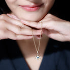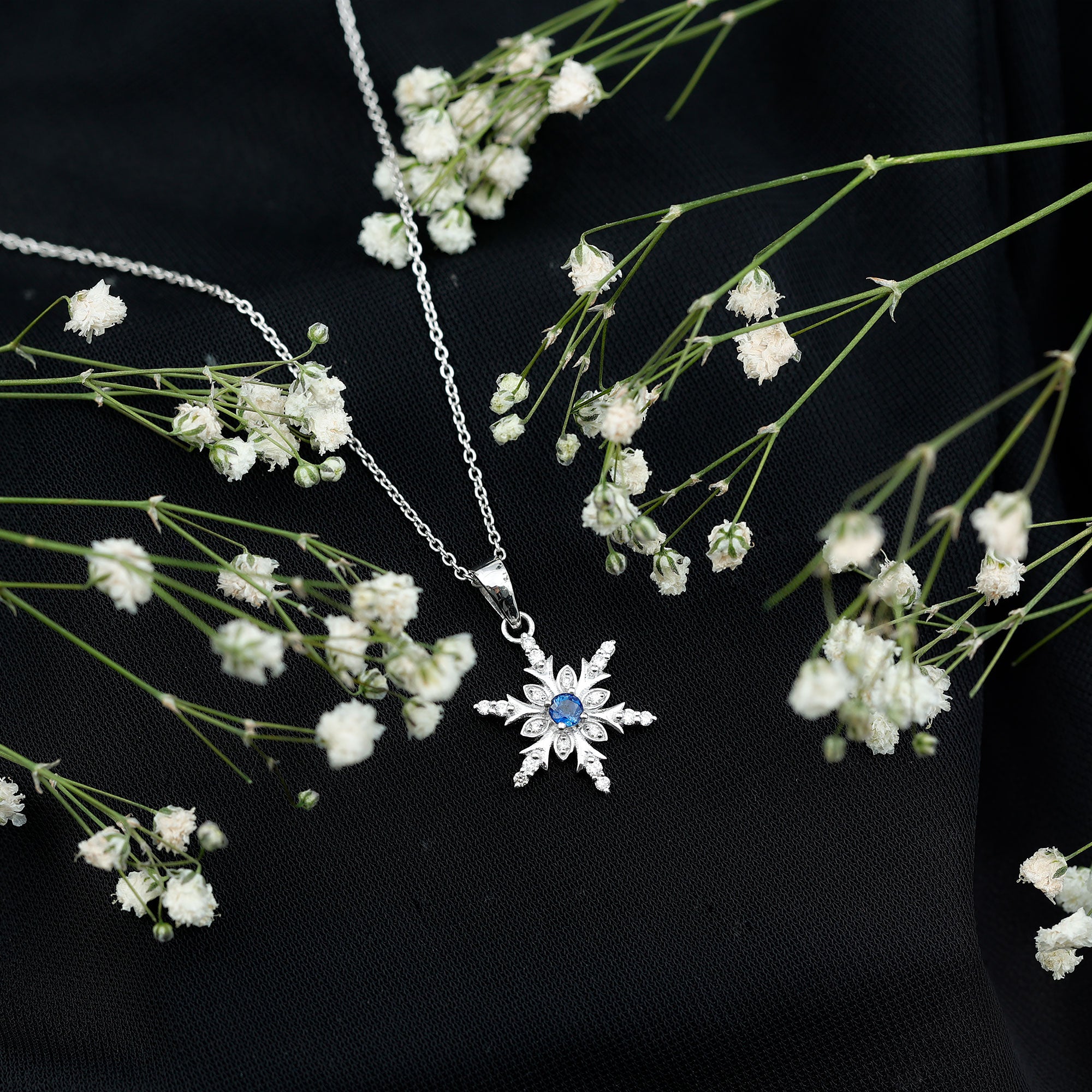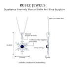 Surprise your cherished partner with this beautiful Blue Sapphire Pendant Necklace and see her fall even more in love with you. The delightful Snowflake Pendant showcases a mesmerizing design featuring a Round Cut Blue Sapphire at its center, flanked by round cut diamond stones, all elegantly set in prong setting. Its lovely and luxurious charm is bound to win her heart and create a lasting impression. Hanging from a delicate chain, this Christmas Necklace is perfect for adding a touch of sparkle to any outfit. Whether you are dressing up for a special event or keeping it casual during the day, it offers just the right amount of shine. The cool glimmer of the sapphire and diamonds gives the piece a timeless, fresh, and radiant feel. This Snowflake Necklace also serves as a wonderful gift idea. It is ideal for holidays, birthdays, or for anyone who brings joy and brightness into your life. Arriving ready to be gifted and sure to impress, it is a piece that will be treasured for years to come.