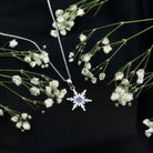 Contemporary Blue Sapphire and Diamond Snowflake Pendant Necklace