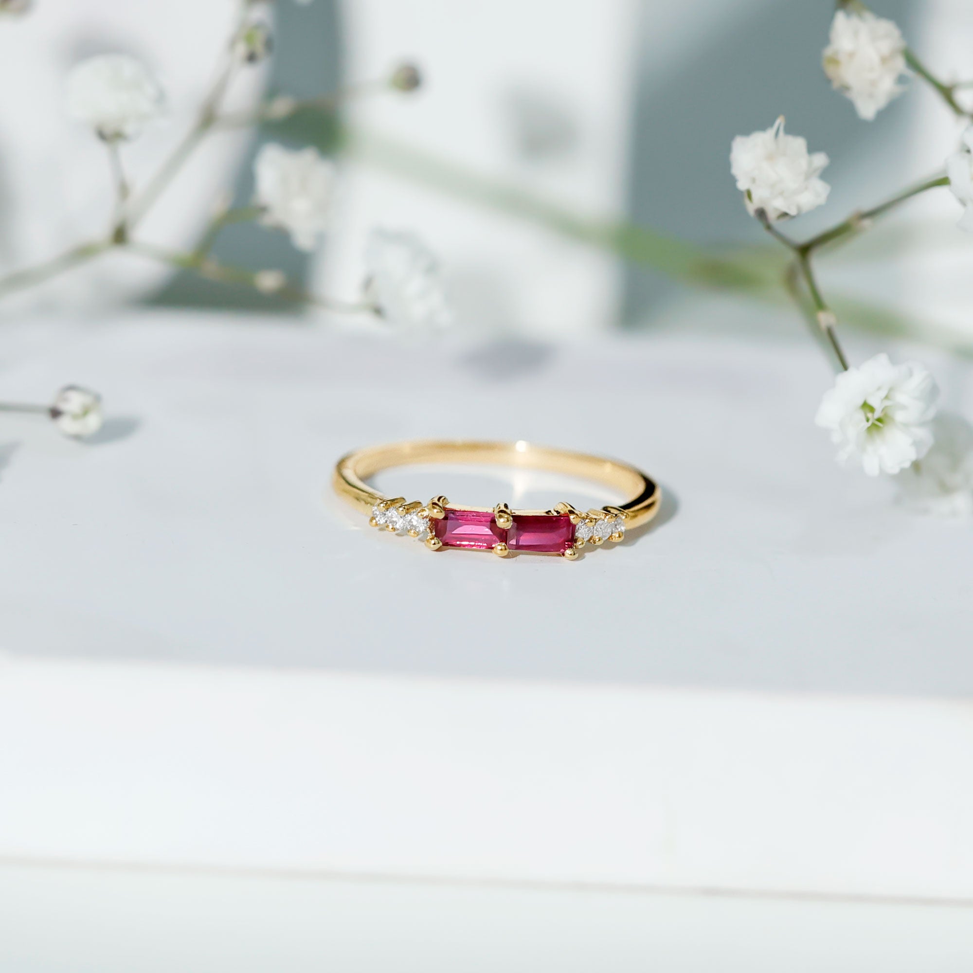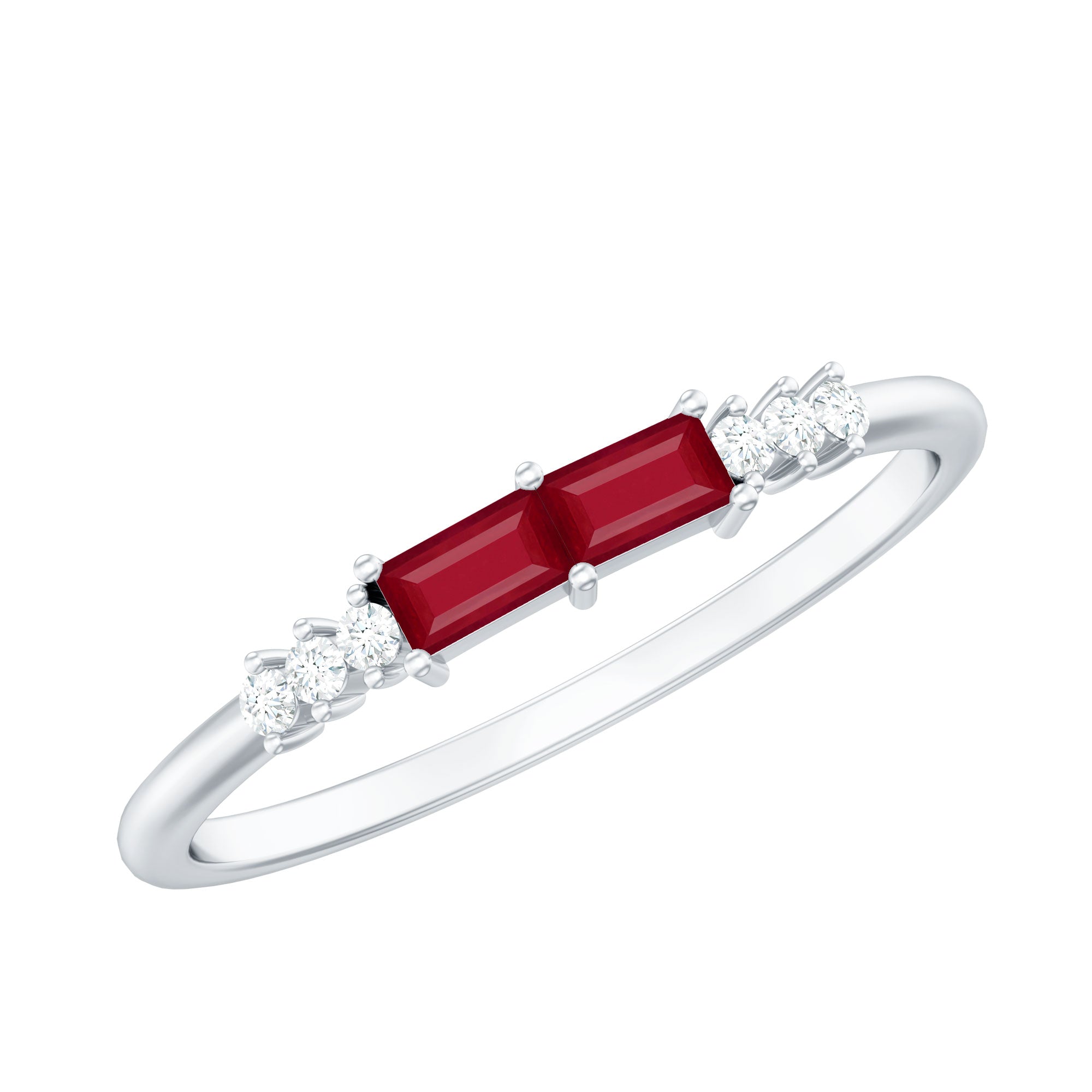 0.50 CT Baguette Shape Ruby Stackable Ring with Diamond