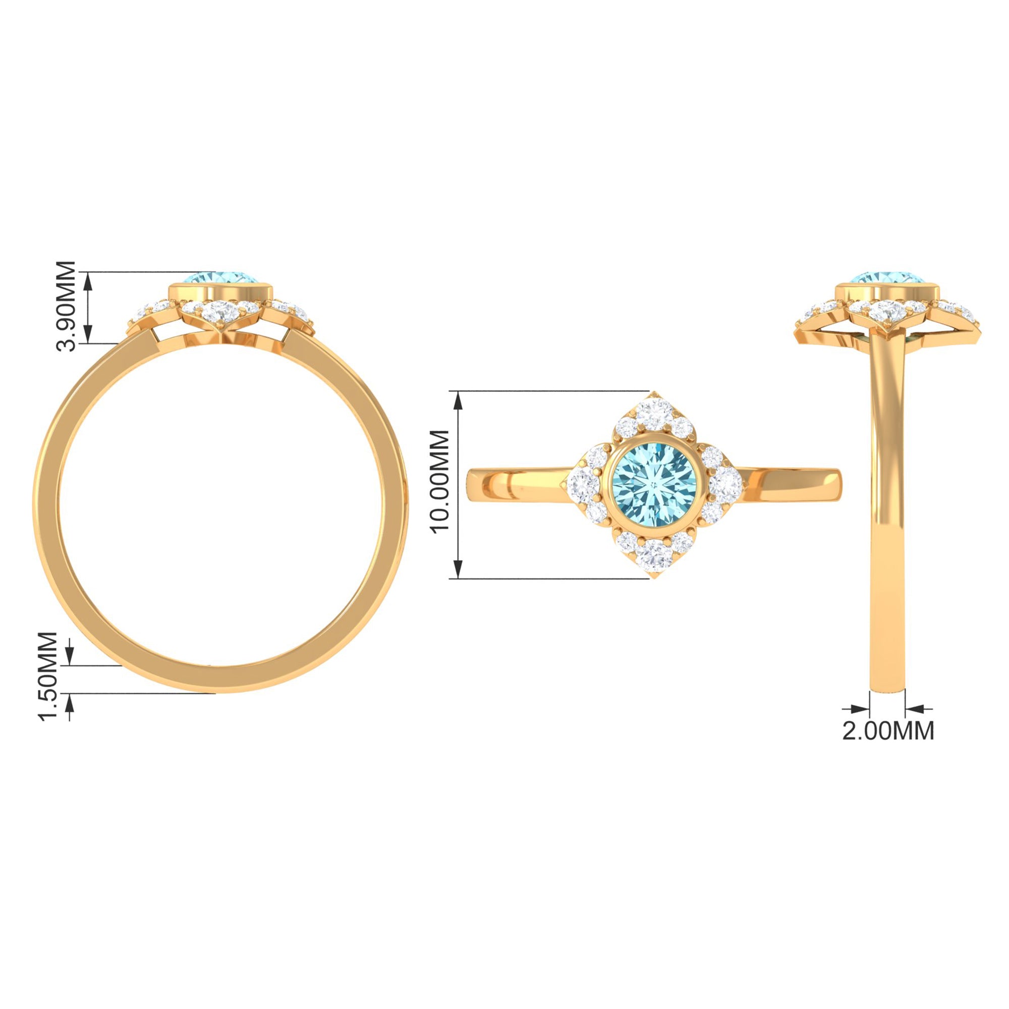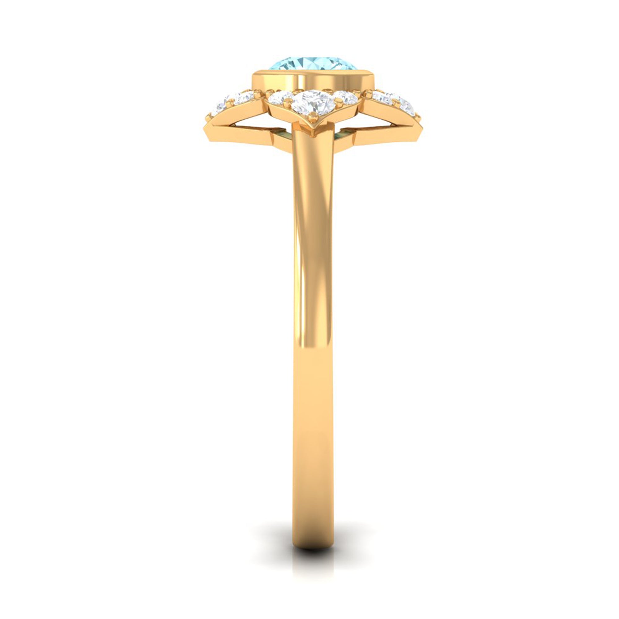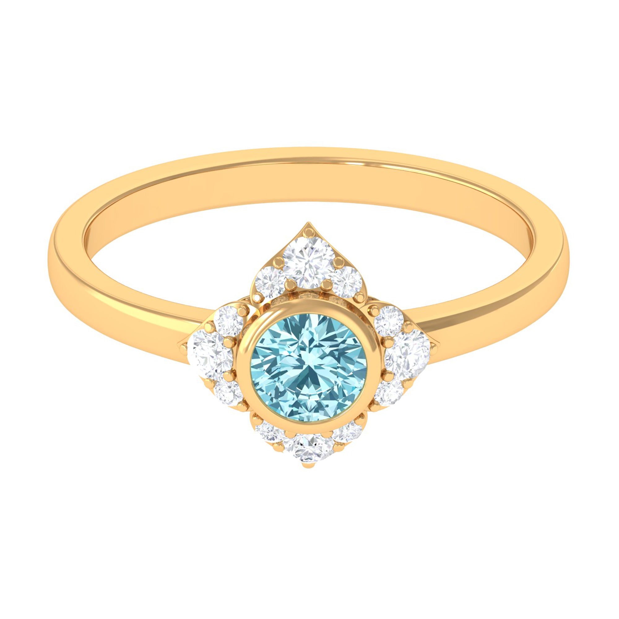 0.50 CT Bezel Set Aquamarine Flower Engagement Ring with Diamond