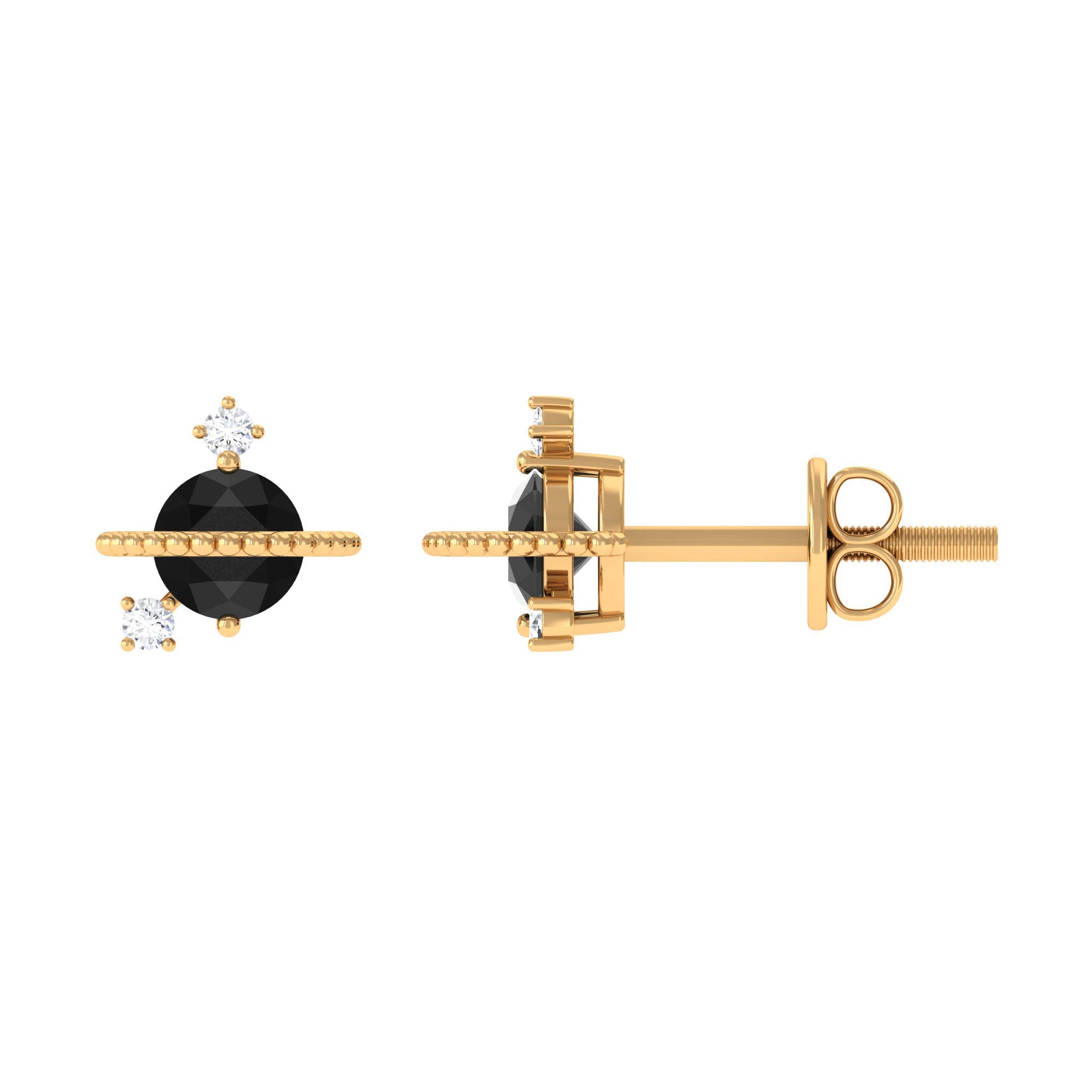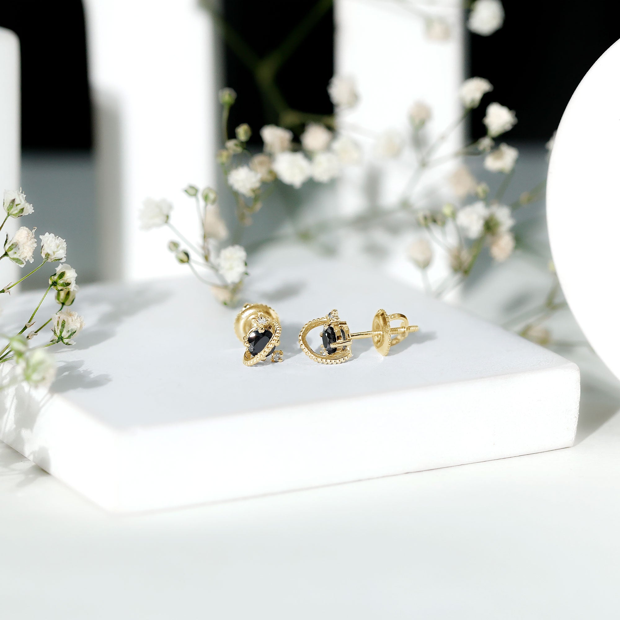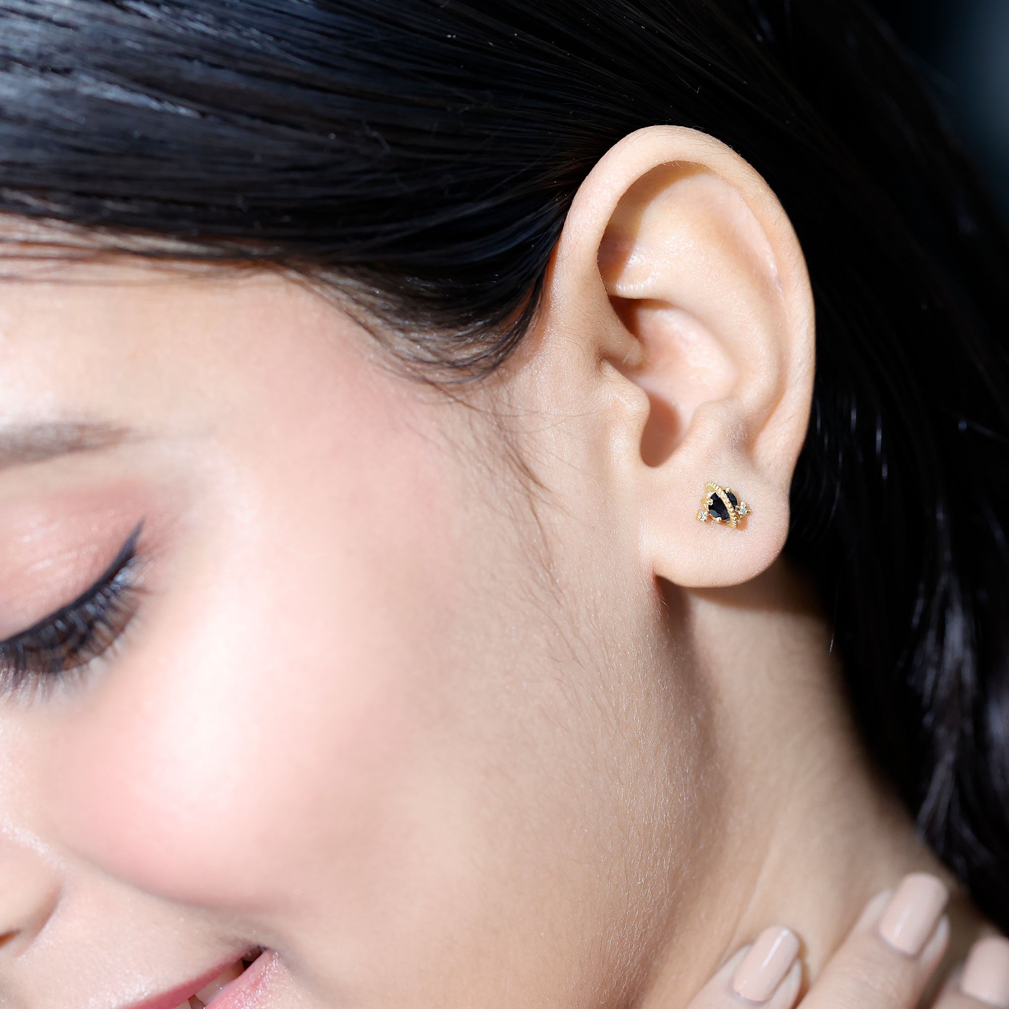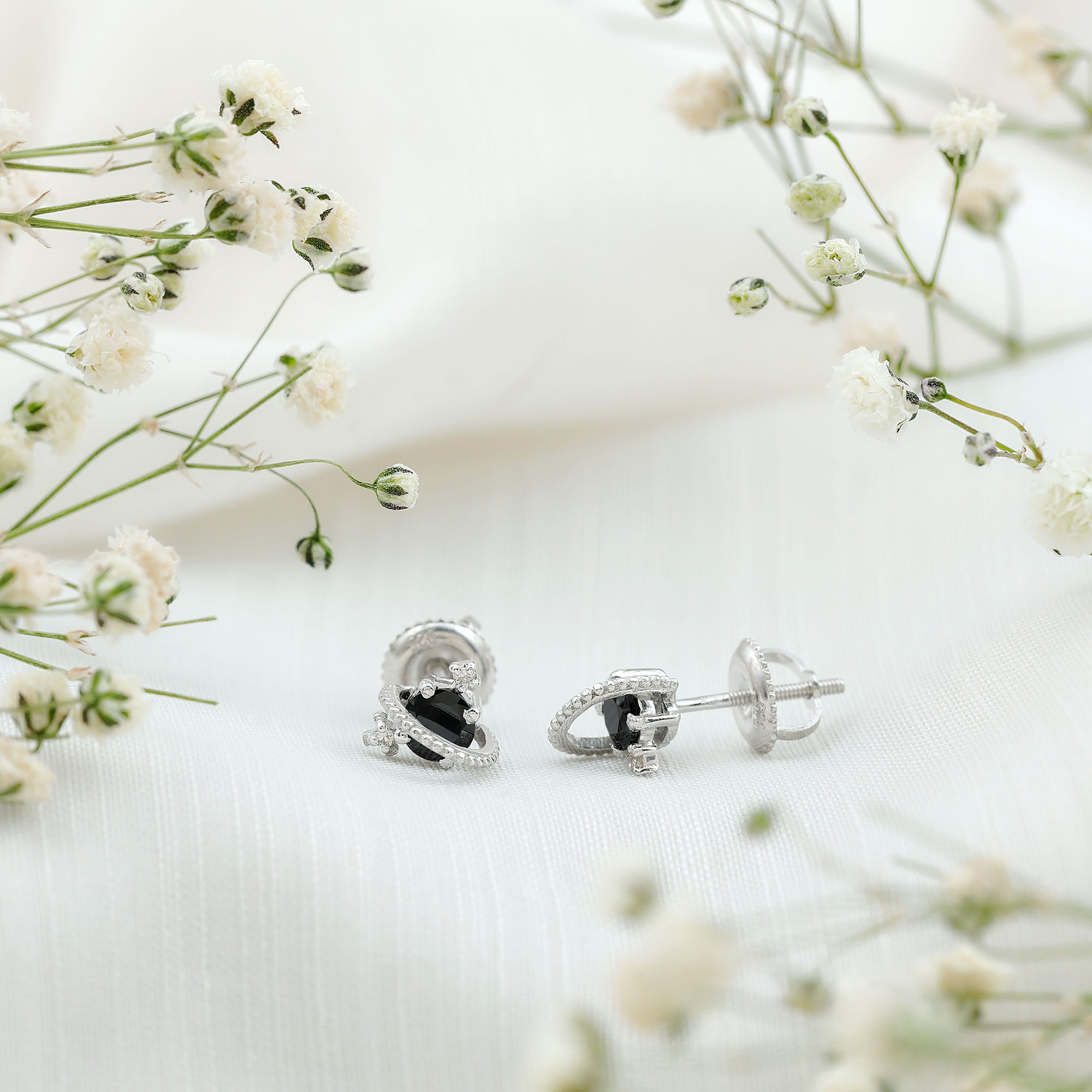 0.50 CT Created Black Diamond and Diamond Celestial Stud Earrings