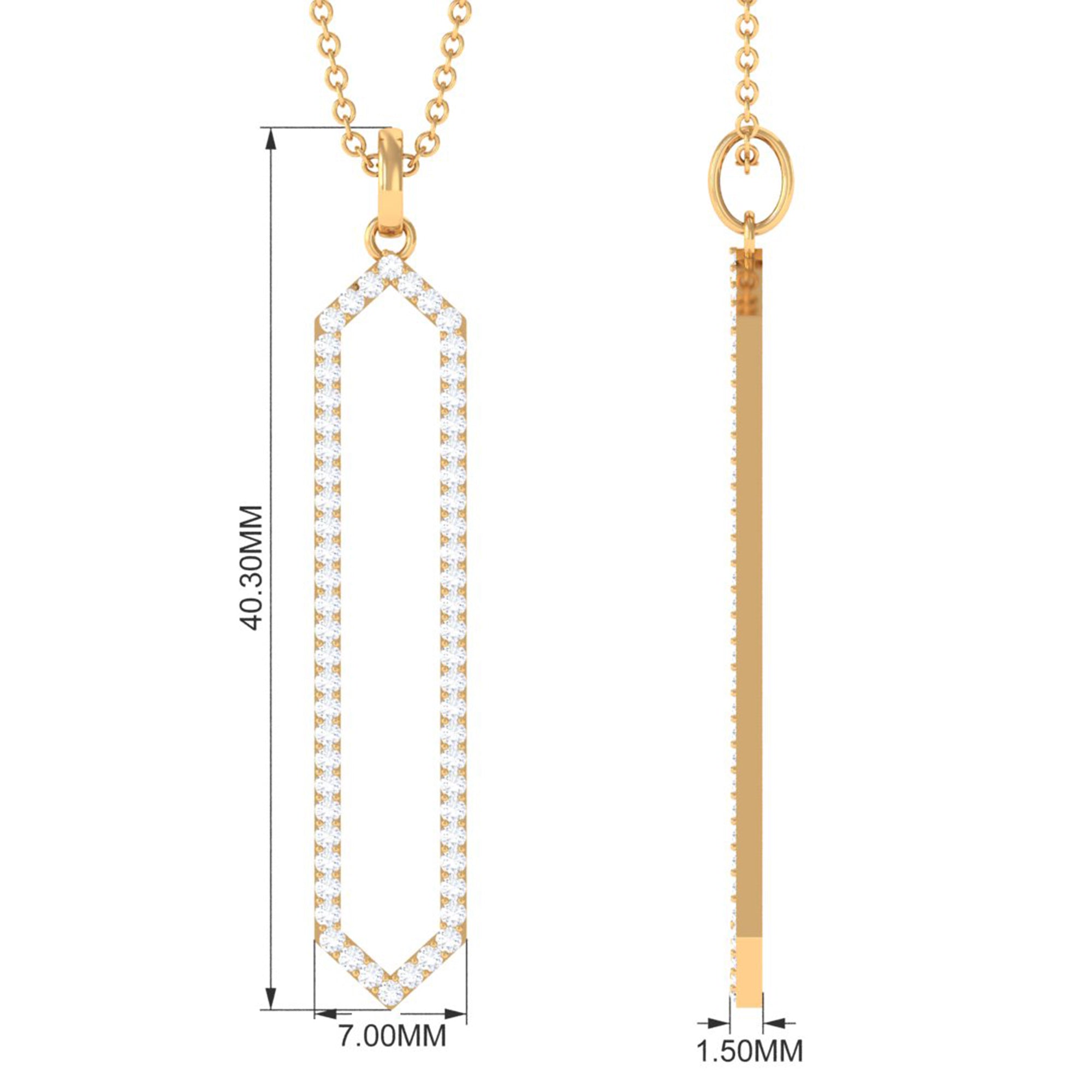 Embodying elegance, this Diamond Pendant Necklace offers a unique and modern allure. The captivating interplay of geometric lines and contemporary shapes sparks with a sophisticated aesthetics. Appreciating elegance and avant-garde style, this Geometric Necklace is a meticulously crafted work of art designed for the modern individual. It is adorned with Round brilliant cut Diamond on a geometric pattern. These precise lines and contemporary shape have a harmonious design that truly stands out. As a statement piece that speaks volumes about your refined taste and appreciation, this Hexagon Necklace is sure to become a cherished addition to your collection. Catering to a delicate and minimalist style, this Pendant features with modern, geometric design that sparkles with HI-SI Quality Diamond. The geometric lines of the modern world were created for this gorgeous and modern twilight hexagon-shaped diamond pendant, while drawing attention to the neck area.
