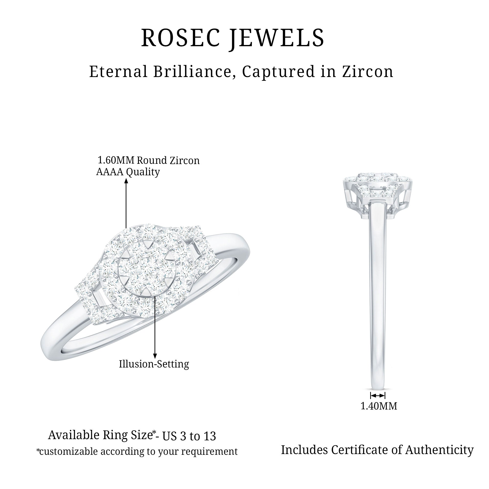 A great Zircon Ring for your lady with a classic and trendy sense of style. This Zircon Engagement Ring shows stunning Round Shape cubic zirconia gemstone set in illusion setting with a fiery and unique sparkle. The Shank and Prongs protect the Simulated Diamond for artfully secure the Gemstones.