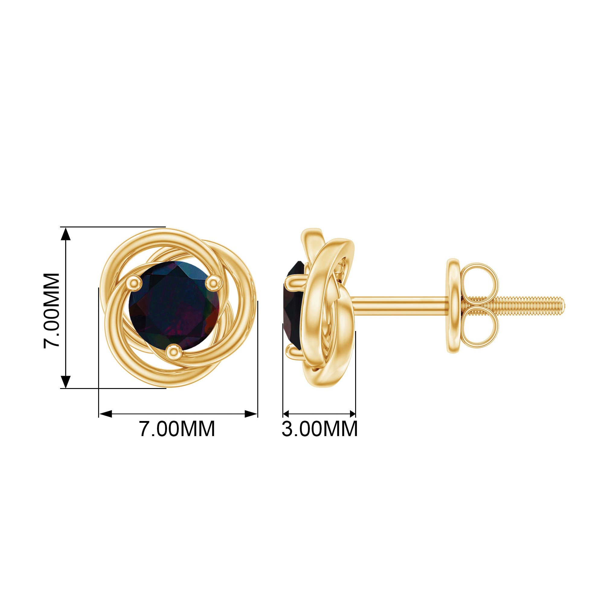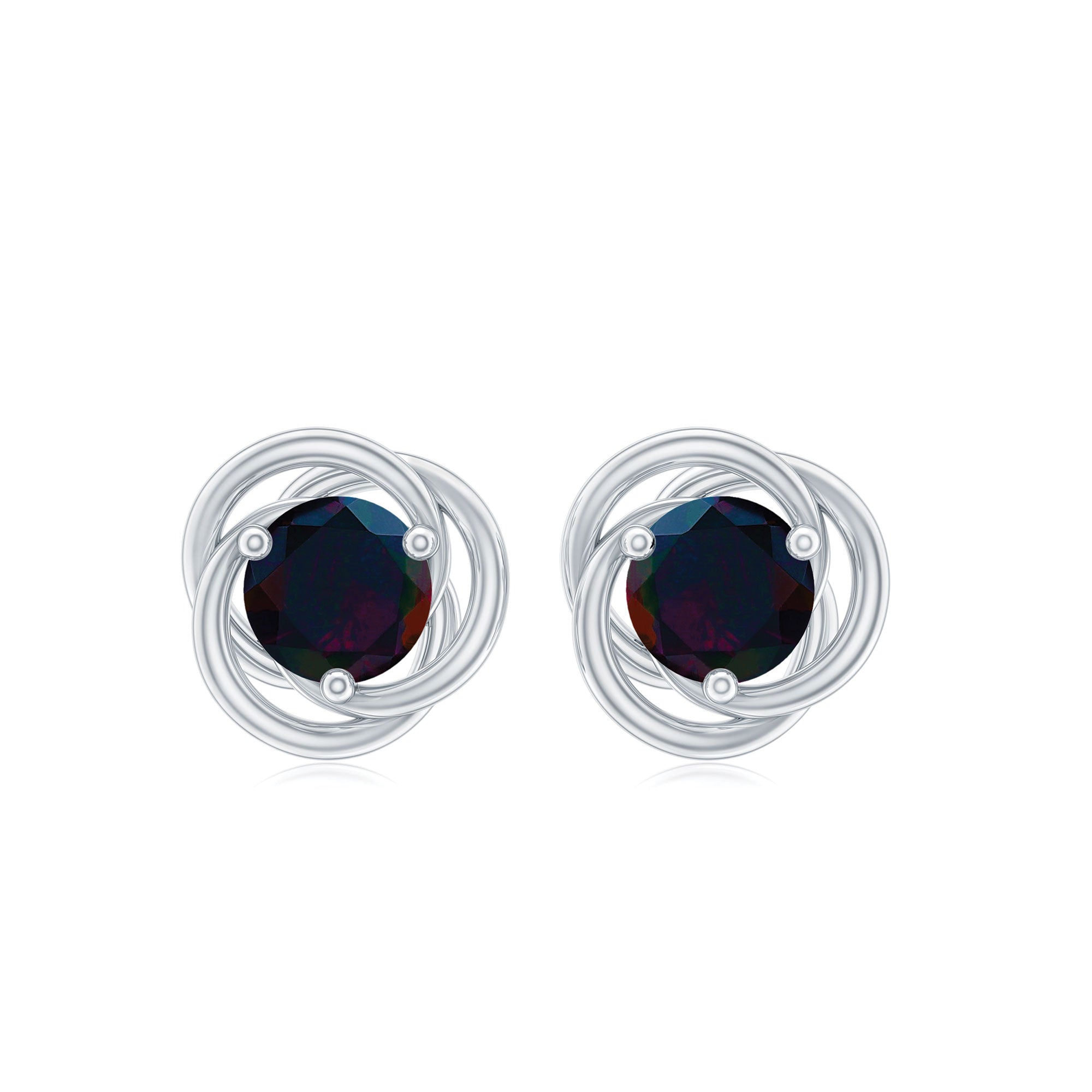 These Solitaire Swirl Stud Earrings feature Round Shape Black Opal in Prong Setting in a unique and stylish swirl design that is sure to turn heads. The screw back ensures that they stay securely in place, making them comfortable and easy to wear. These earrings are perfect for adding a touch of individuality and charm to any outfit, making them a great choice for any occasion.