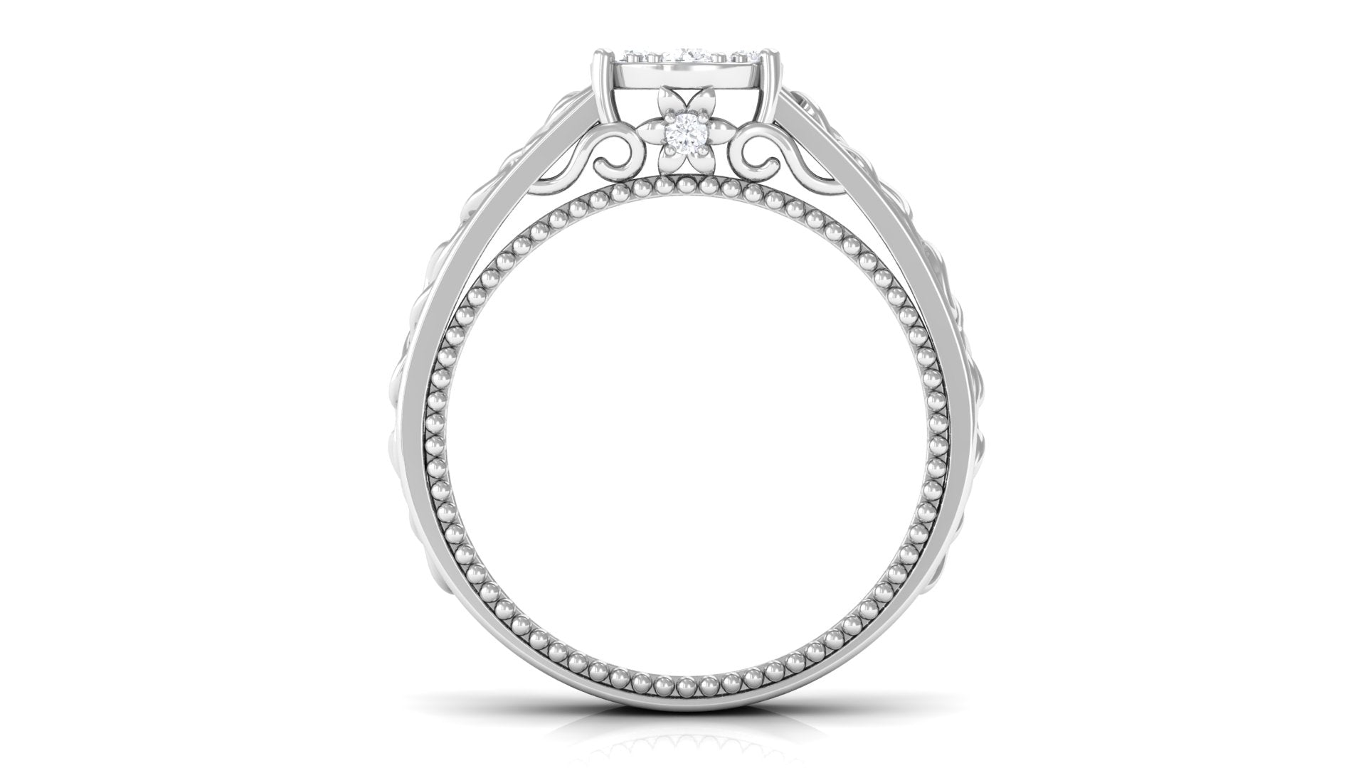This Diamond Cluster Ring is a stunning piece of jewelry that is sure to make a bold style statement. Made with yellow, white, and rose gold, the ring features a round cluster of diamonds at its center and an interlocking filigree design with beads that adds to its beauty. The combination of gold and diamonds make it an ideal gift for an anniversary or any special occasion. The ring is sure to add some shine to any outfit.