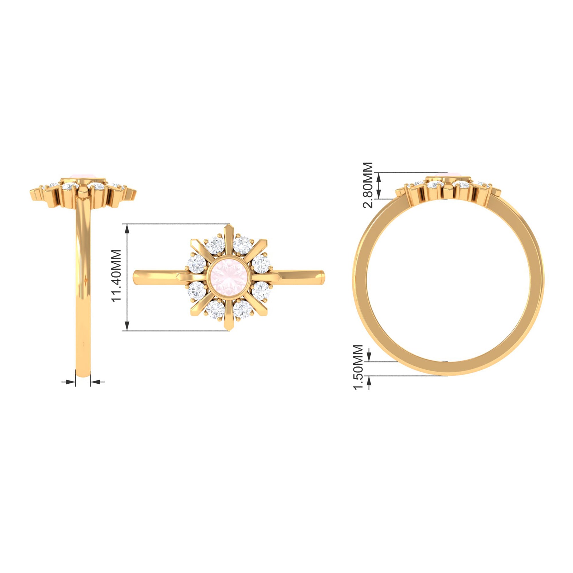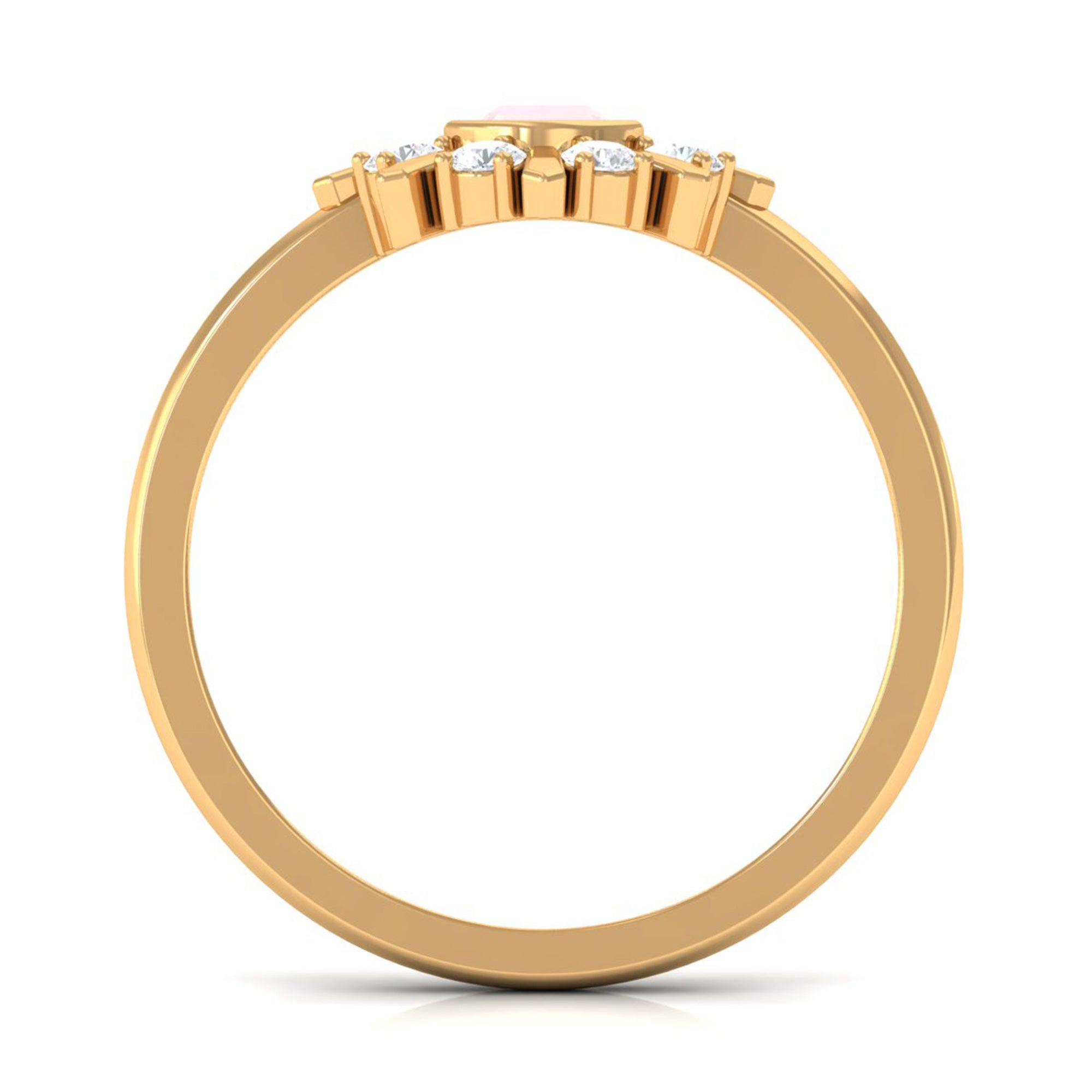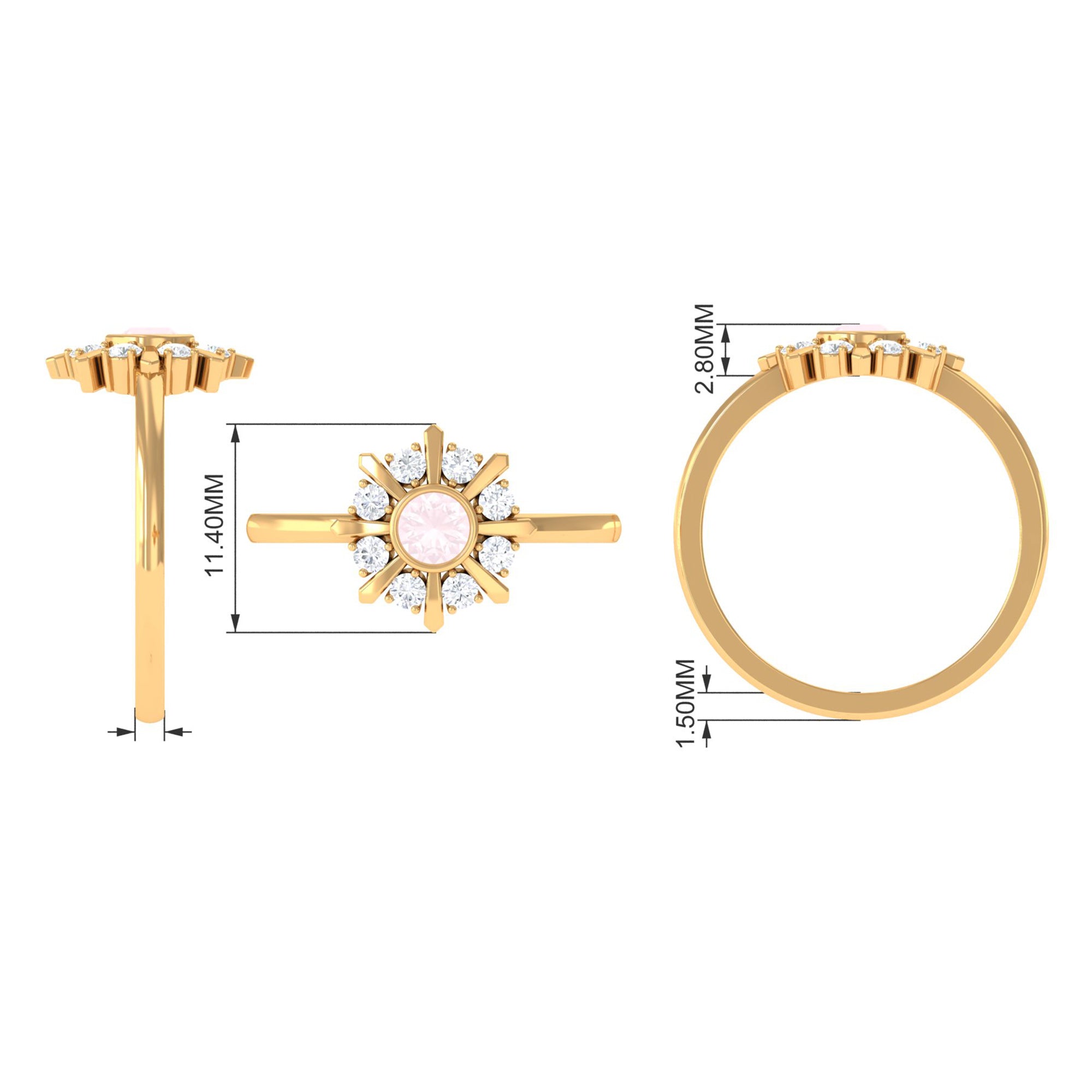 Make a luxurious statement by wearing this elegant Statement Ring adorned with Round Shape Rose Quartz in Bezel Setting with Diamond Stones to add more elegance to the ring. This Rose Quartz and Diamond Ring is crafted with Gold for a luxurious look. Get this adorable Rose Quartz Ring for someone special, something she would adore her whole life.