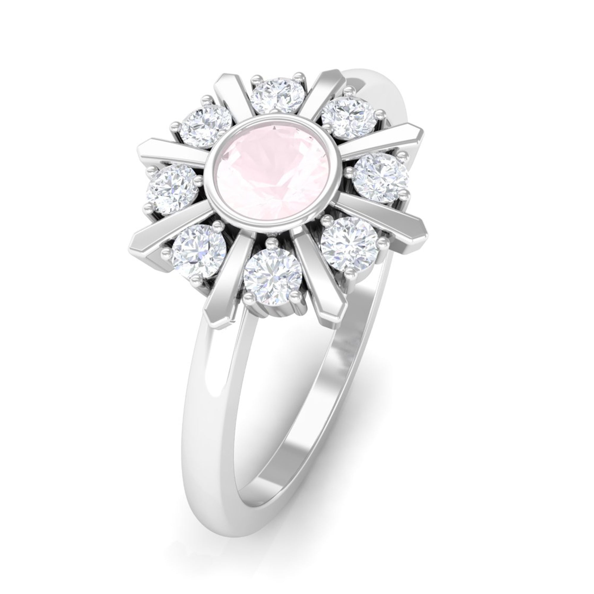 0.50 CT Real Rose Quartz Statement Ring with Diamond Stones