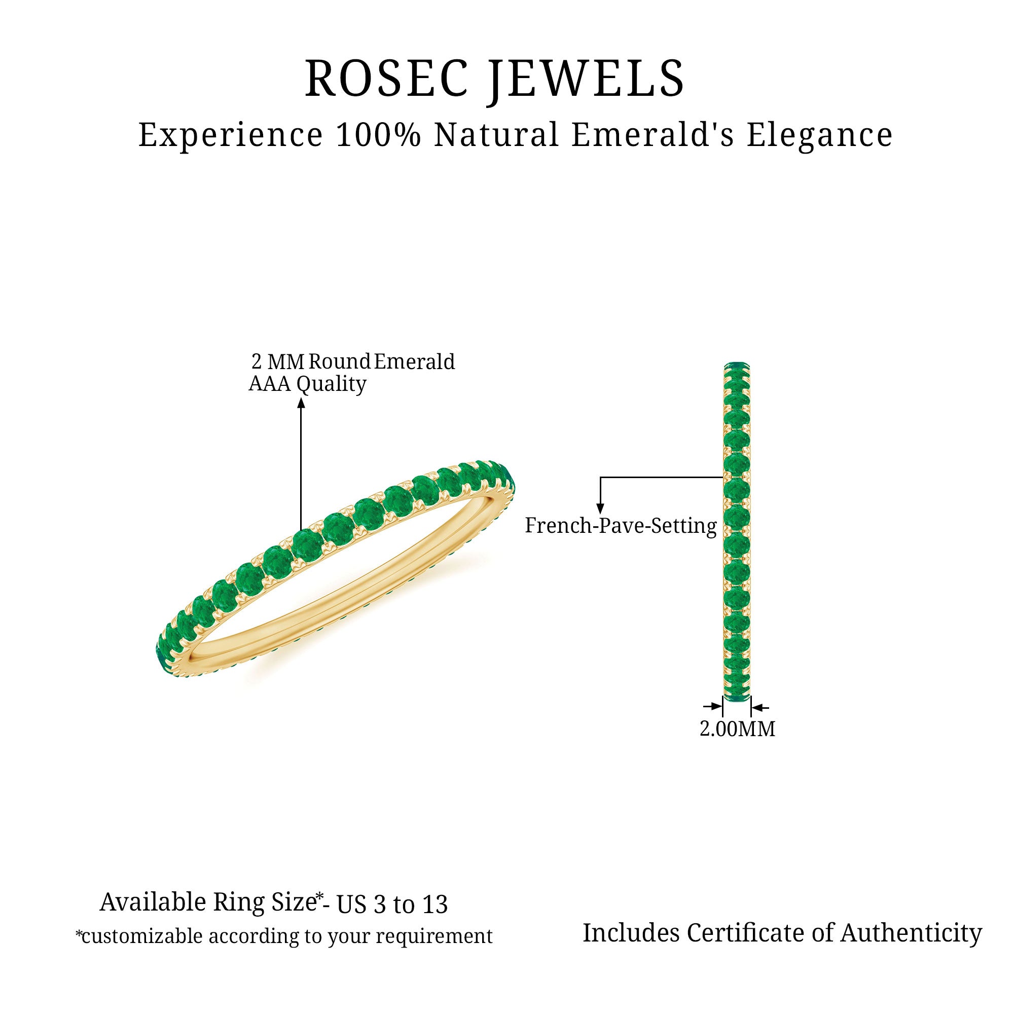 The Full Eternity Stackable Ring is embellished with Round Shape Emerald Gemstone in the French Pave Setting. So grab it soon to gift it to your Valentine that she will adore a lot and appreciate it on getting a gift from you.