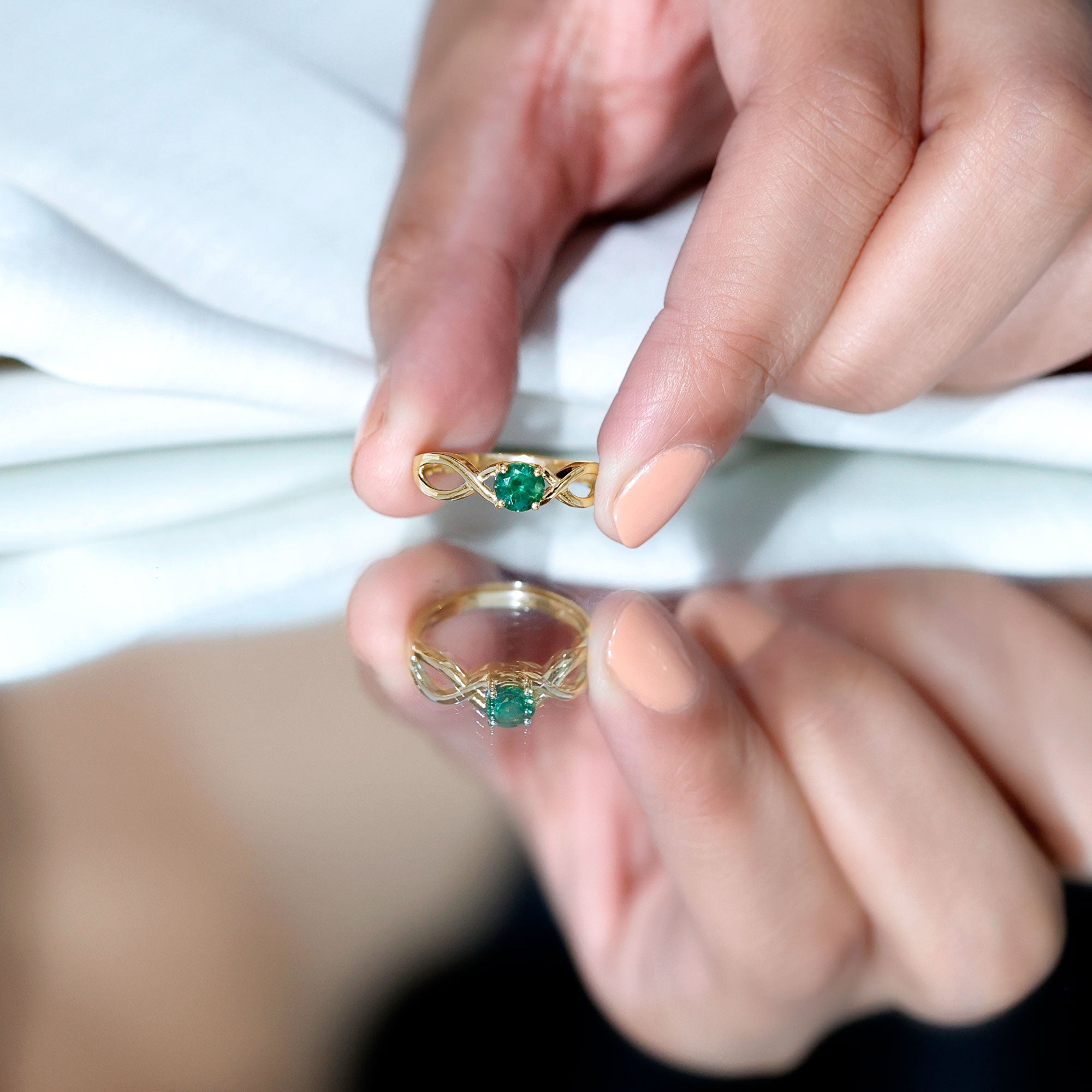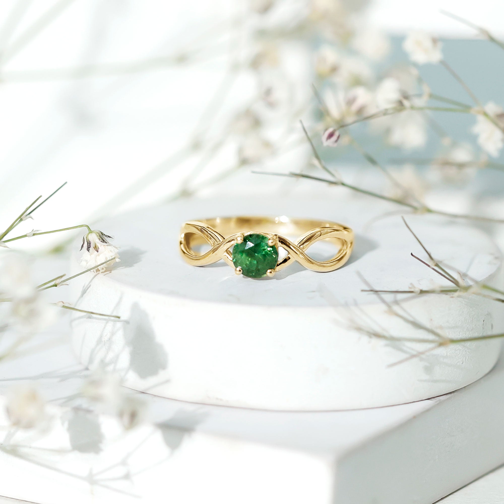 Add some elegance and class to your outfit with this Crossover Solitaire Ring decorated with Round Cut Green Sapphire in a Prong Setting. Crafted with Gold, this Green Sapphire Solitaire Ring will give you a luxurious look. This elegant Green Gemstone Ring is an elevated choice for your beloved.