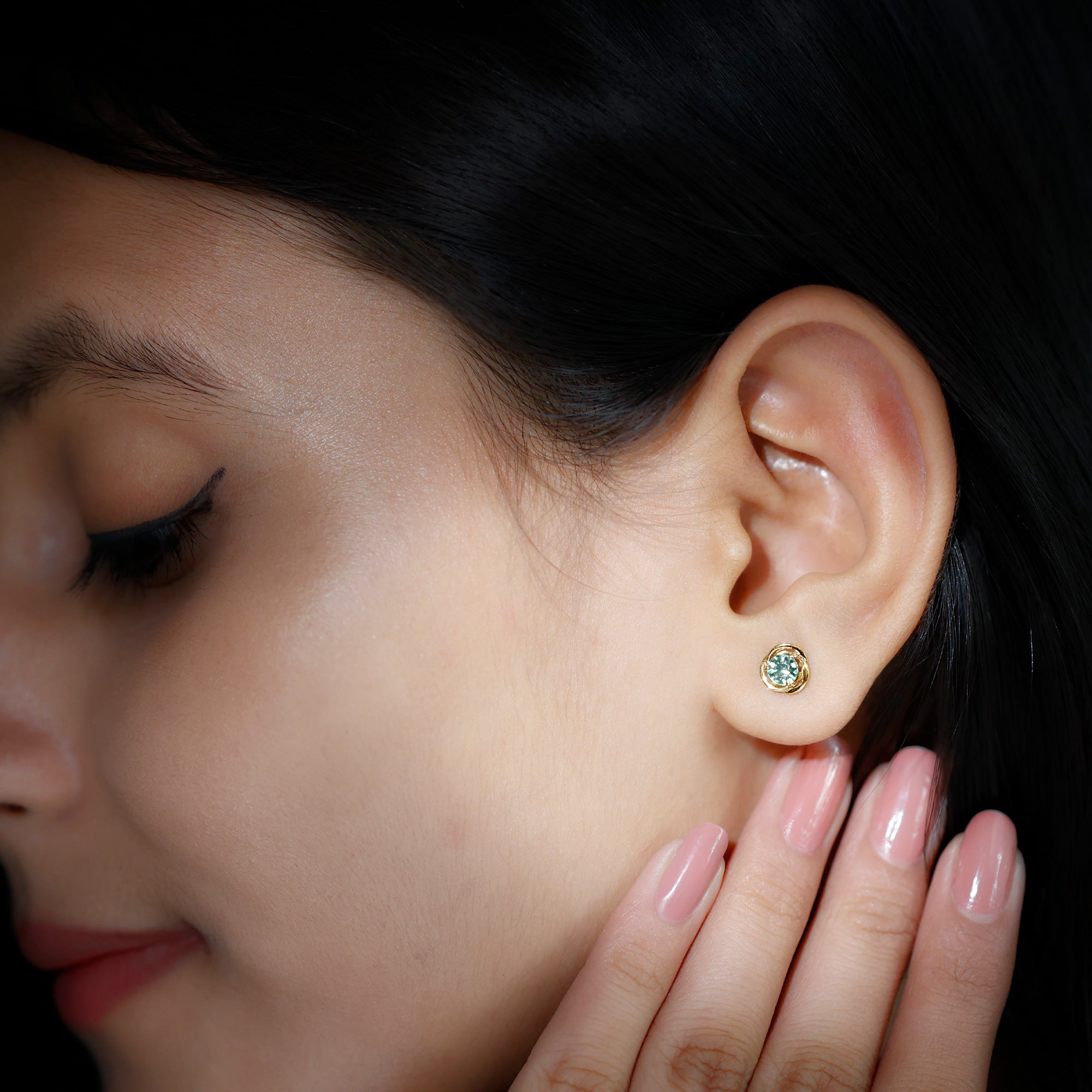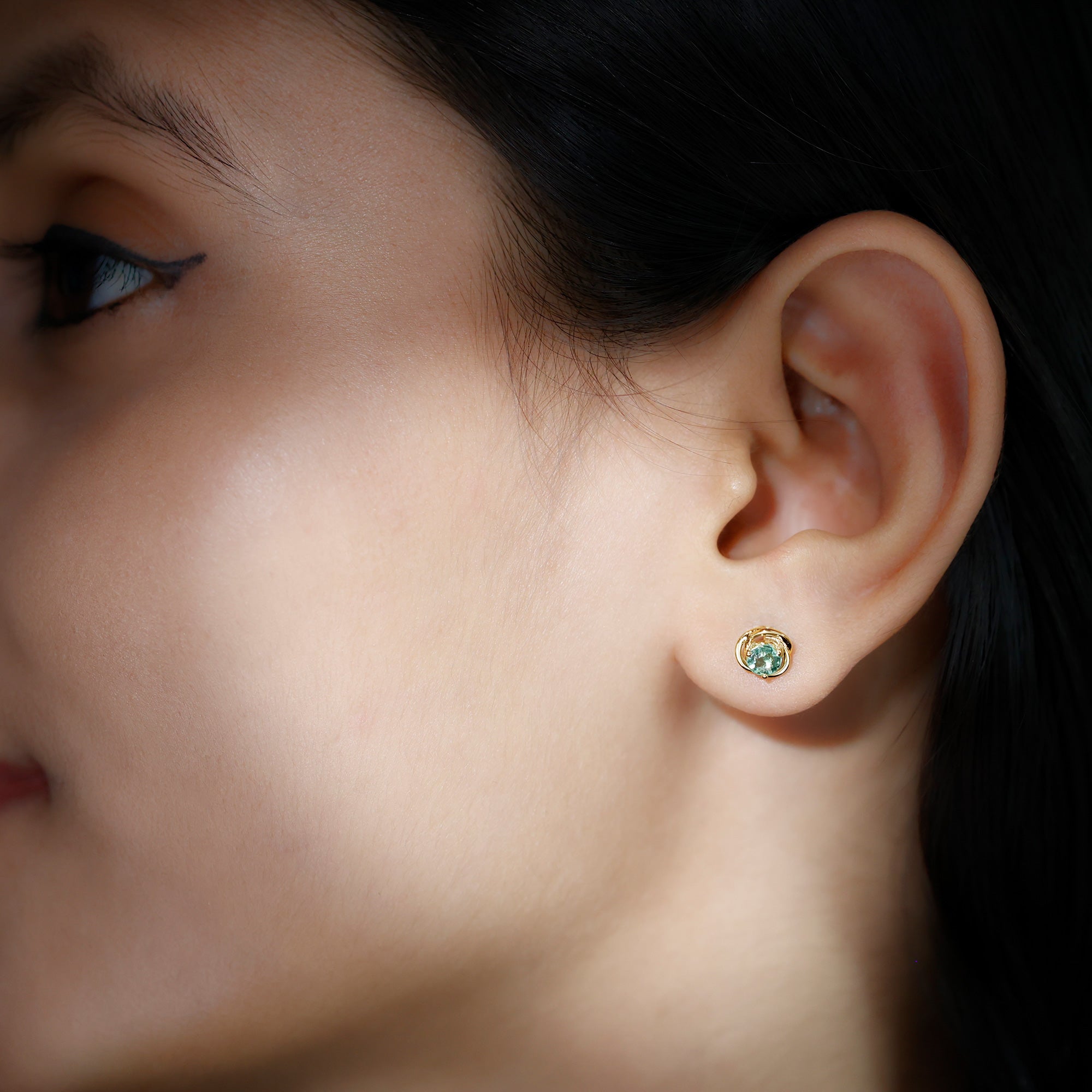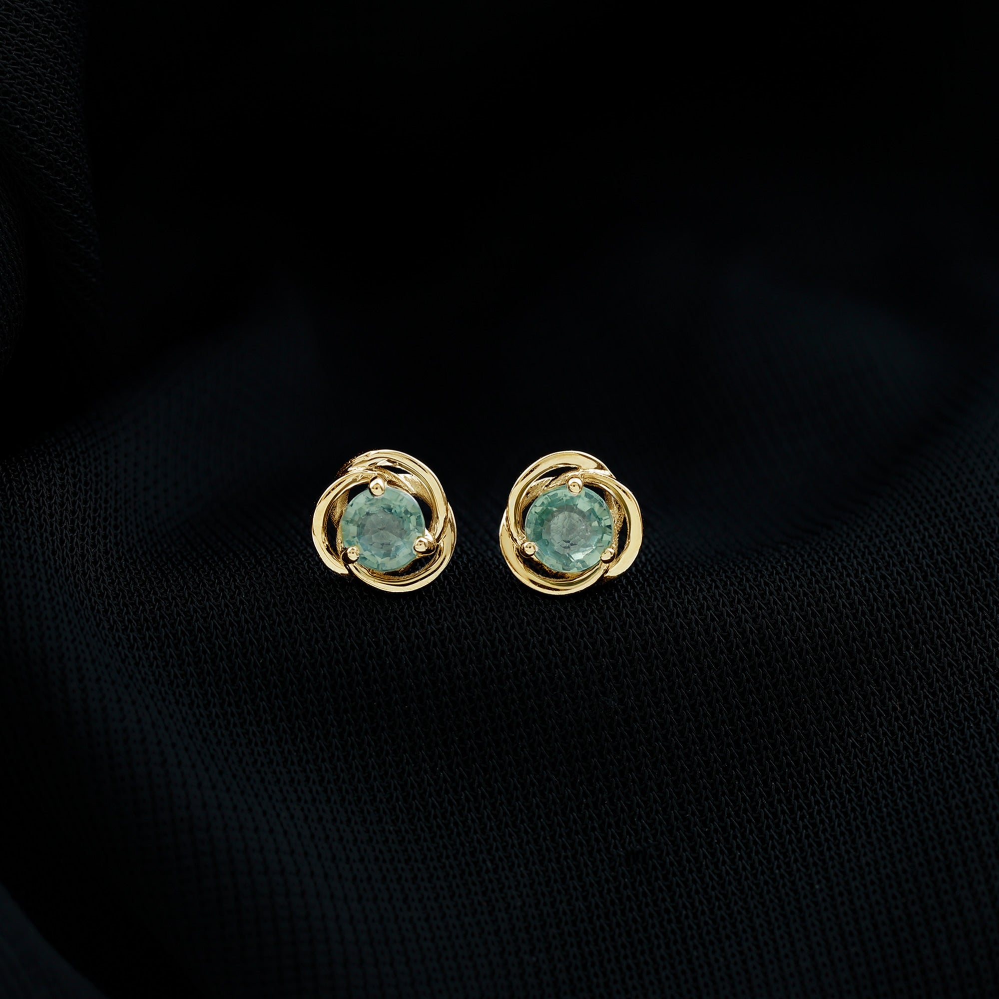 These Swirl Stud Earrings would be the great gift to give to your love on this valentines day. These stunning Stud Earrings are adorned with Round Shape Green Sapphire Gemstone set as a Solitaire in Prong Setting and lovingly crafted in Solid Gold Metal