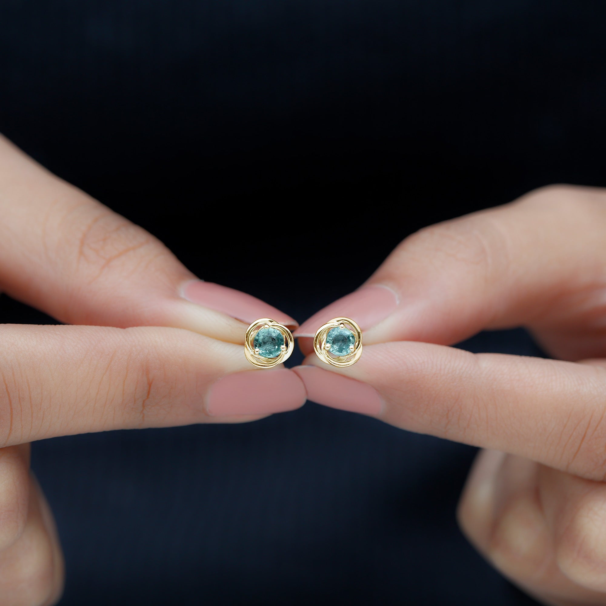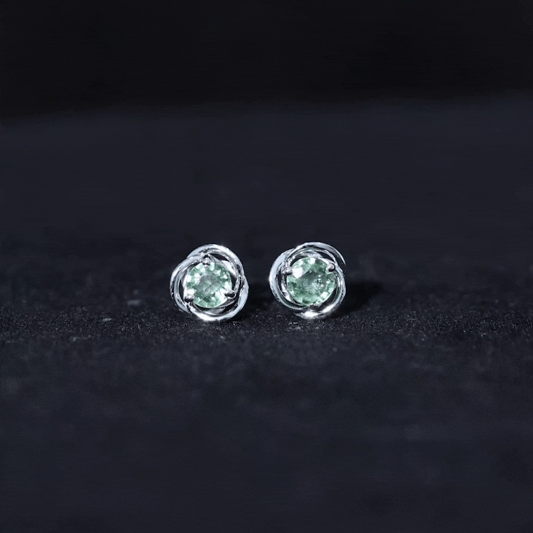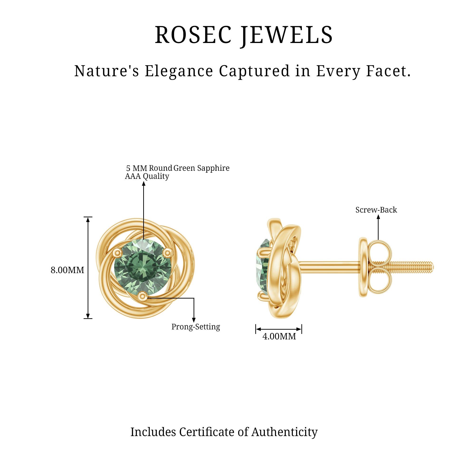 These Swirl Stud Earrings would be the great gift to give to your love on this valentines day. These stunning Stud Earrings are adorned with Round Shape Green Sapphire Gemstone set as a Solitaire in Prong Setting and lovingly crafted in Solid Gold Metal