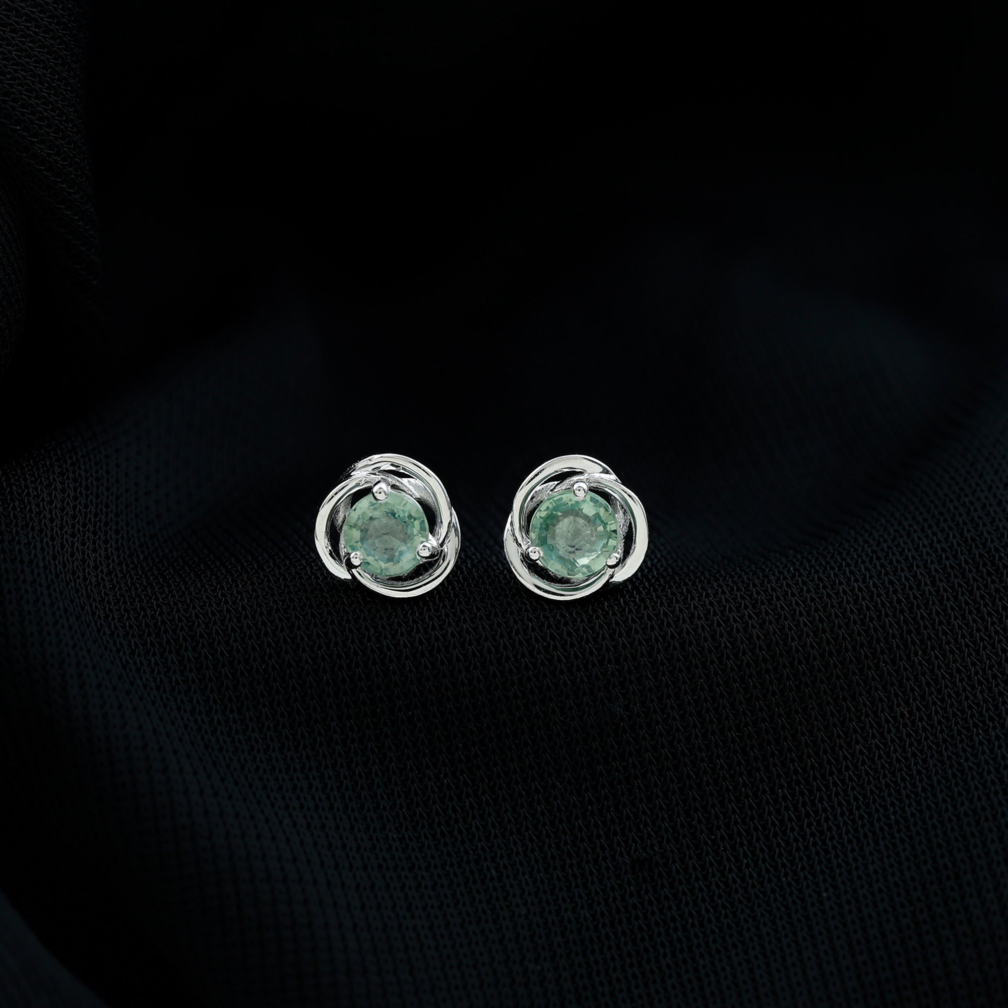 0.50 CT Round Cut Green Sapphire Swirl Solitaire Stud Earrings