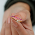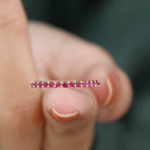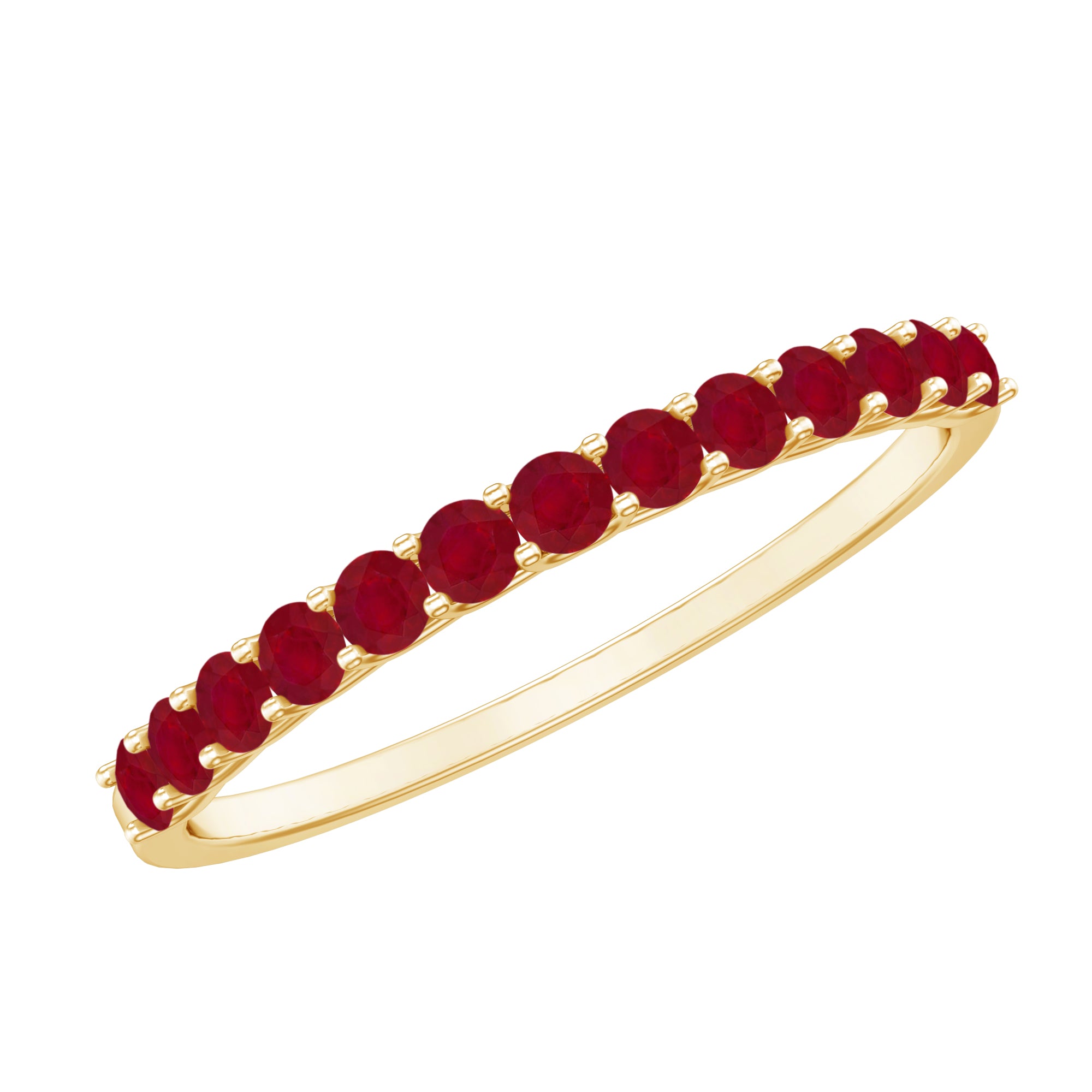 This sparkling Enhancer Stackable Ring is adorned with Round Cut Ruby in Shared Prong Setting to make for a trendy choice for styling. The Stackable Ring will be an ideal piece to enhance your Engagement Ring look and get lot of compliments.