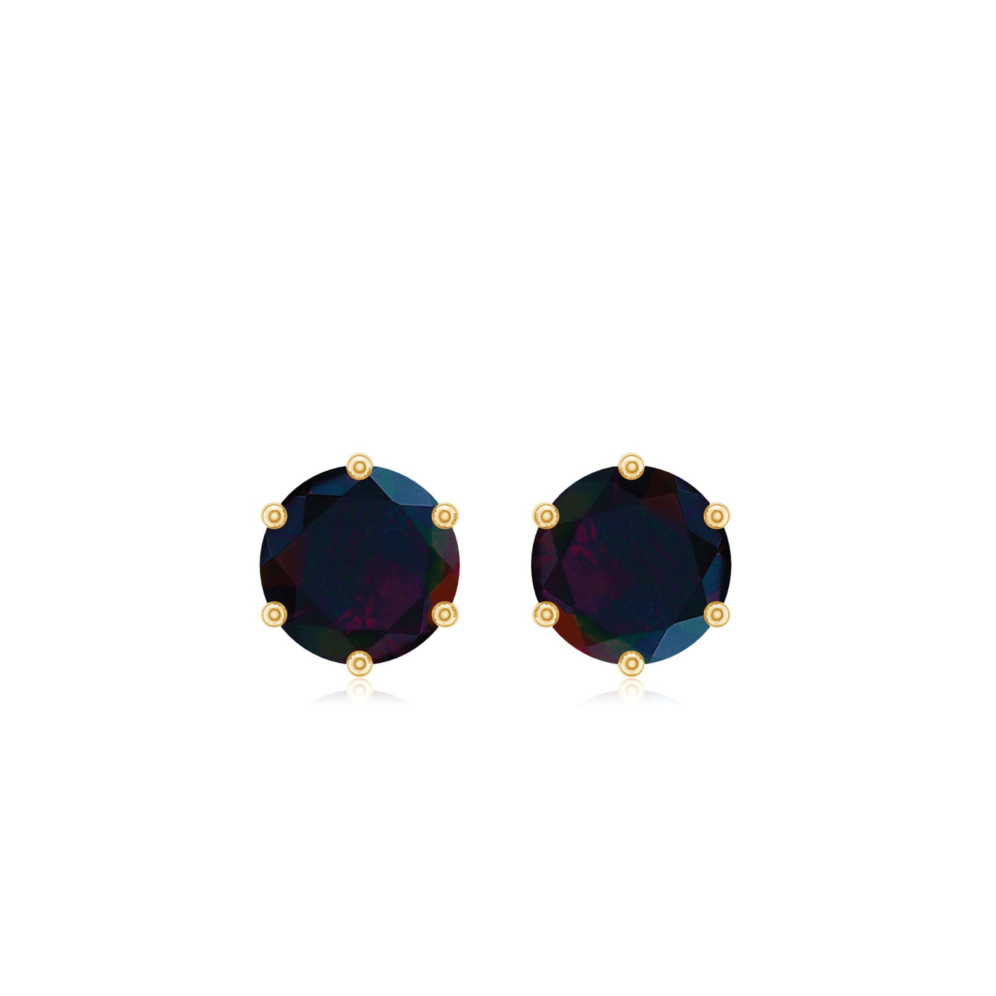 Add a touch of sophistication to your style with these Solitaire Stud Earrings embellished with Round Shape Black Opal in 6 Prong Setting. The Screw Back Closure ensures that the earrings stay securely in place, making them comfortable and easy to wear. Crafted from gold metal, these stunning earrings are the perfect accessory to elevate any outfit.