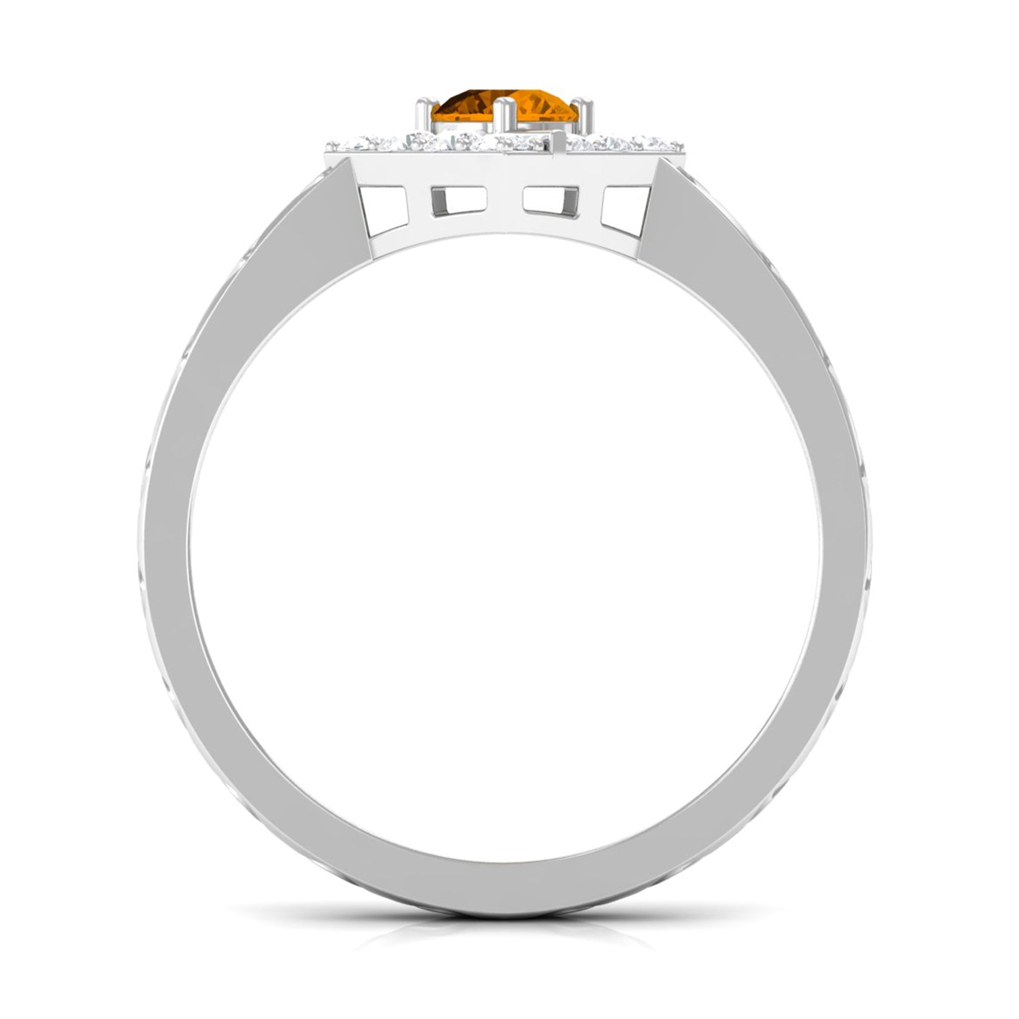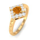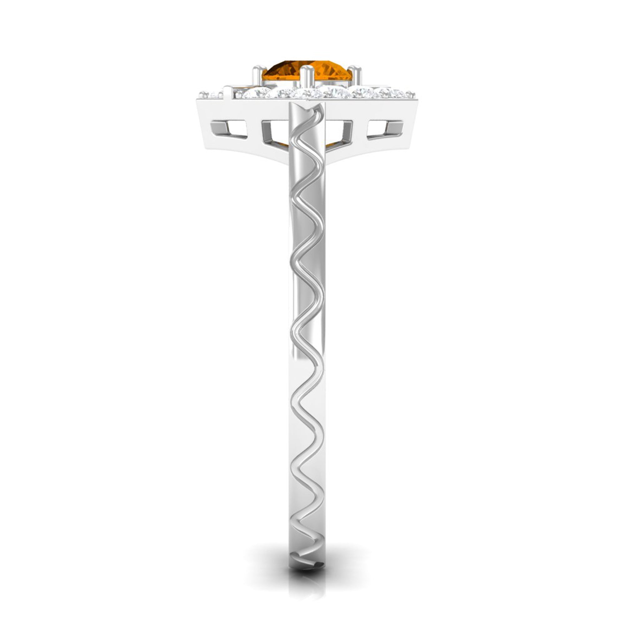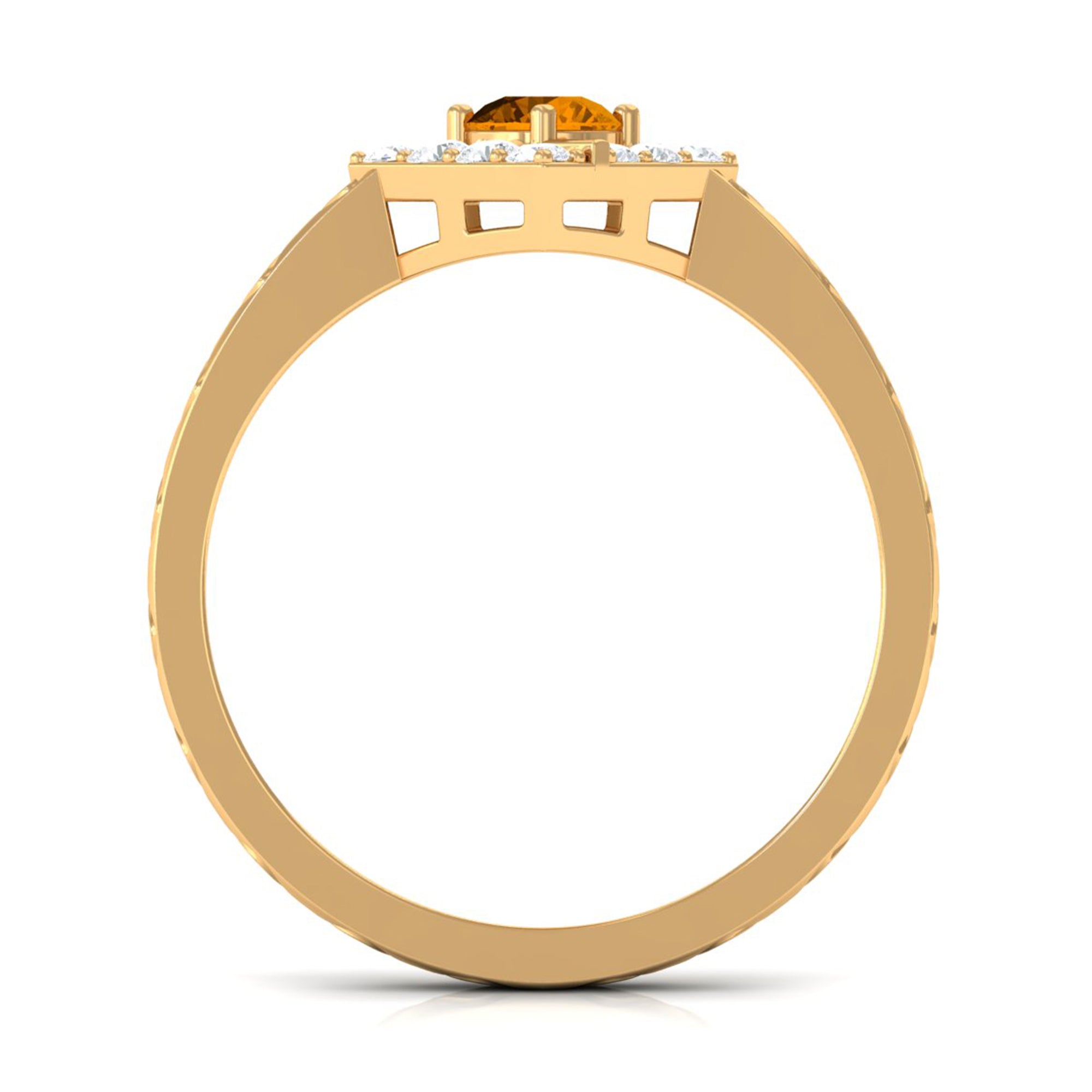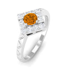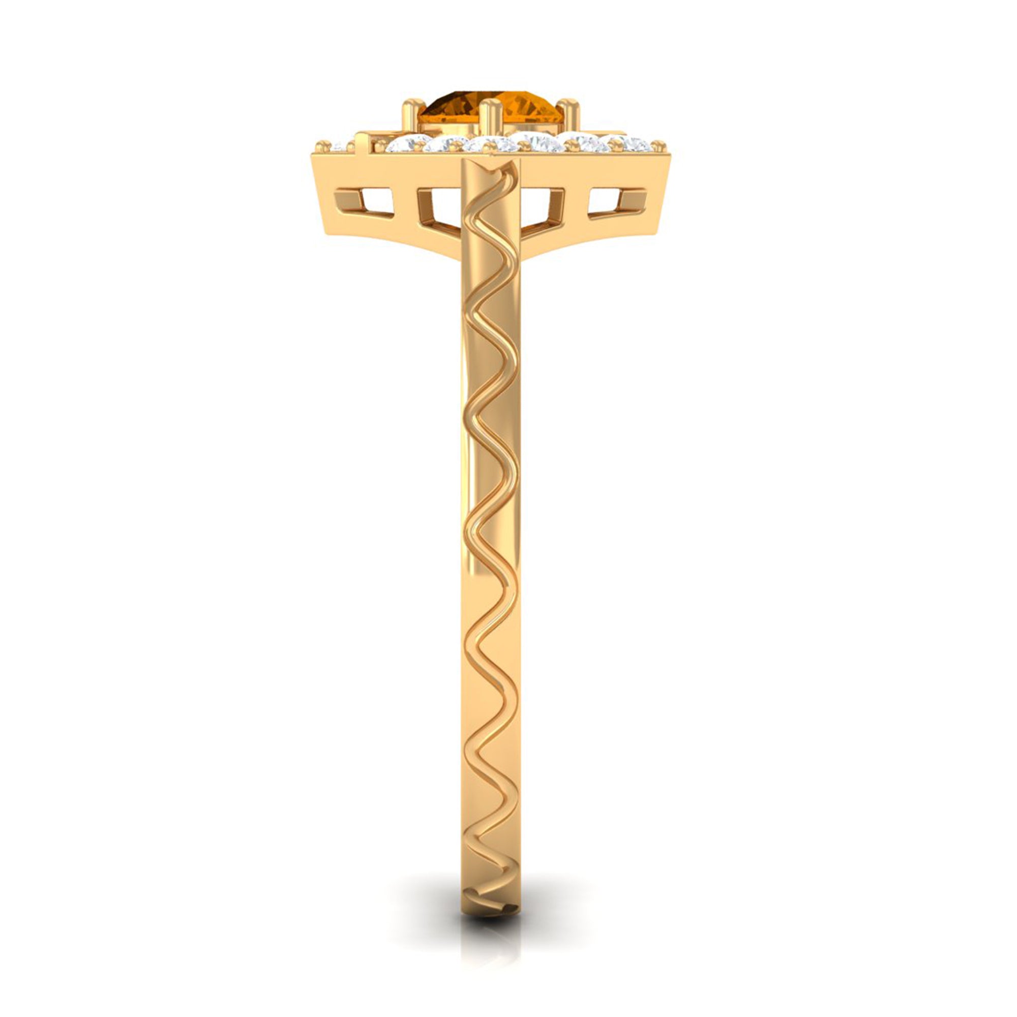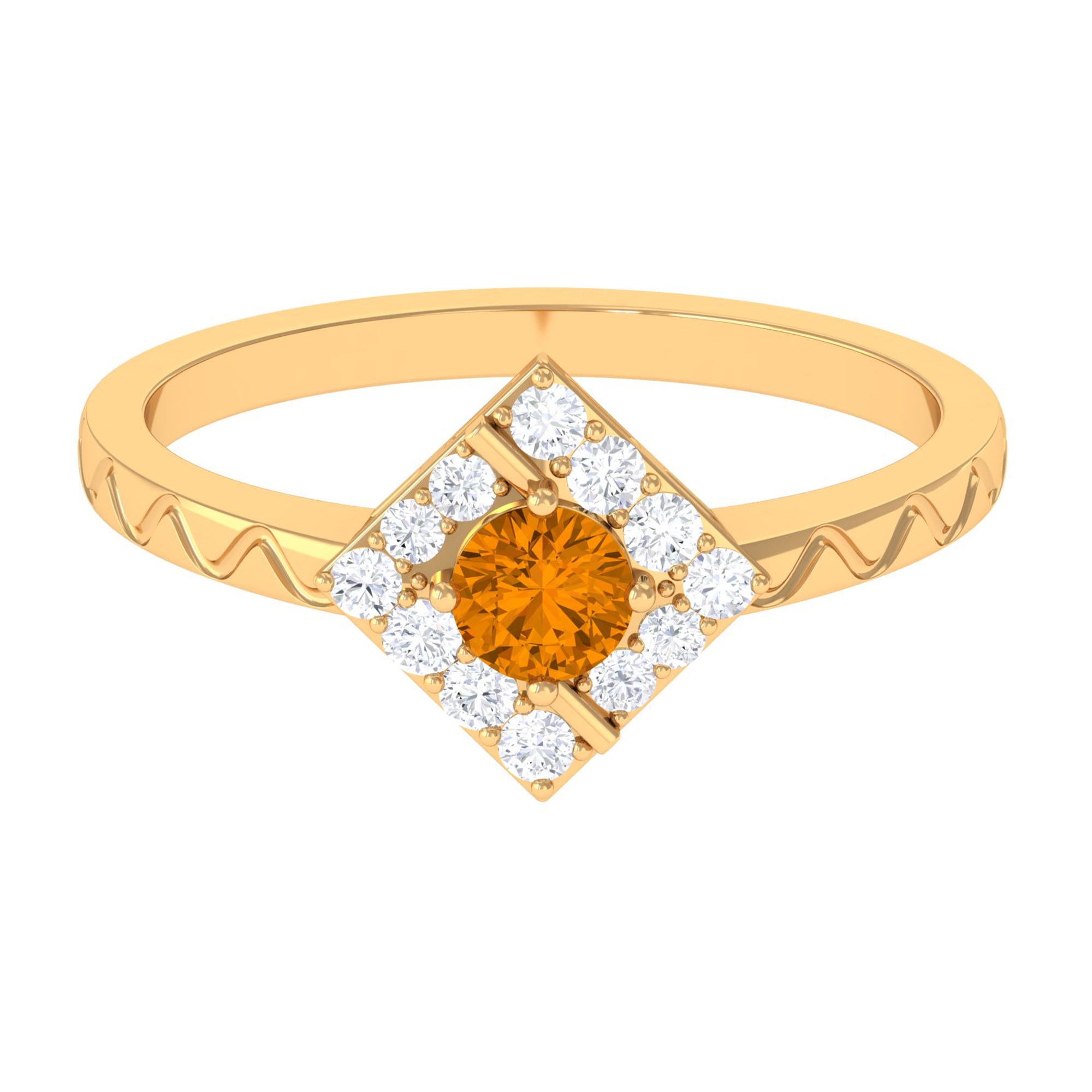 0.50 CT Round Shape Citrine Minimal Textured Ring with Diamond