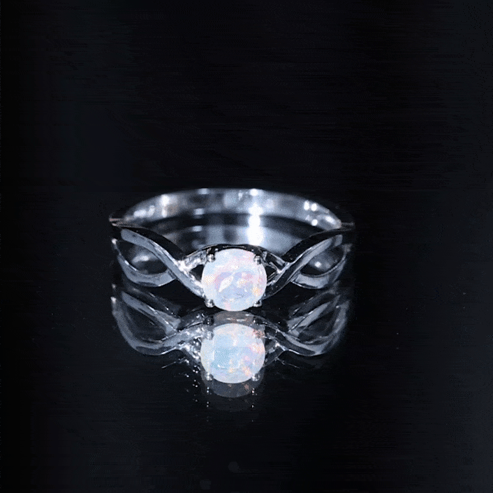Natural Ethiopian Rainbow Opal Promise Ring with Crossover Shank