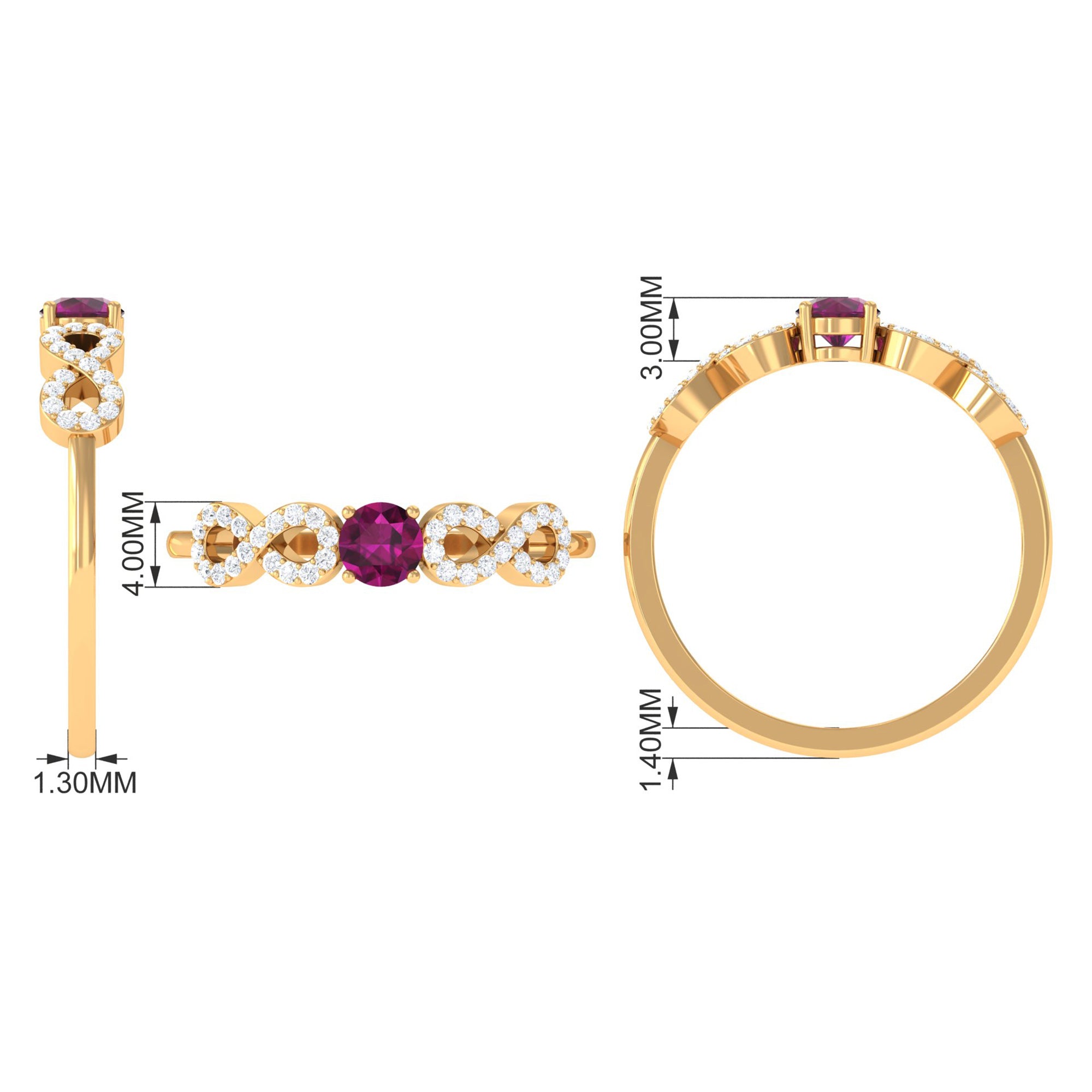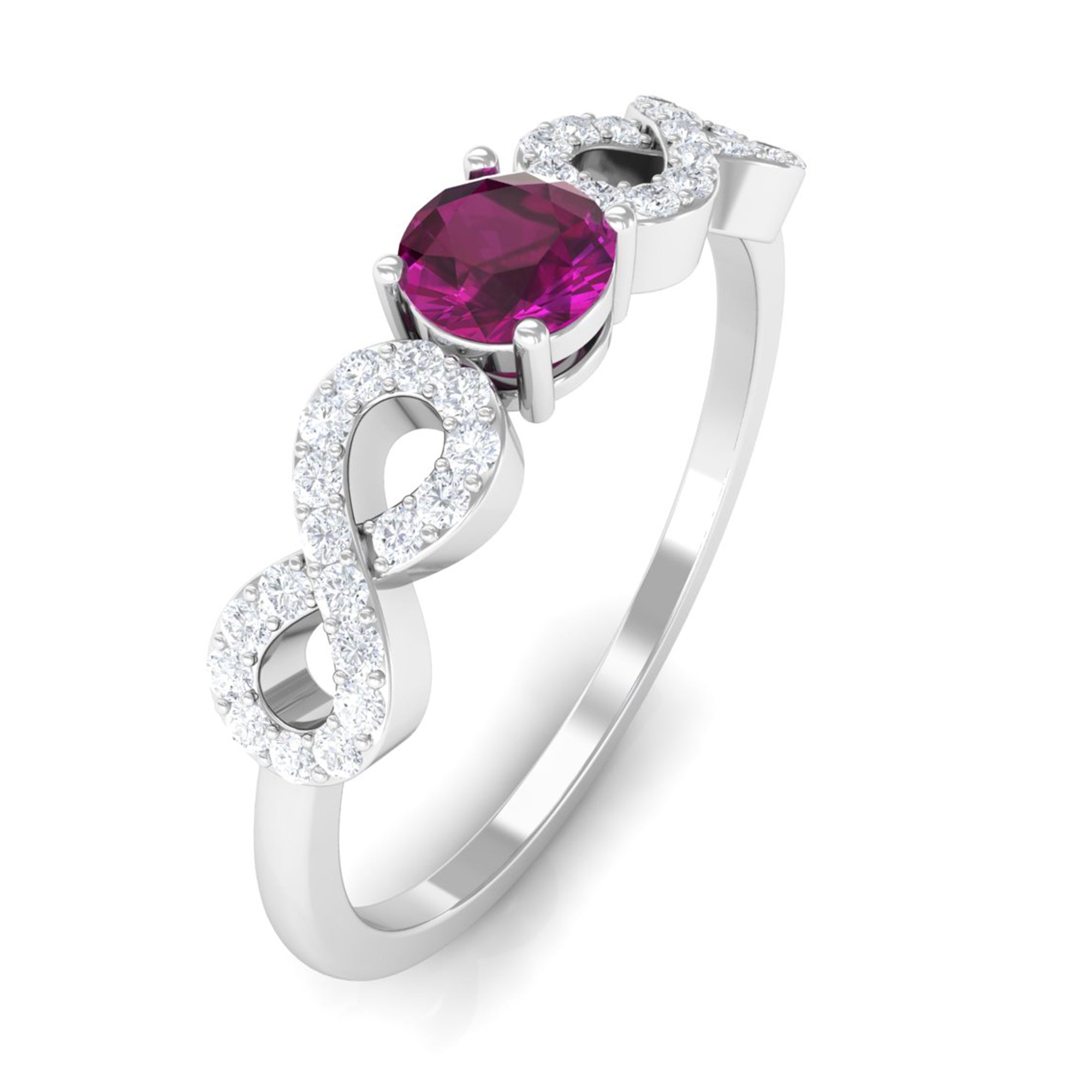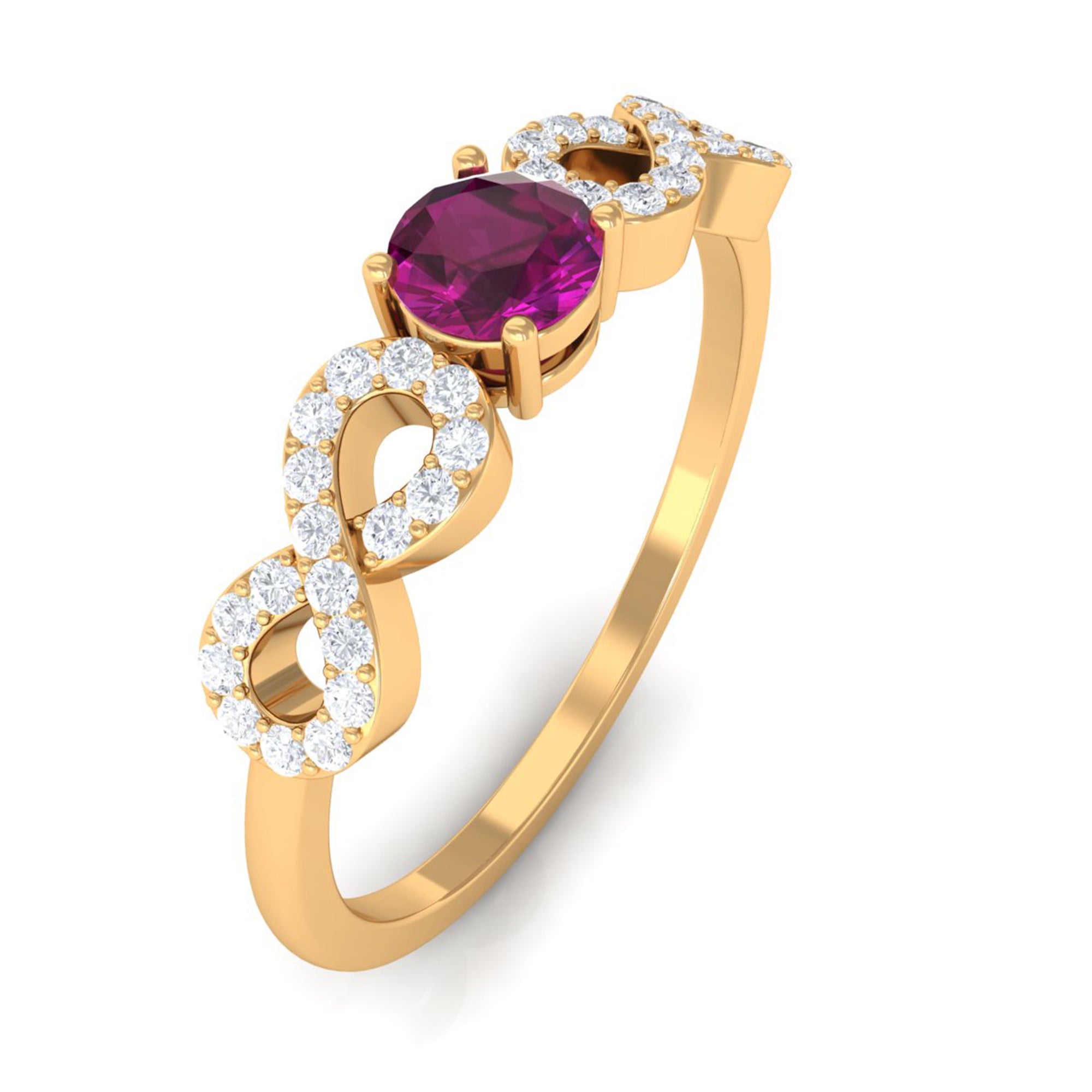 0.50 CT Solitaire Rhodolite Infinity Ring with Diamond