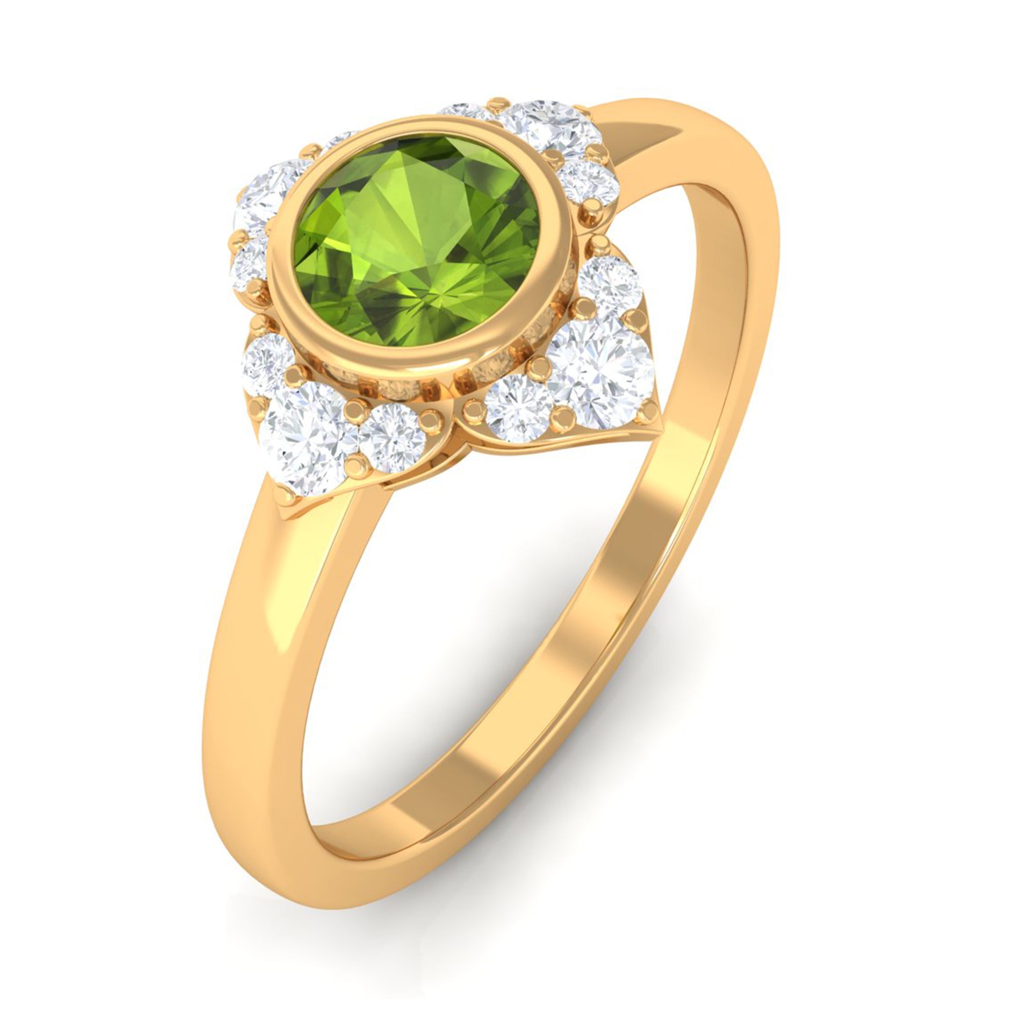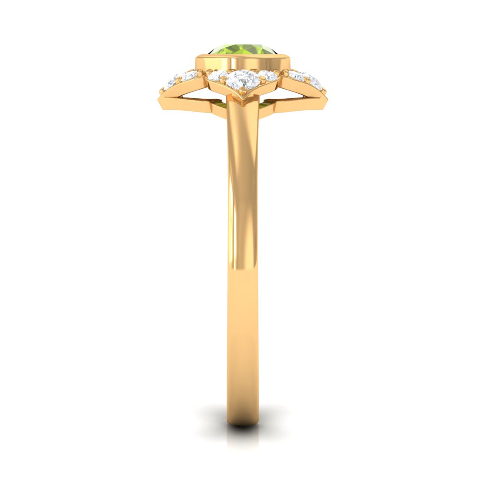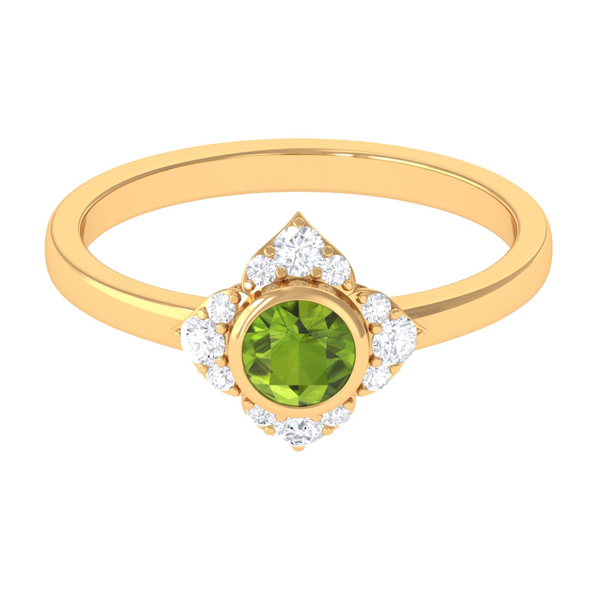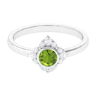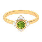 Surprise her with this stunning Vintage Engagement Ring to symbolize your eternal love. Embellished with Round Shape Peridot in Bezel Setting with Diamond Accent, this Flower Engagement Ring is crafted with Gold for a luxurious appearance. This Peridot and Diamond Ring will add more shine to her look and fill her day with compliments.