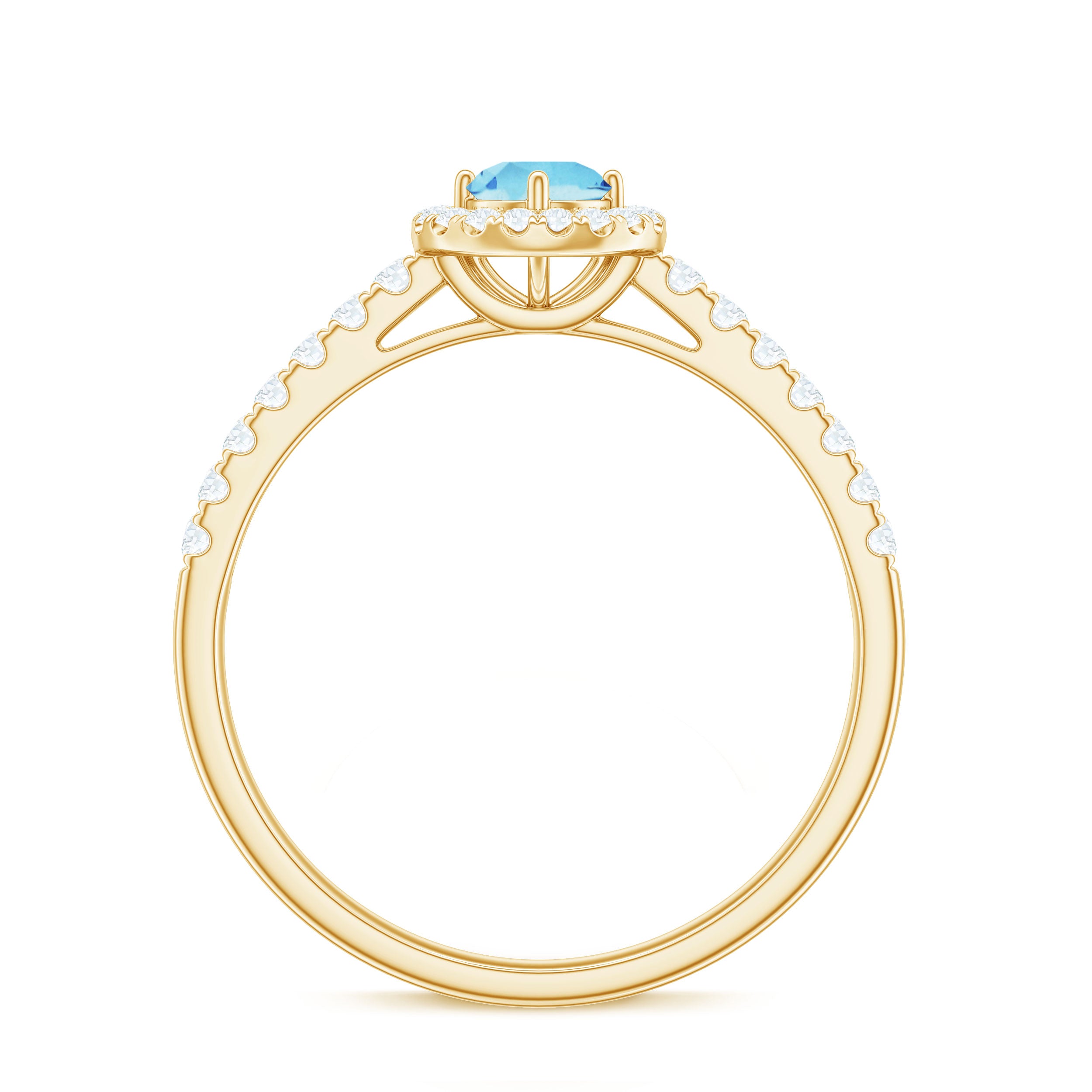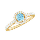 A perfect choice to celebrate understated elegance and enduring love, this Aquamarine Engagement Ring blends simplicity with sophistication in the most captivating way. At its center, a 6 mm Round Shape Aquamarine glows with a soft blue hue, symbolizing clarity, loyalty and the calm strength of true love. Surrounding it, a delicate Halo of sparkling Diamond stones enhances its brilliance, while the Side Stones add subtle depth and shimmer, creating a ring that is timeless. The stunning design allows the natural beauty of Aquamarine to shine, making this Aquamarine Diamond Ring a versatile piece that complements any style, perfect for everyday wear or those unforgettable moments that mark a lifetime of commitment. Crafted with meticulous attention to detail and available in various ring sizes, this Halo Engagement Ring with Aquamarine is presented in a jewelry box, ready to become a cherished symbol of devotion. Romantic yet modern, this Aquamarine Ring is a timeless treasure meant to celebrate your unique bond.