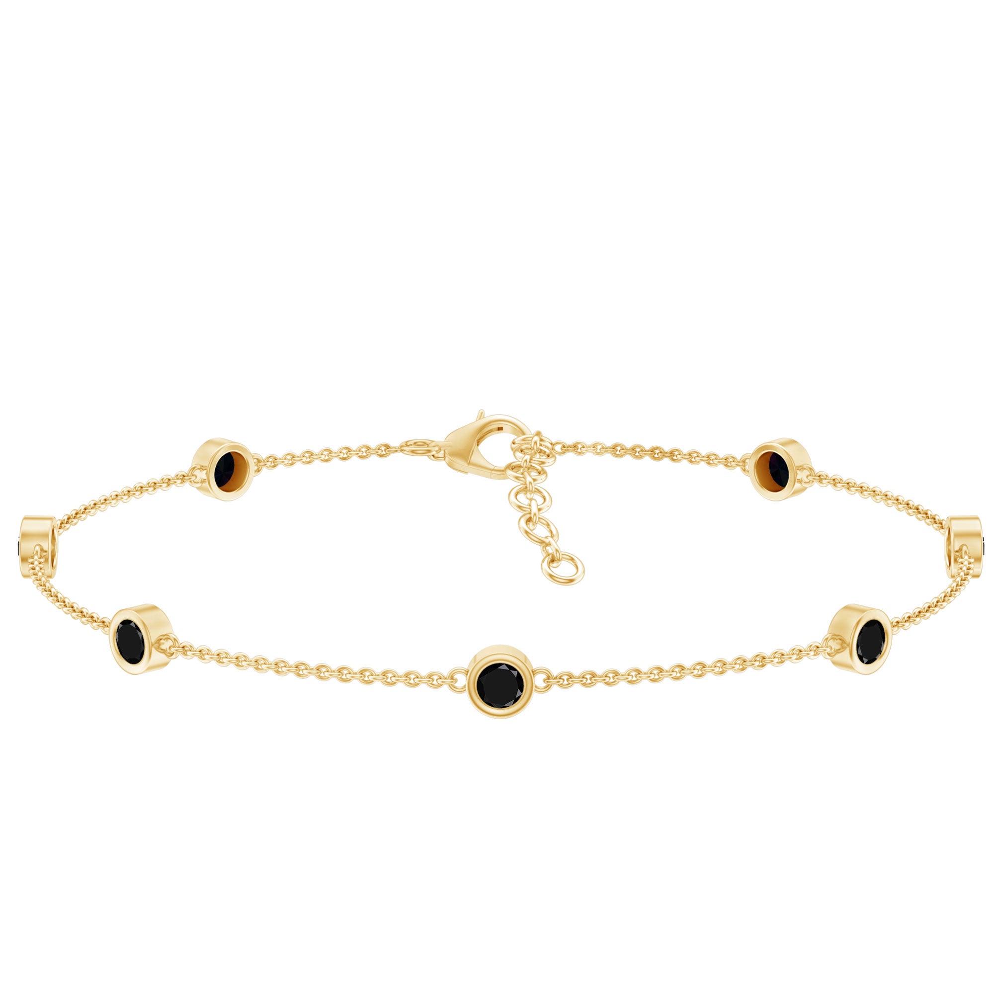 Express your love and make her happy by daying her this glossy Black Onyx Bracelet this Valentine. This Gold Chain Bracelet will magnify the beauty of your wrist and make your wrist glossy. This Eternity Bracelet is perfectly composed of Solid Gold and decorated with Round Cut Black Onyx in a Bezel Setting over Station Chain.