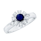 0.75 CT Blue Sapphire Flower Promise Ring with Diamond