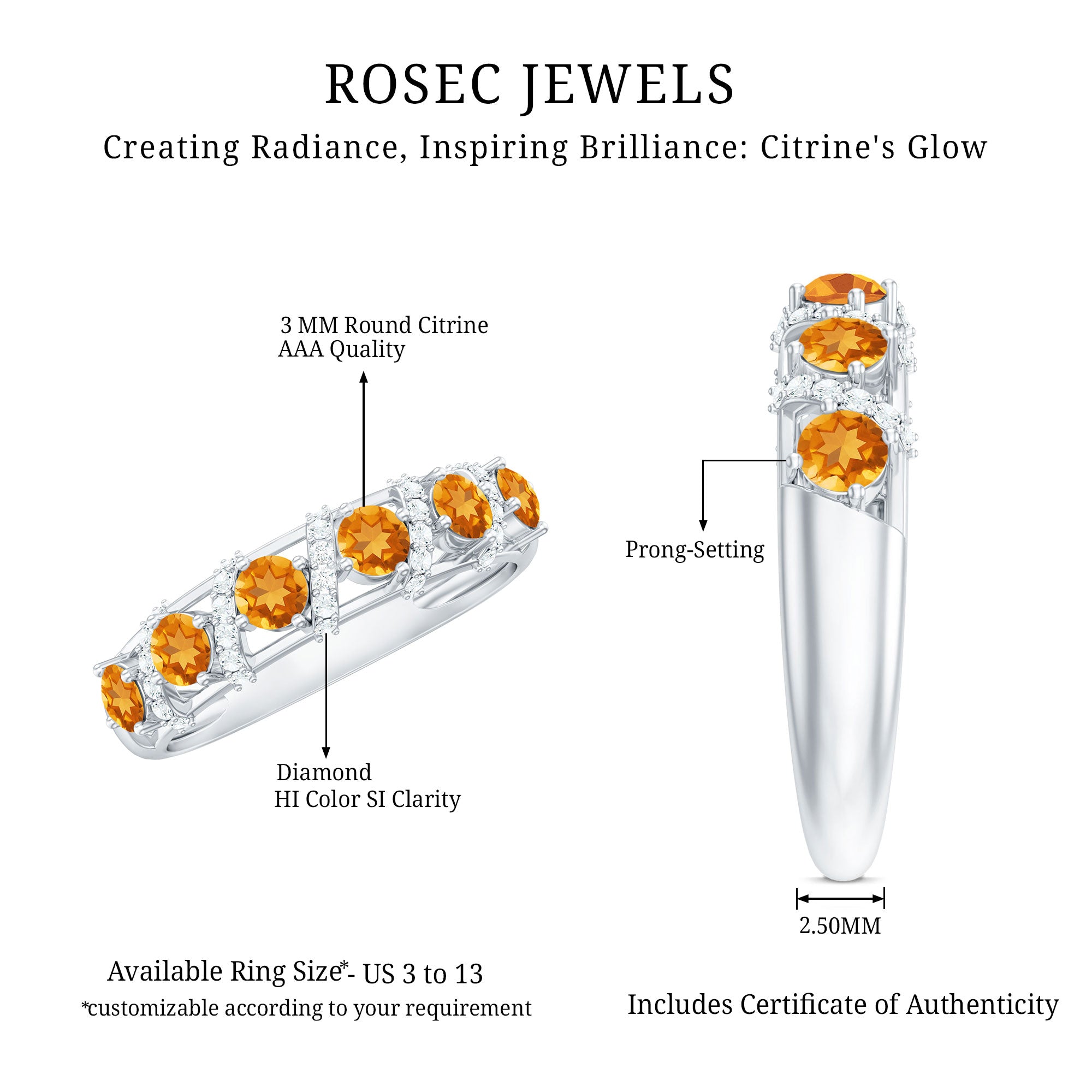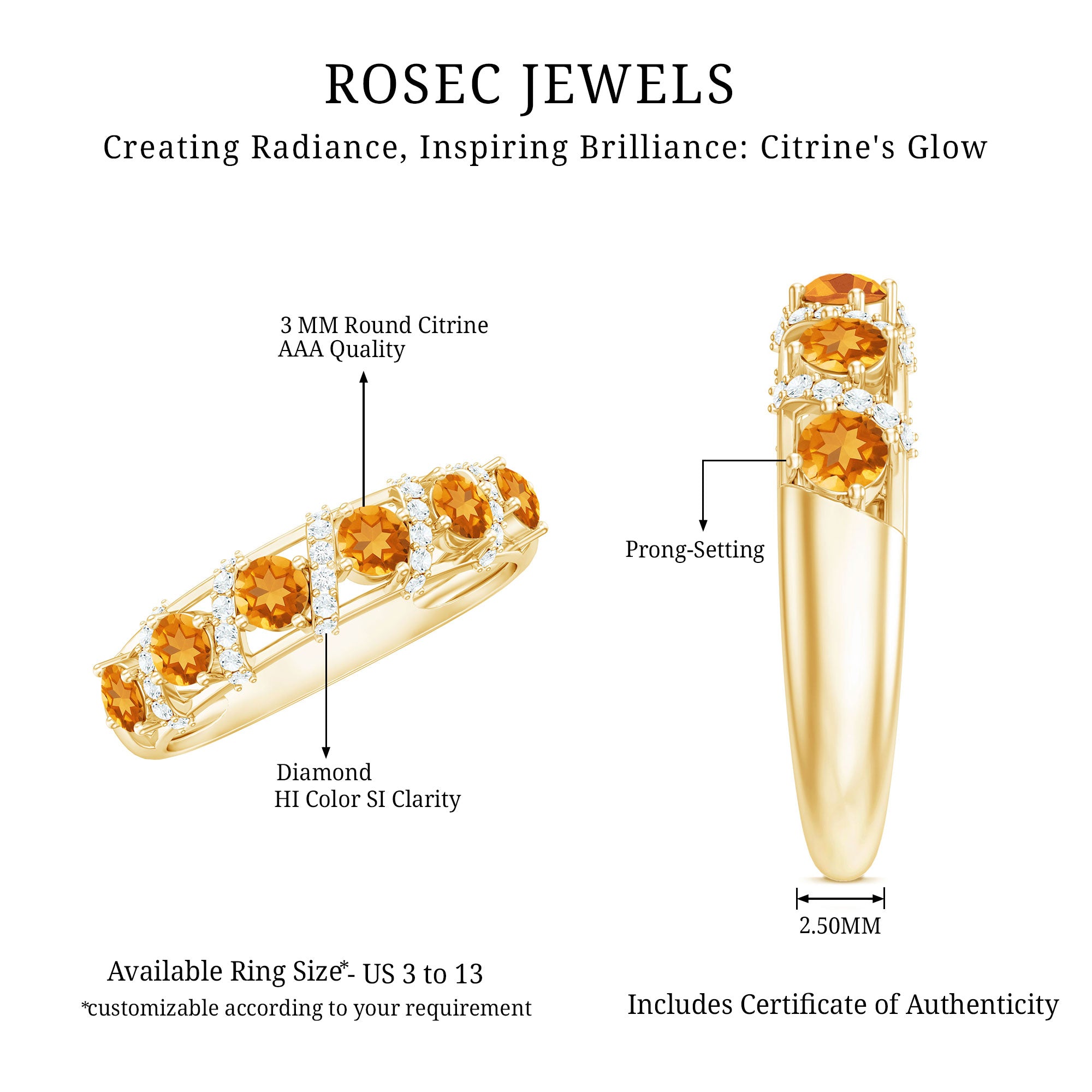 Surprise your love on the memorable day of your life with this alluring Designer Anniversary Ring and remind all the unforgettable memories. Embellished with Round Shape Citrine with Round Shape Diamond Accent, this Citrine Anniversary Ring is crafted with Gold for an opulent appeal.