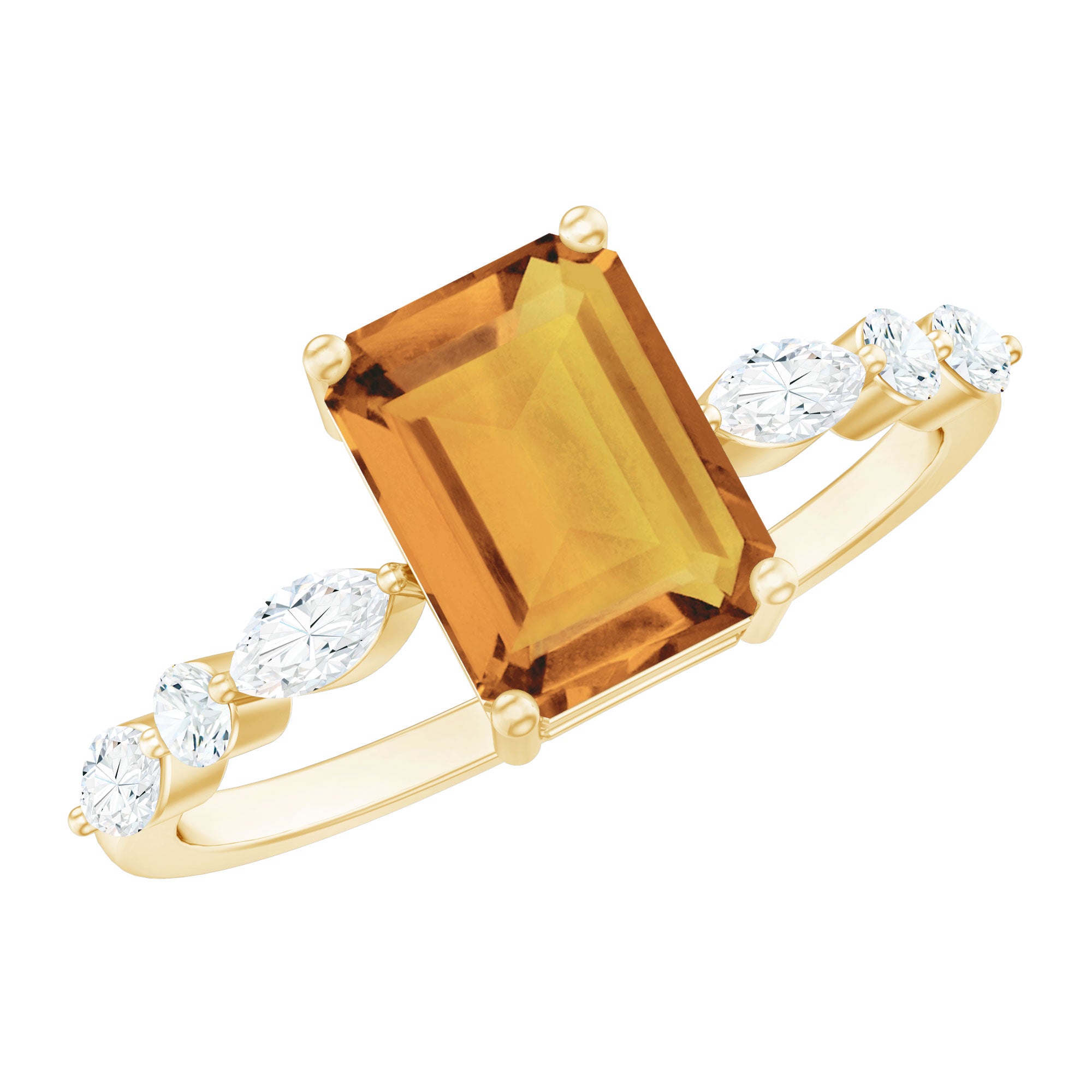 Tell her how much you love her by proposing to her with this alluring Solitaire Promise Ring embellished with Octagon Cut Citrine in Prong Setting with Round and Marquise Cut Moissanite Stones for extra sparkle and elegance. Crafted with Gold, this Citrine Promise Ring will be a perfect choice for her. This Citrine Ring will make her fall in love with you.
