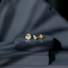 Make a bold fashion statement with these everyday stud earrings. Each earring features a marquise-cut Moissanite set in a bezel setting and accented with a trio of Moissanite on the side. These earrings are made of gold, adding a touch of elegance to your look.