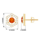 Feel unique with these Geometric Stud Earrings, adorned with Round Shape Fire Opal Gemstone set as a center stone with Diamond Accent. These Minimal Stud Earrings are crafted in Solid Gold