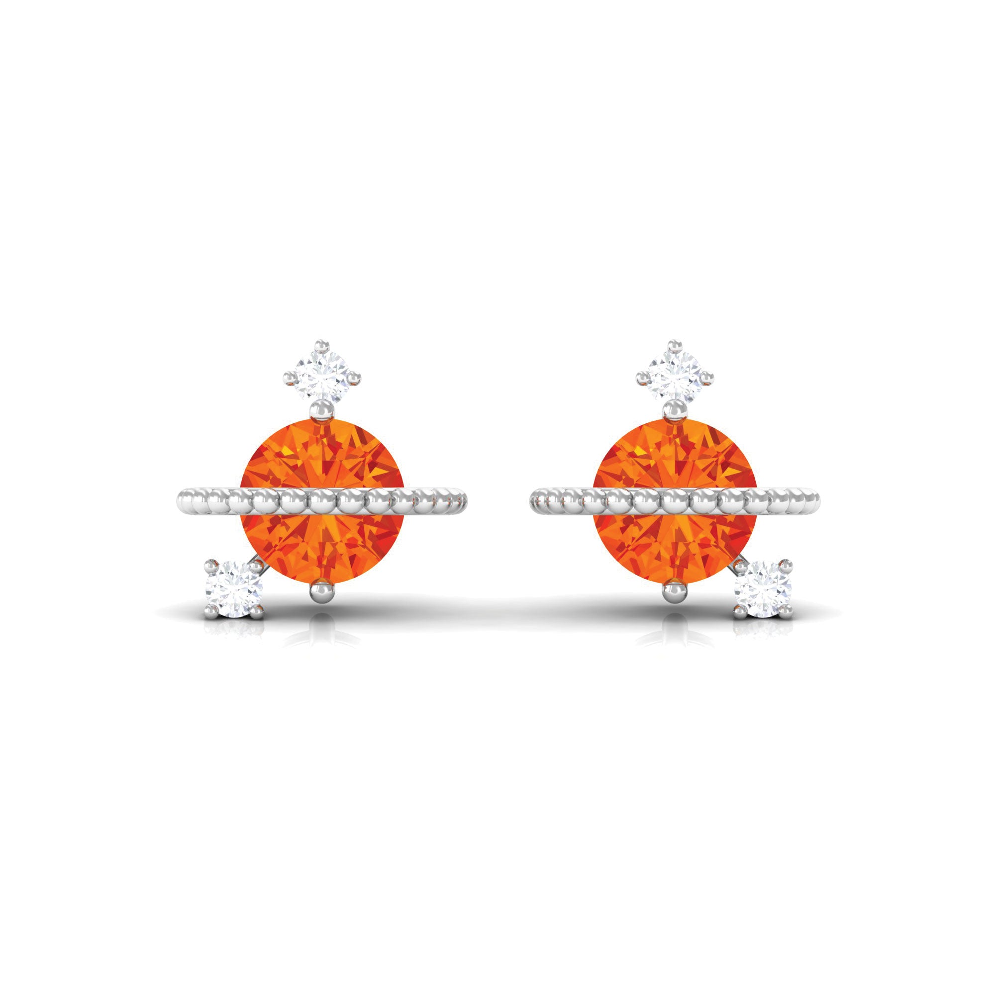 0.75 CT Orange Sapphire Celestial Stud Earrings with Diamond