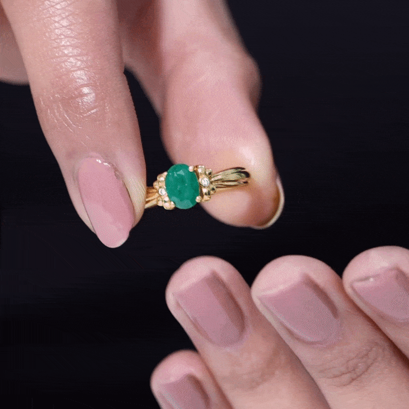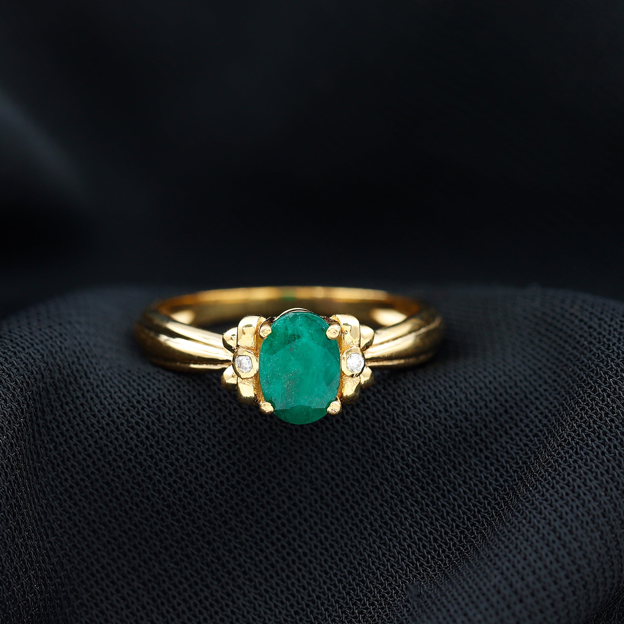 Every love story shines brighter with a ring that captures its magic, and this Oval Emerald Engagement Ring does just that. It is embellished with a beautiful 5X7 MM oval shaped Emerald, set in secure prong setting as a solitaire. The design is both elegant and meaningful, making it perfect for someone who appreciates timeless beauty with a touch of modern charm. What makes this Solitaire Emerald Ring truly special is its bow design. On each side of the center Emerald, delicate bow shapes are set with small and sparkling Diamonds that add a hint of playfulness and romance. These fine details give the Oval Engagement Ring a graceful and unique character, making it stand out while staying effortlessly elegant. The AAA quality Emerald and HI-SI quality Diamond combination creates a radiant sparkle that catches the light from every angle, offering just the right amount of brilliance without being overwhelming. Crafted with care and precision, this Emerald and Diamond Engagement Ring is designed to be both beautiful and comfortable for everyday wear. Available in US sizes 3 to 13, the Bow Ring comes in a beautifully packaged jewelry box, ready to gift.