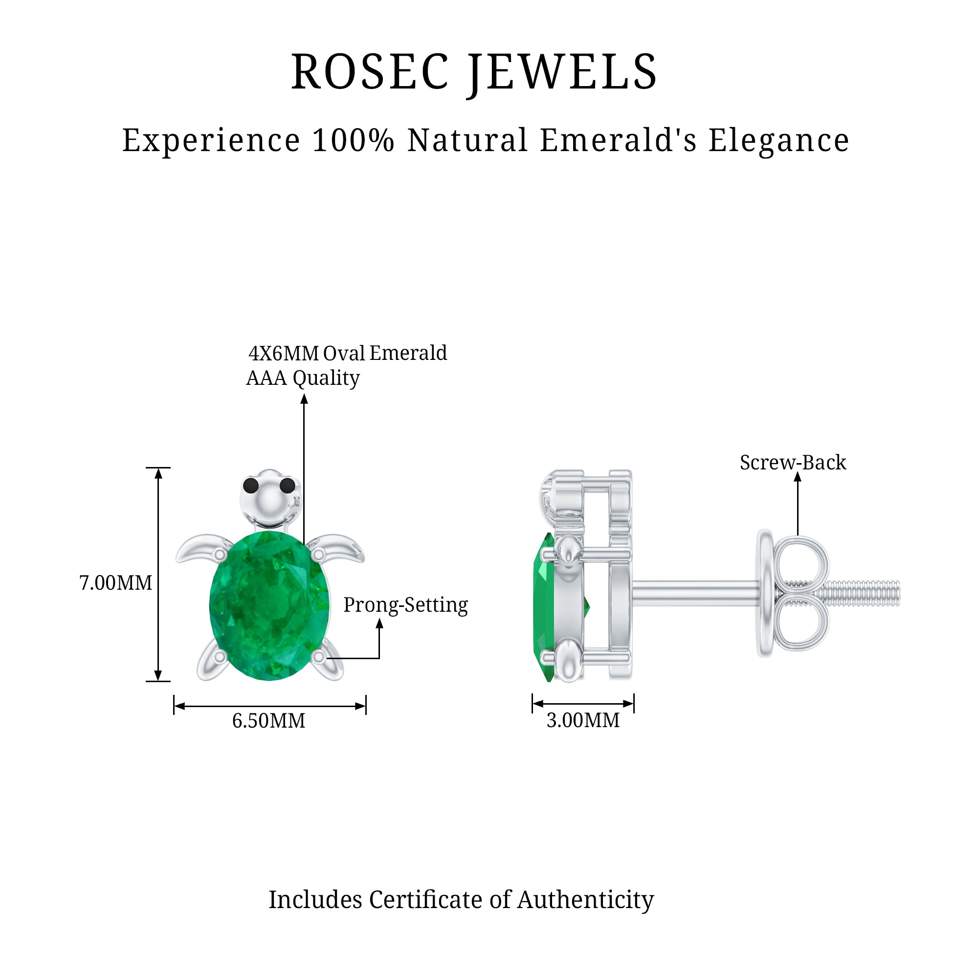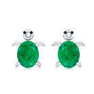0.75 CT Oval Shaped Emerald Solitaire Turtle Stud Earrings