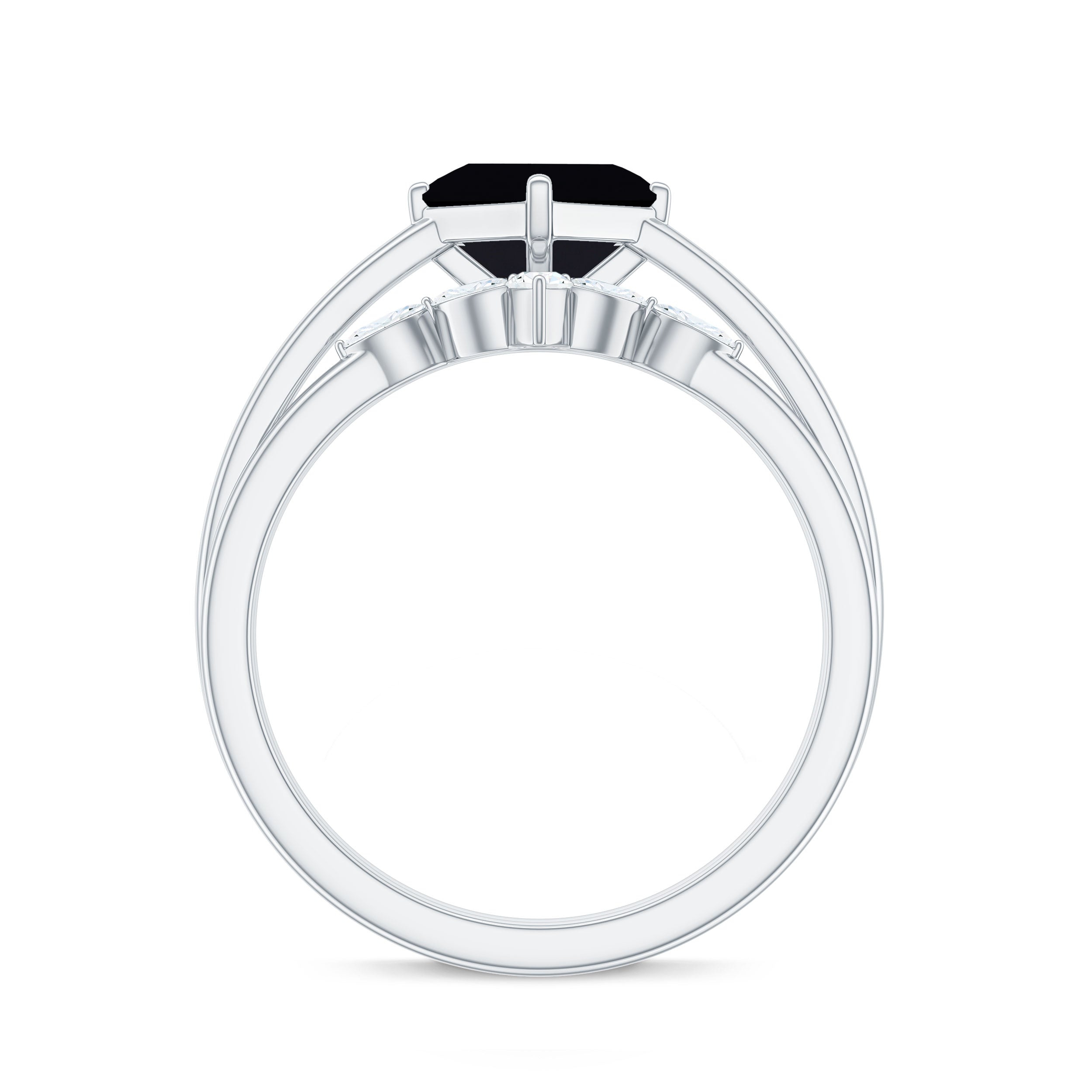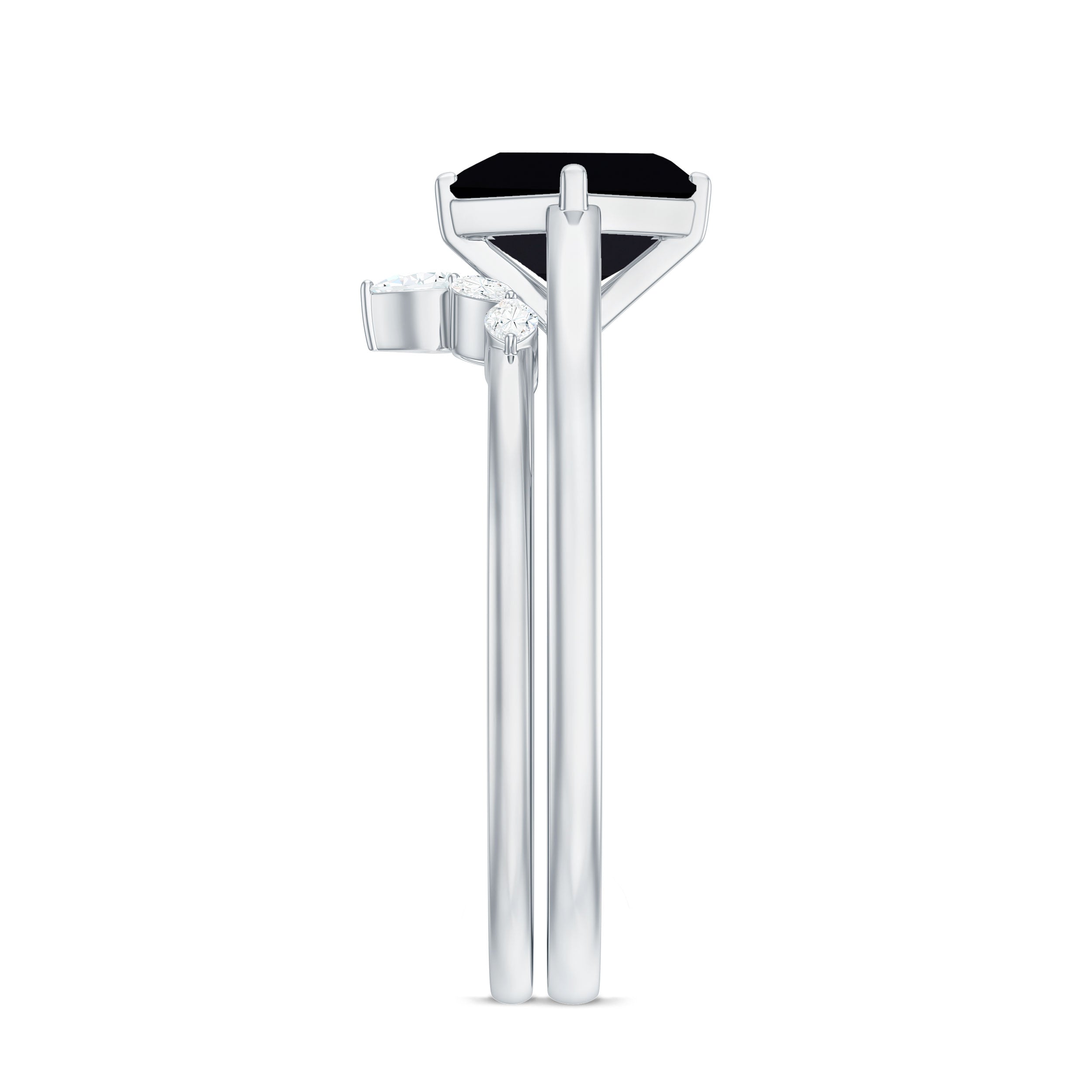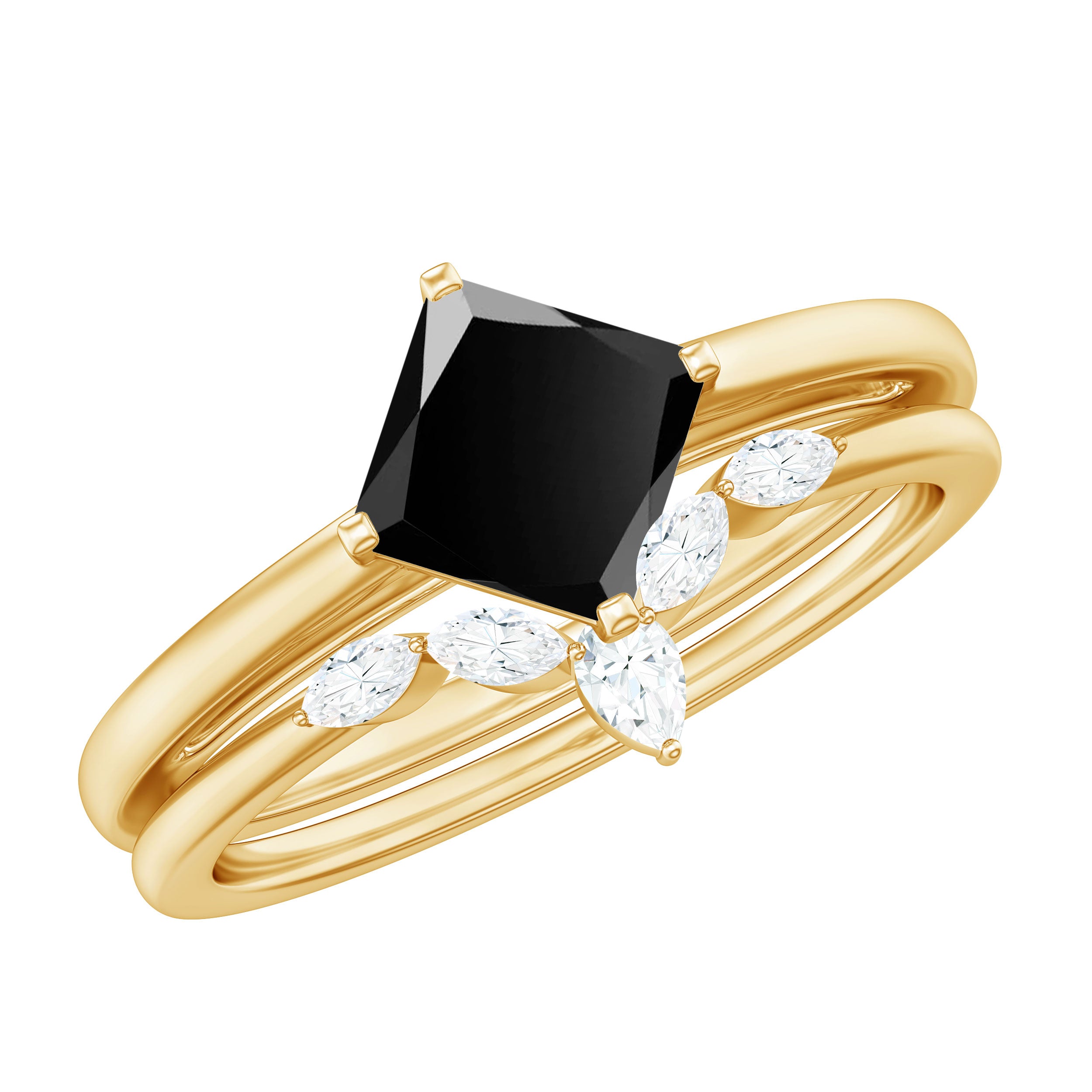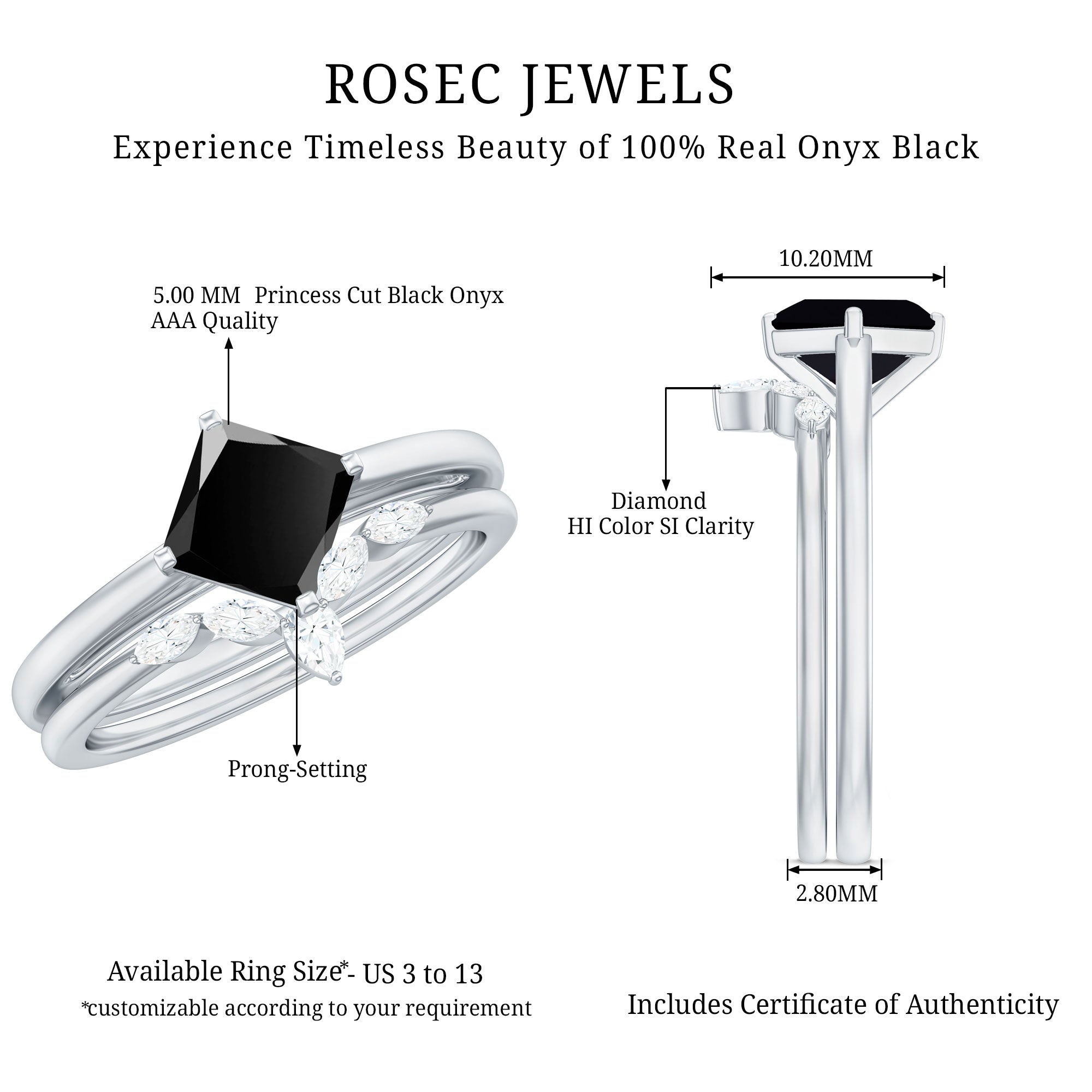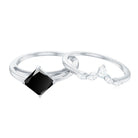 5mm Princess Cut Black Onyx Solitaire Rings Set with Diamond Enhancer