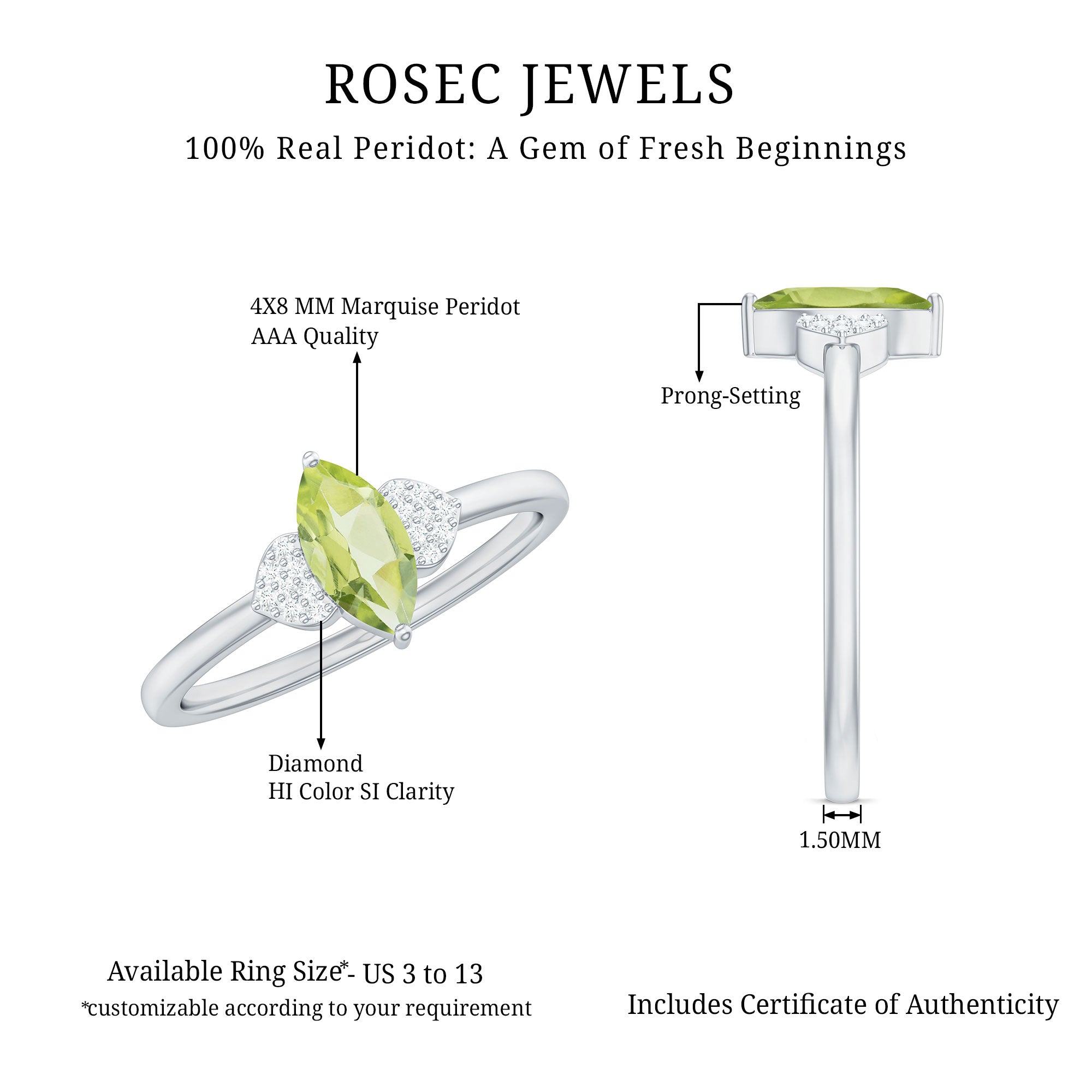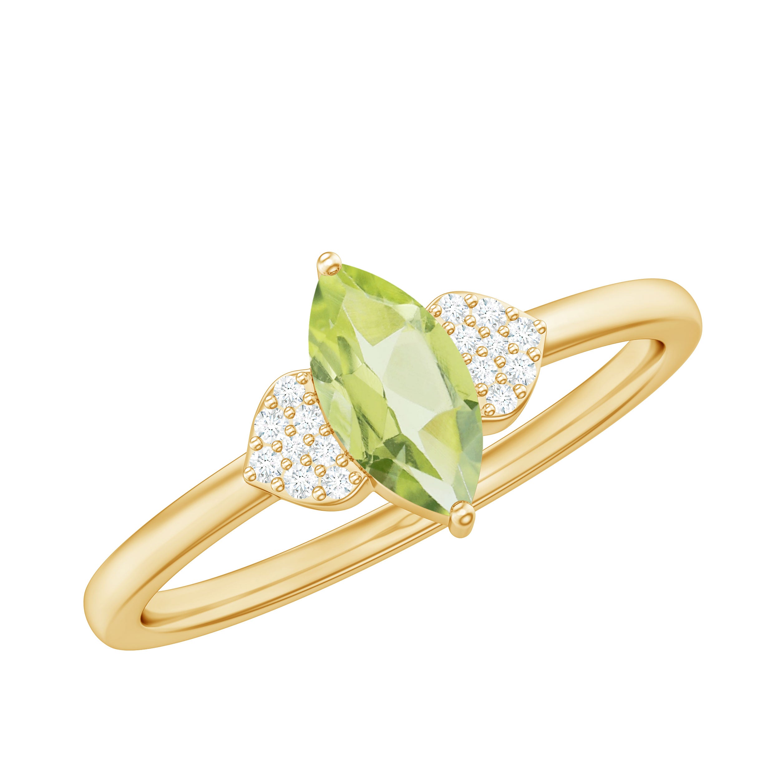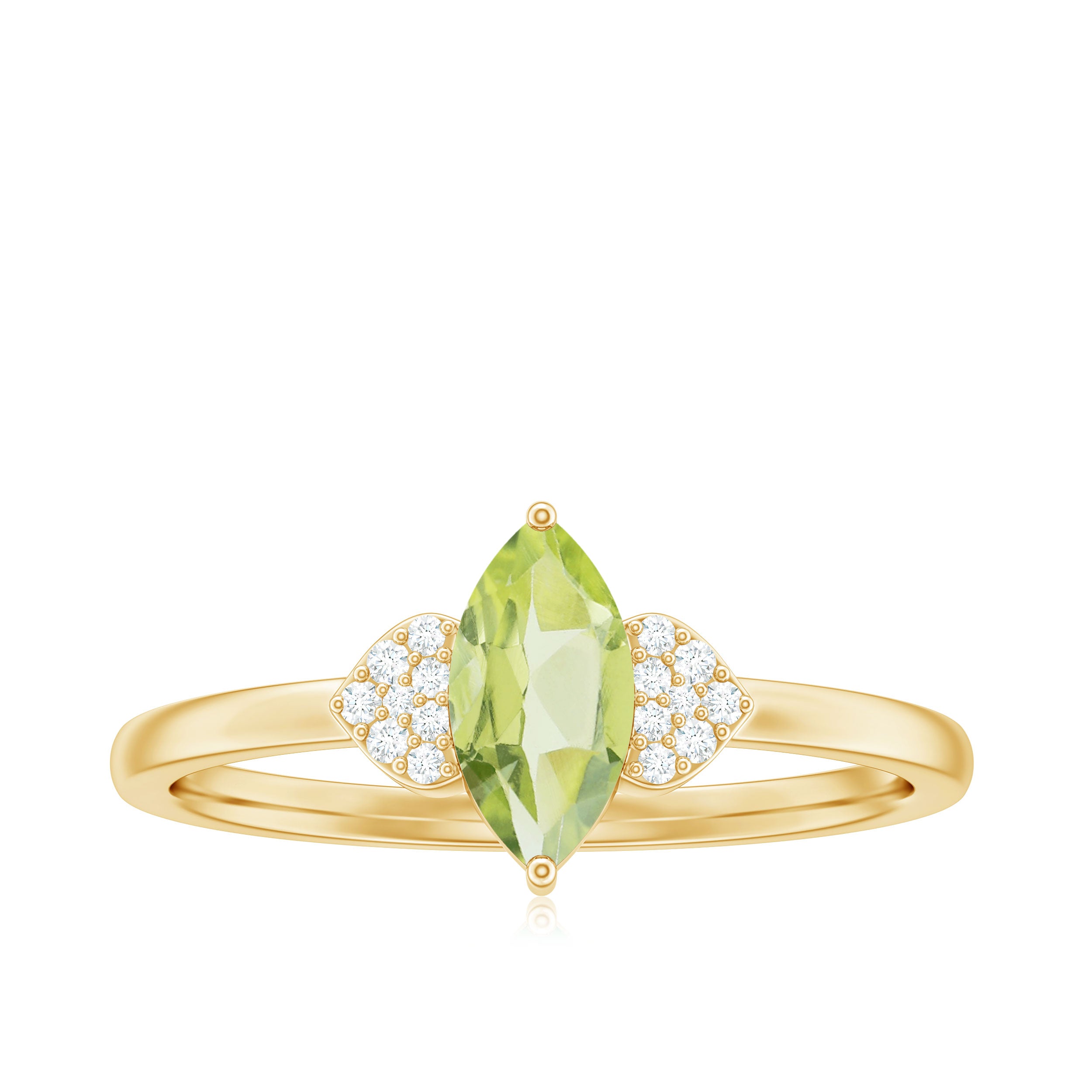 When you present this alluring Engagement Ring to her, she will feel much elated. This Solitaire Engagement Ring is embellished with Marquise Cut Peridot in 2 Prong Setting with Diamond Side Stones. This Peridot Ring is crafted to maximize its brilliance. This Peridot Ring will surely be the right choice for your lady love.