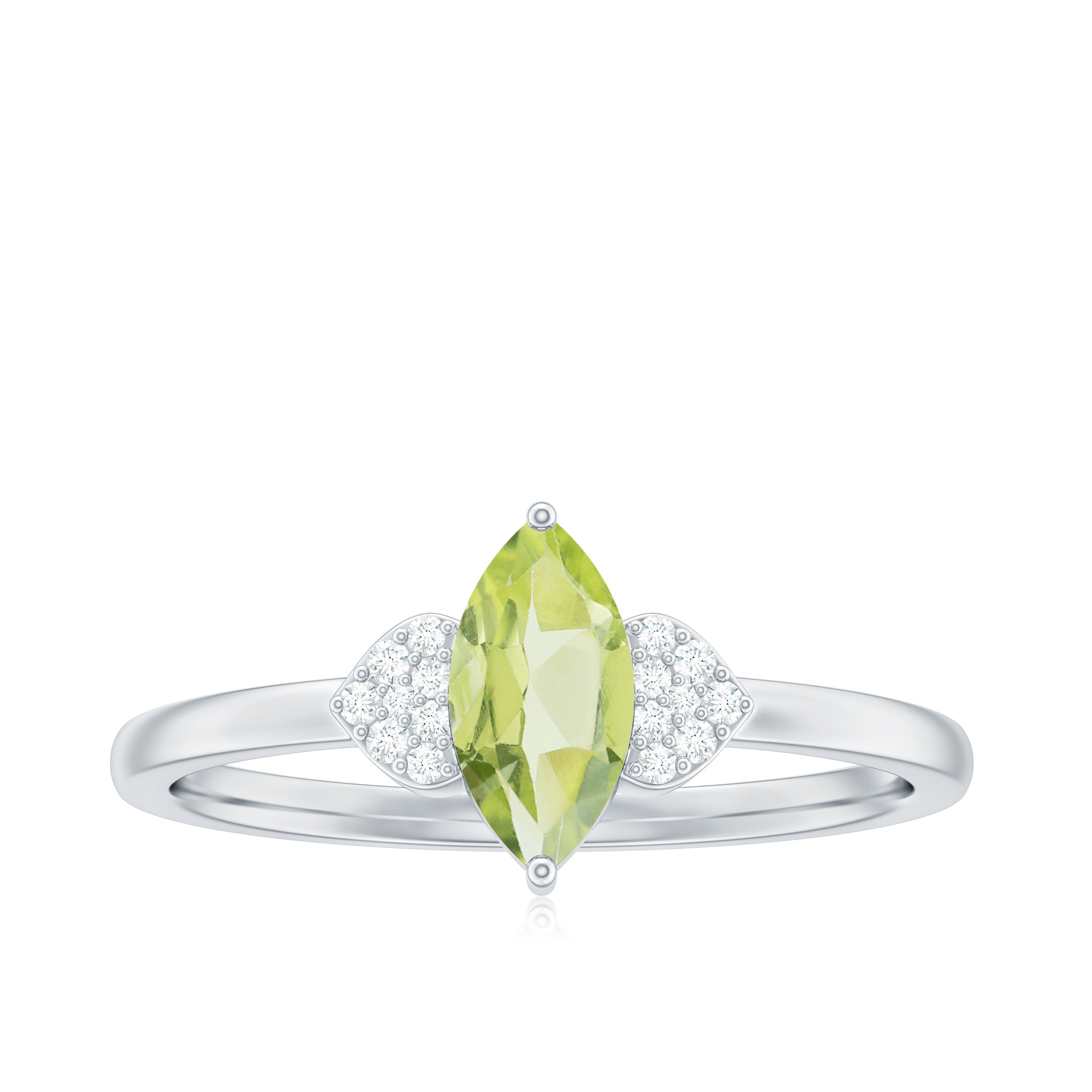0.75 CT Real Peridot Engagement Ring with Diamond Stones