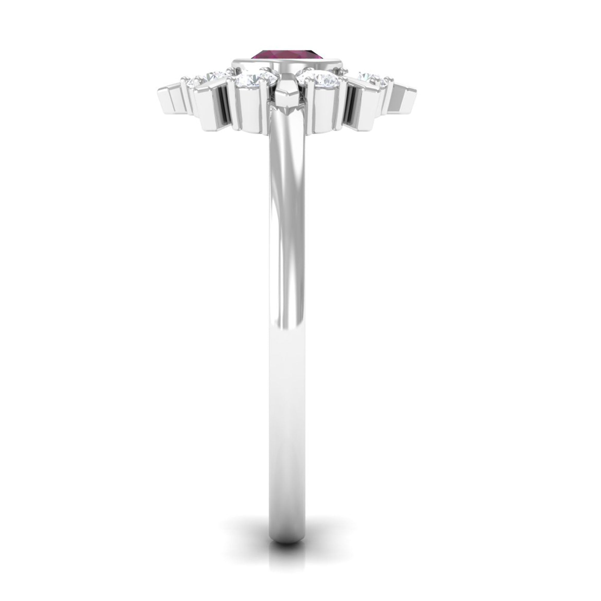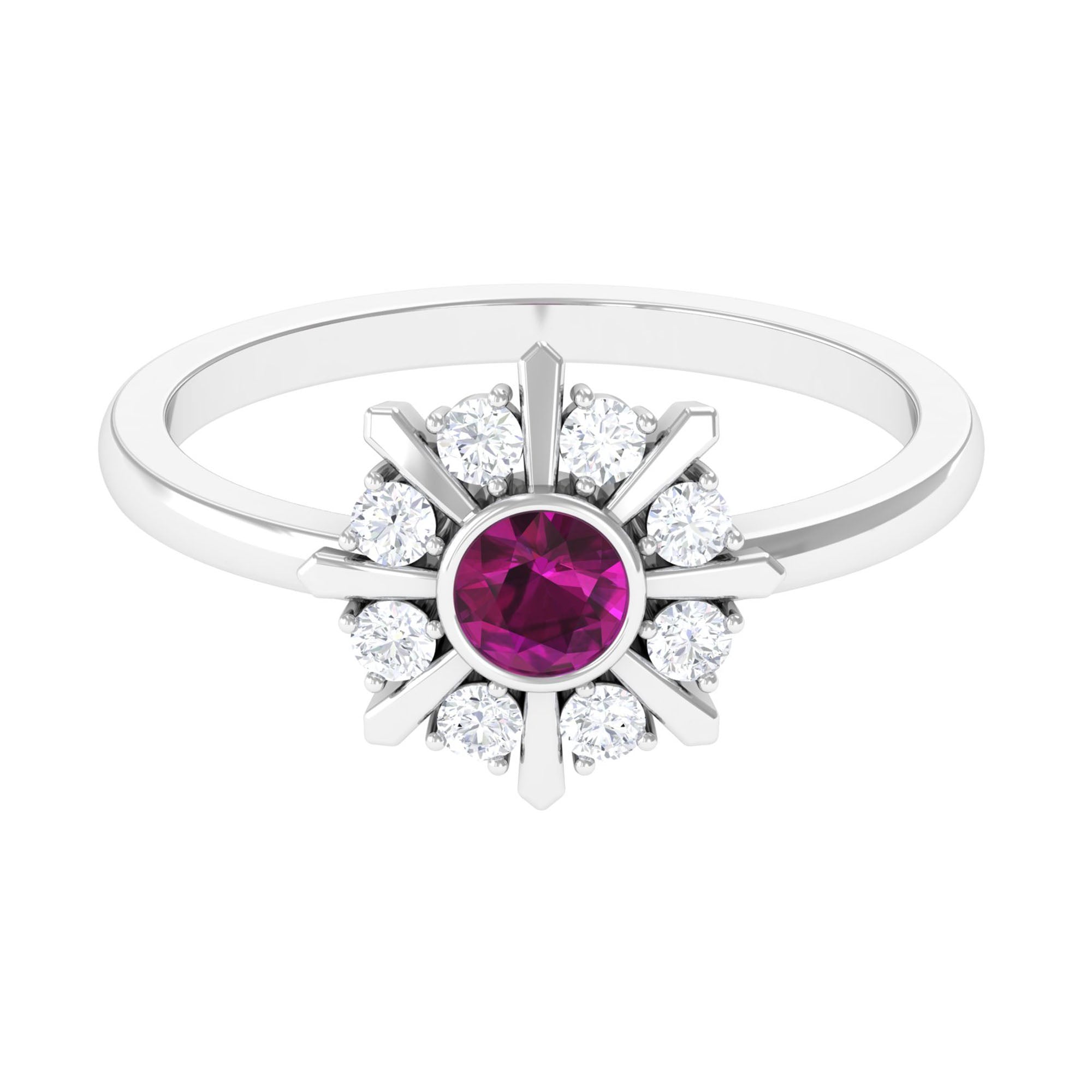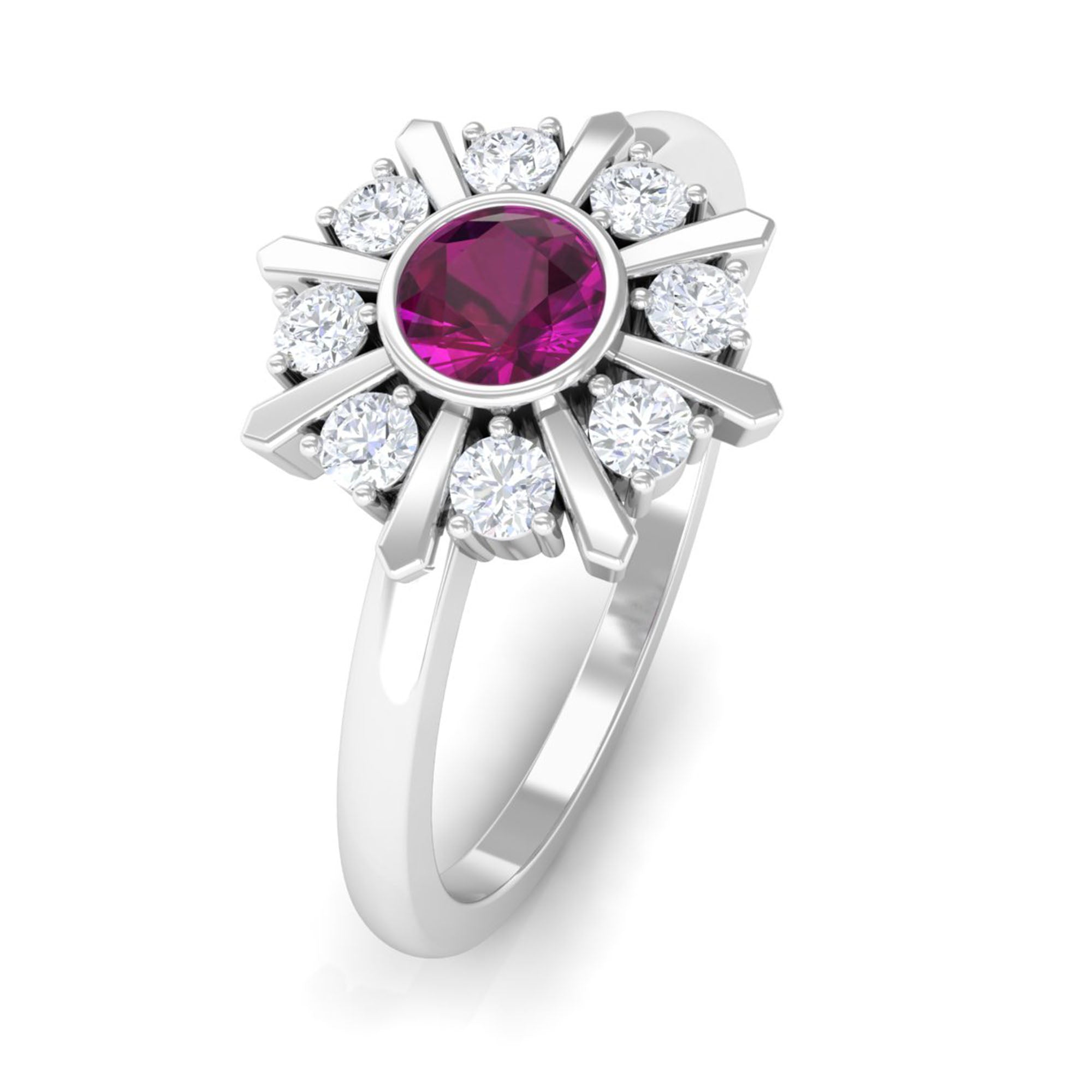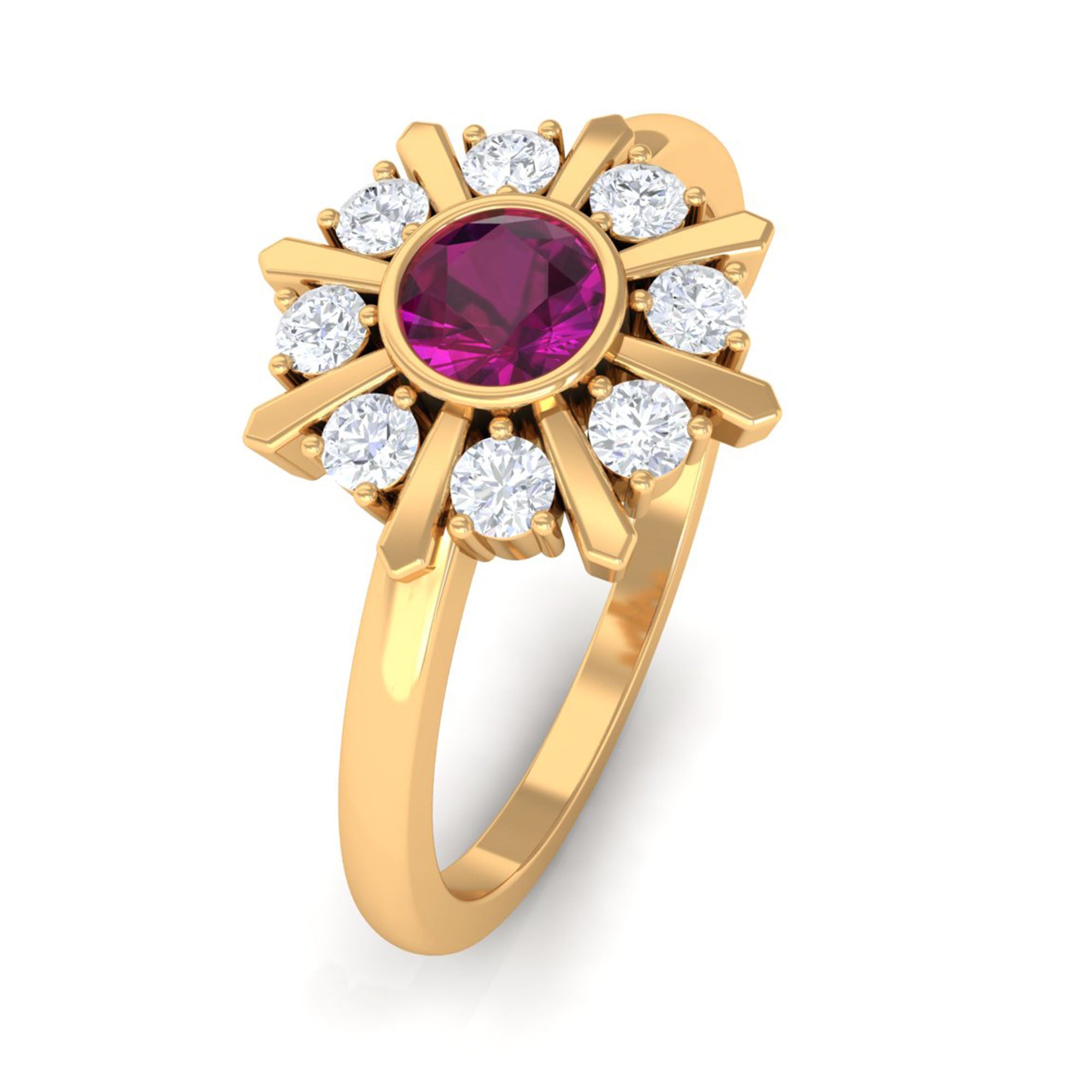 0.75 CT Real Rhodolite Statement Ring with Diamond Stones