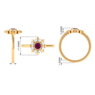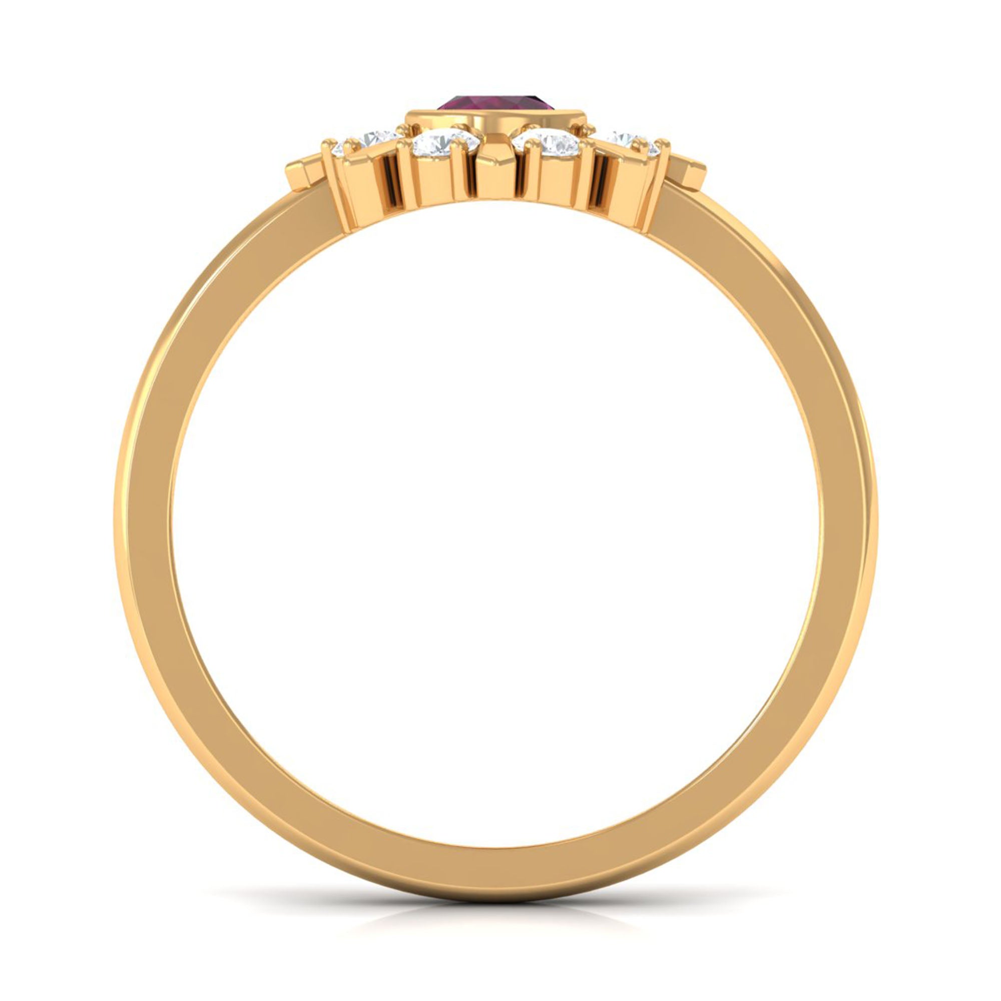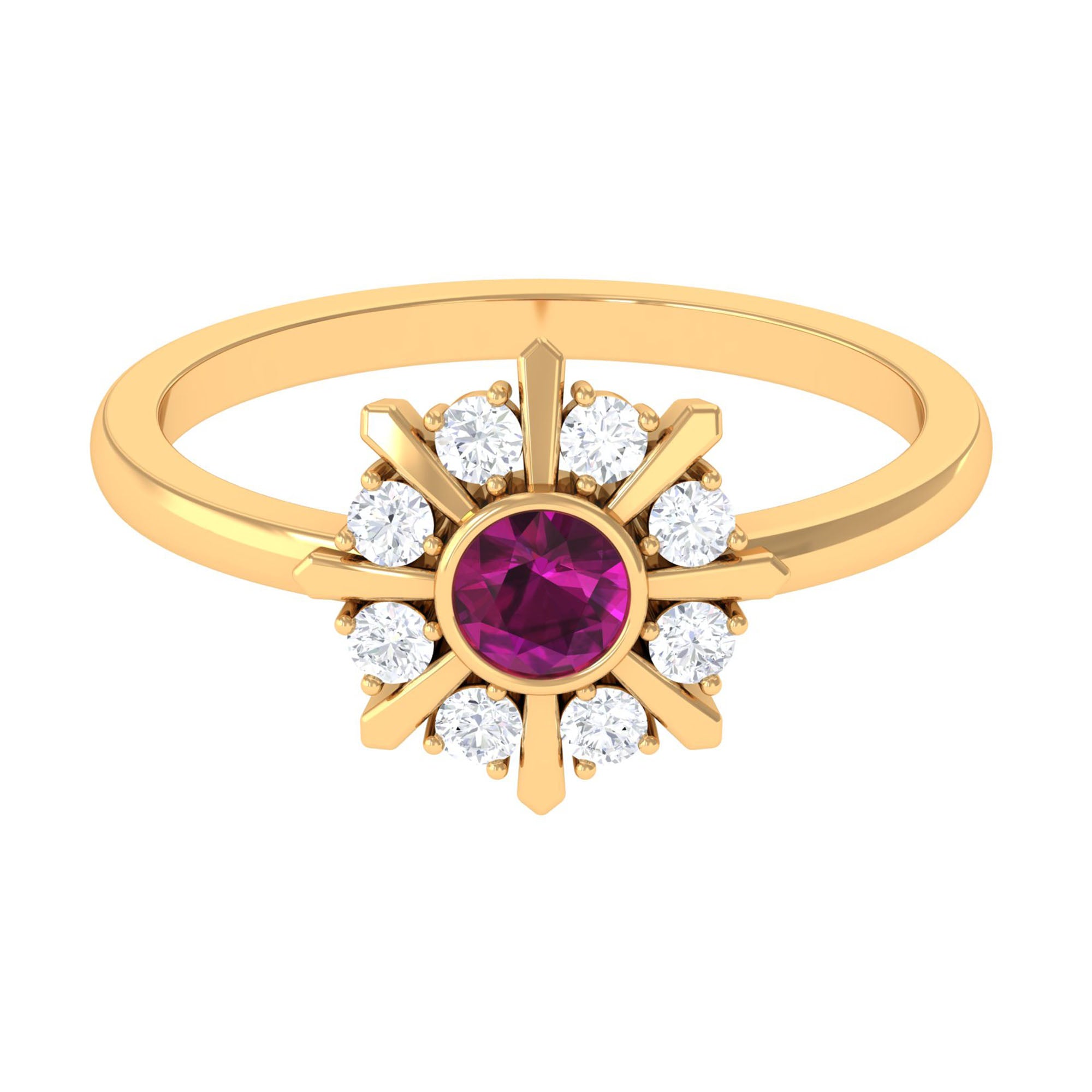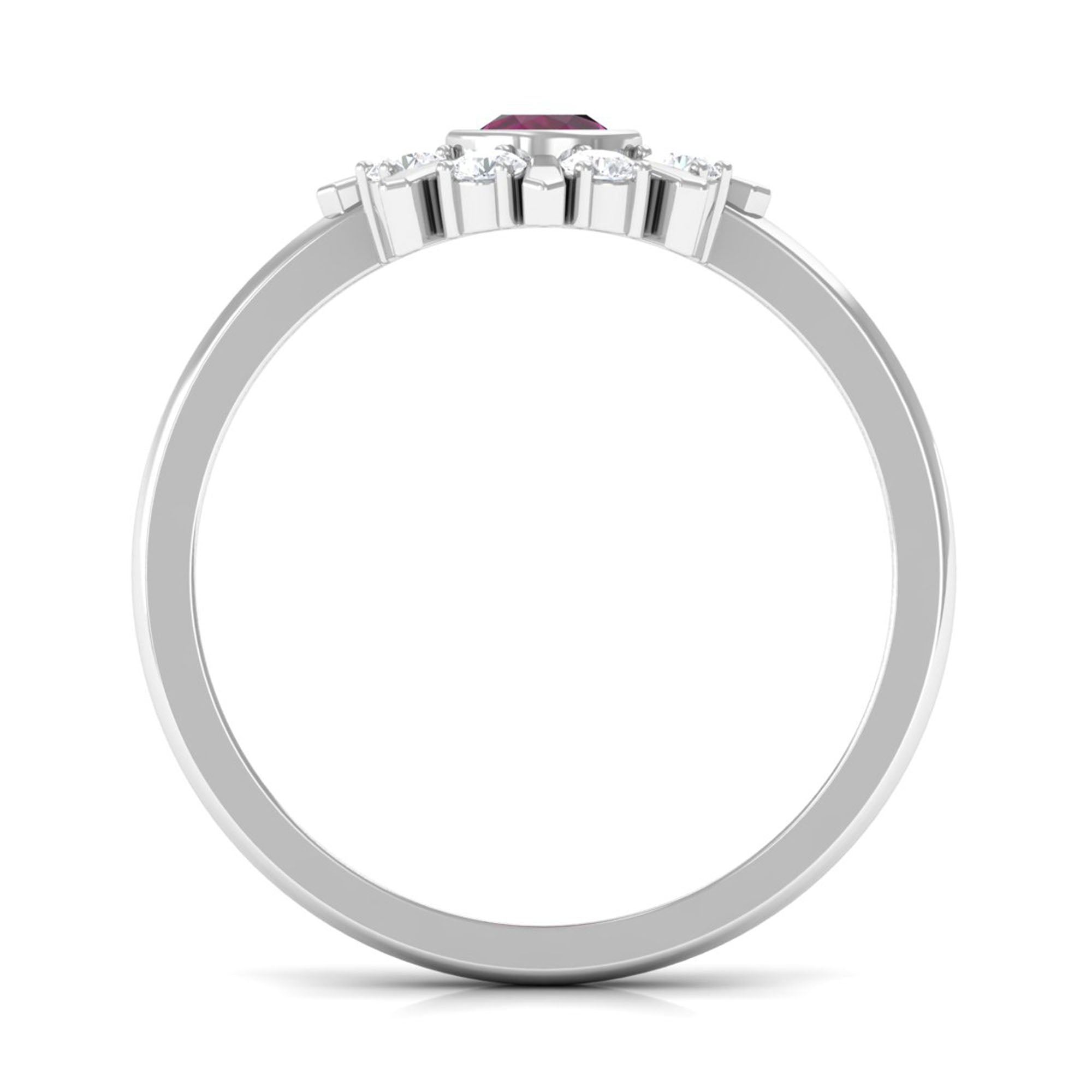 0.75 CT Real Rhodolite Statement Ring with Diamond Stones