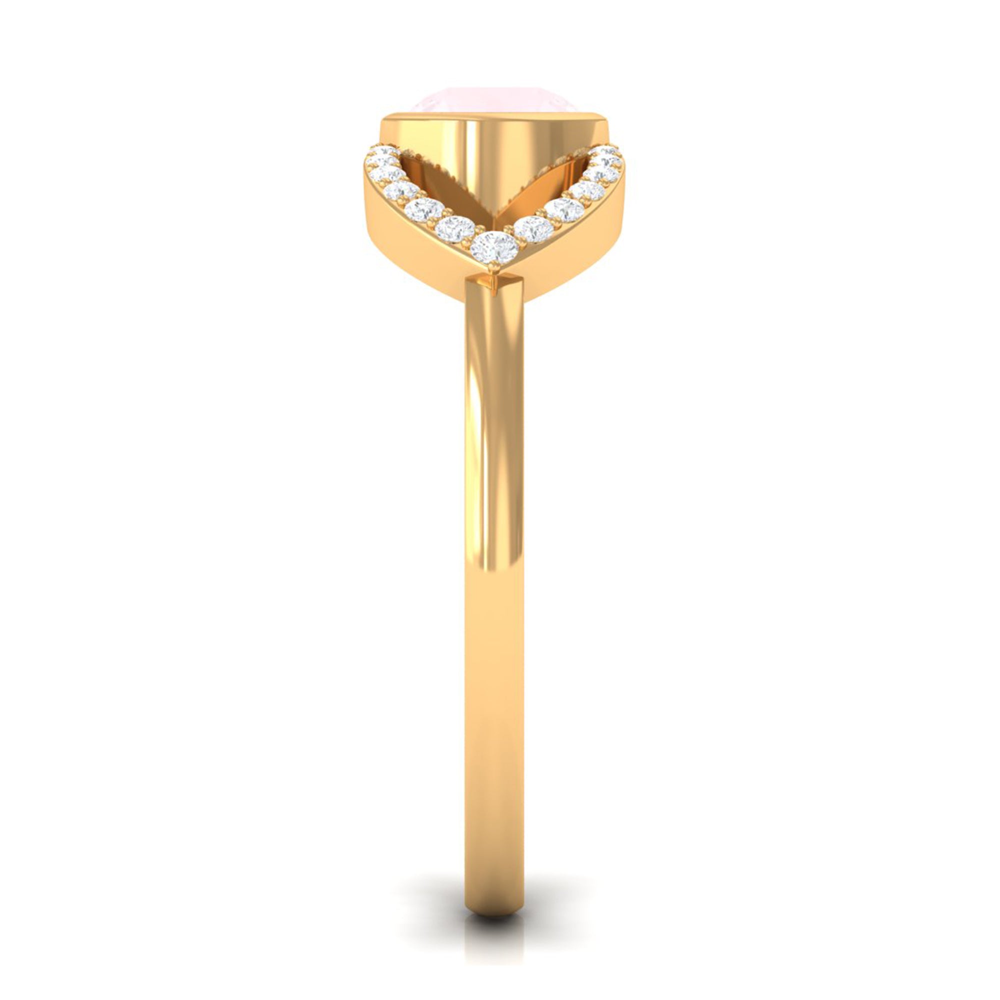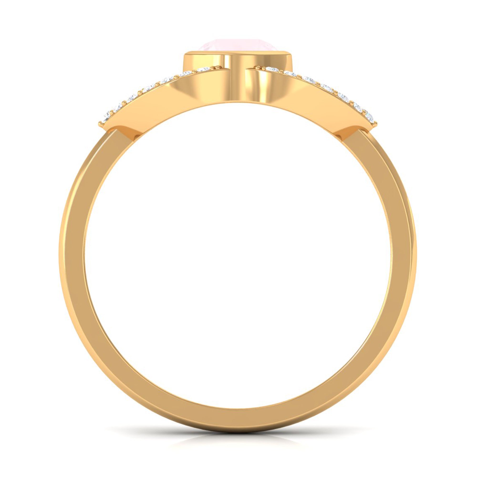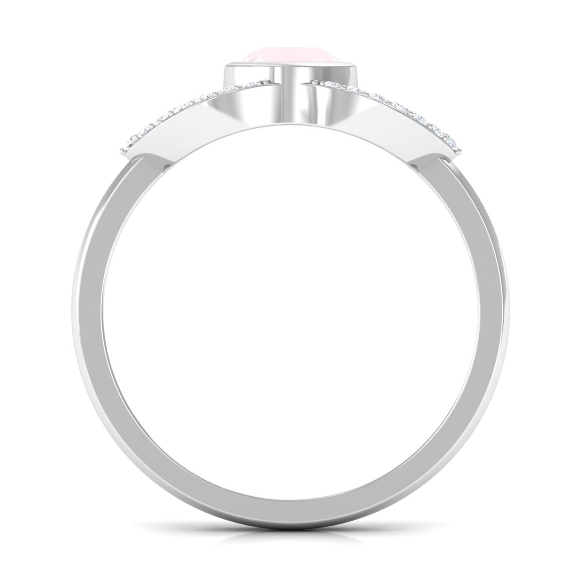 0.75 CT Real Rose Quartz Solitaire Ring with Diamond Accent