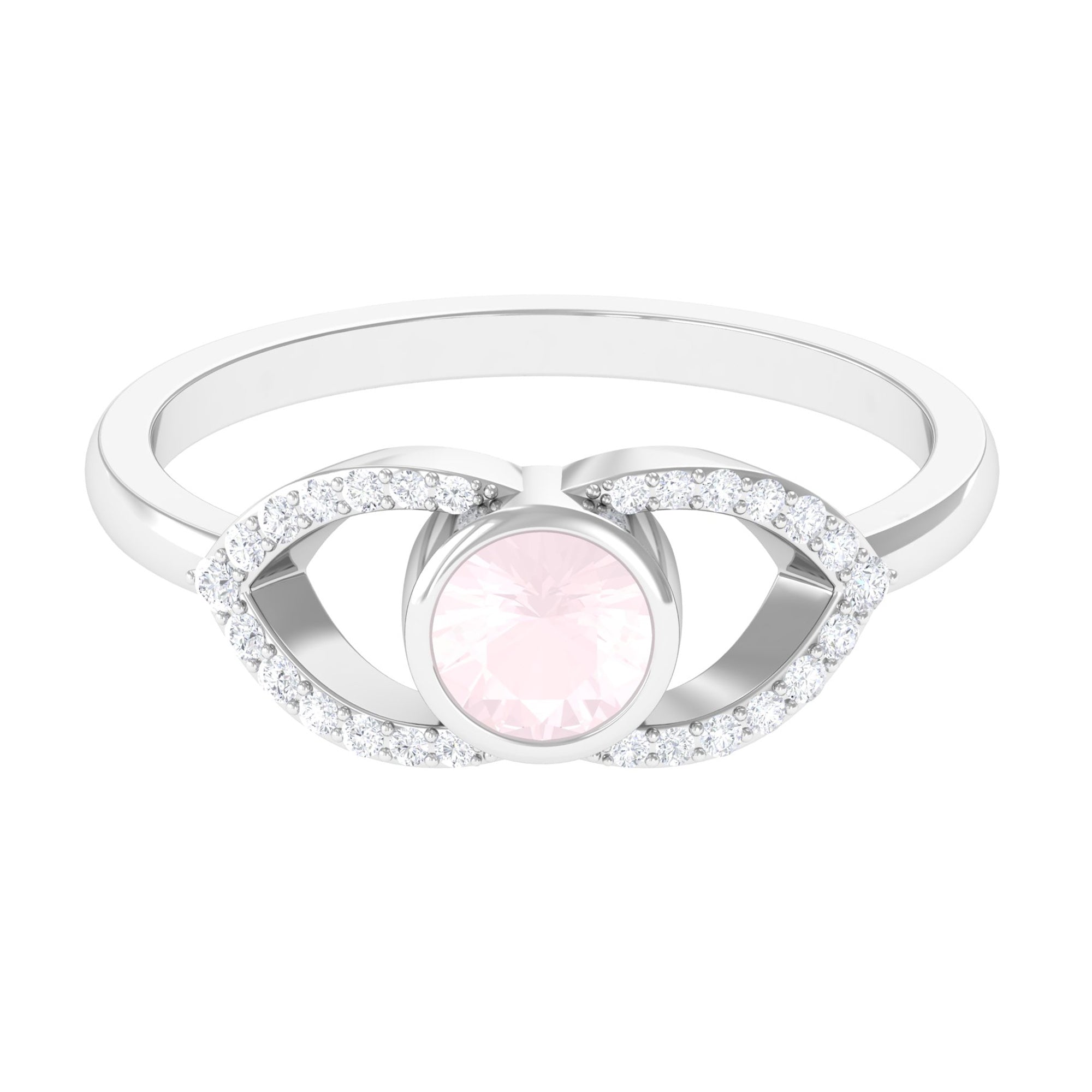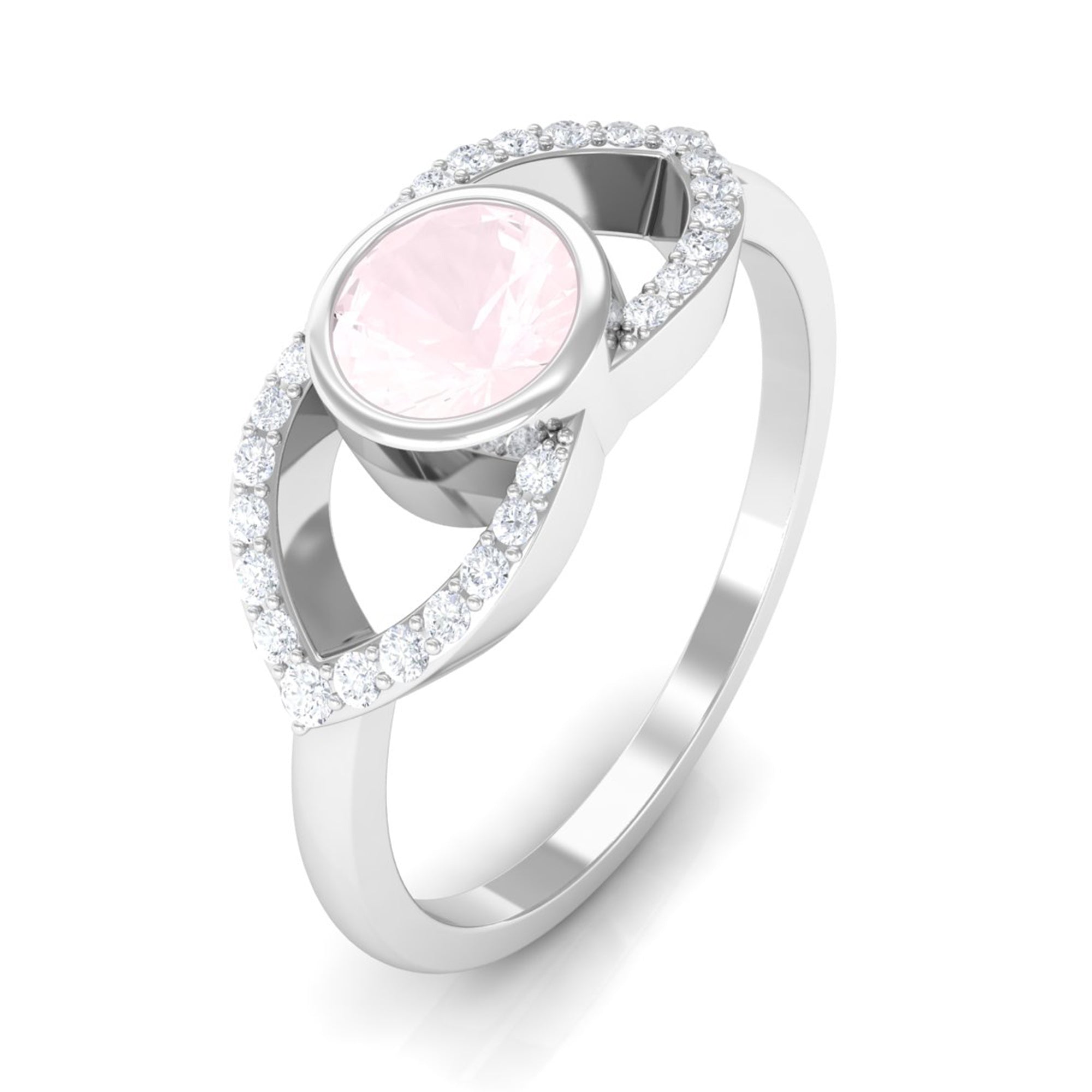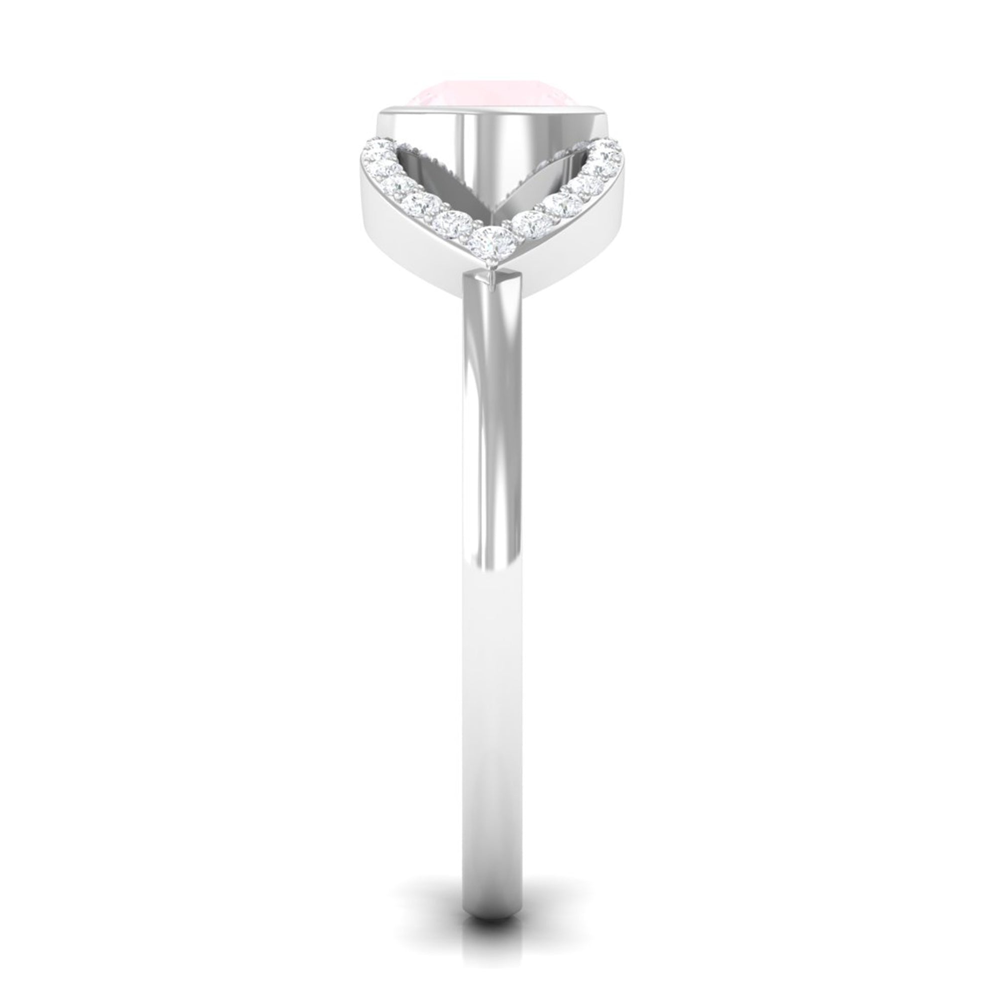 0.75 CT Real Rose Quartz Solitaire Ring with Diamond Accent