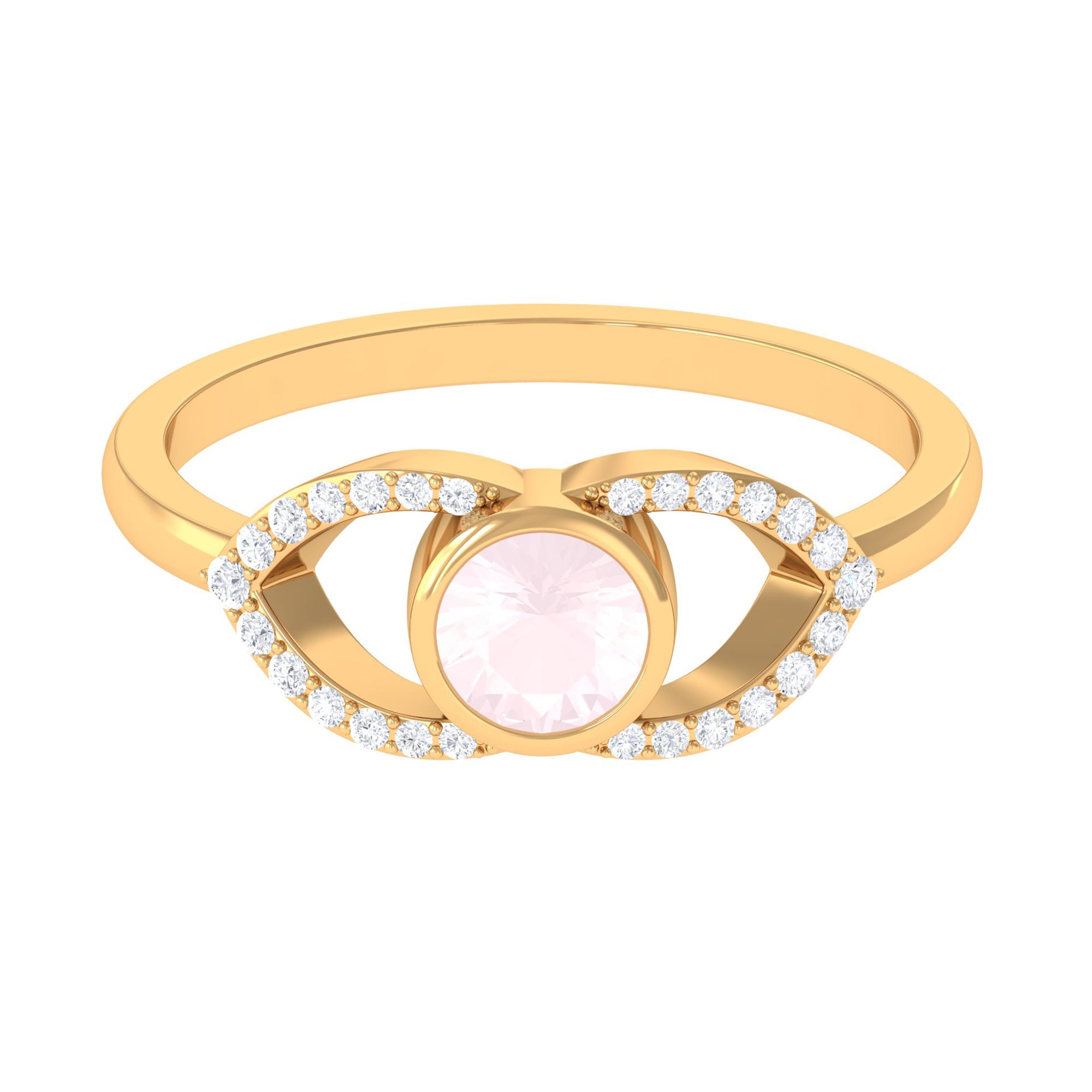 Elegantly adorn yourself with this alluring Solitaire Ring adorned with Round Shape Rose Quartz in Bezel Setting while shimmering Diamond Stones are studded over the mesmerizing Split Shank. Crafted with Gold, this Rose Quartz and Diamond Ring will give you a stand out look from others and fill your day with compliments.