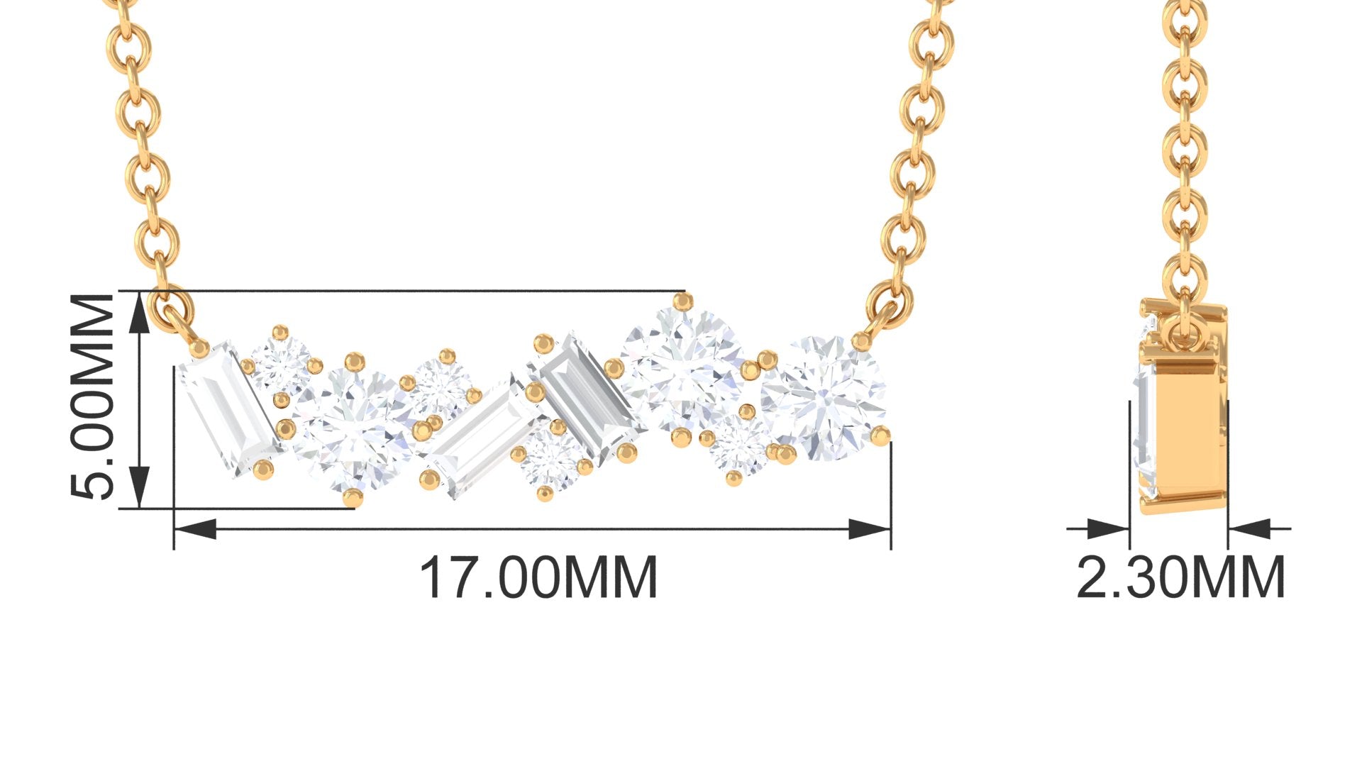 0.75 CT Round and Baguette Cut Moissanite Cluster Bar Necklace