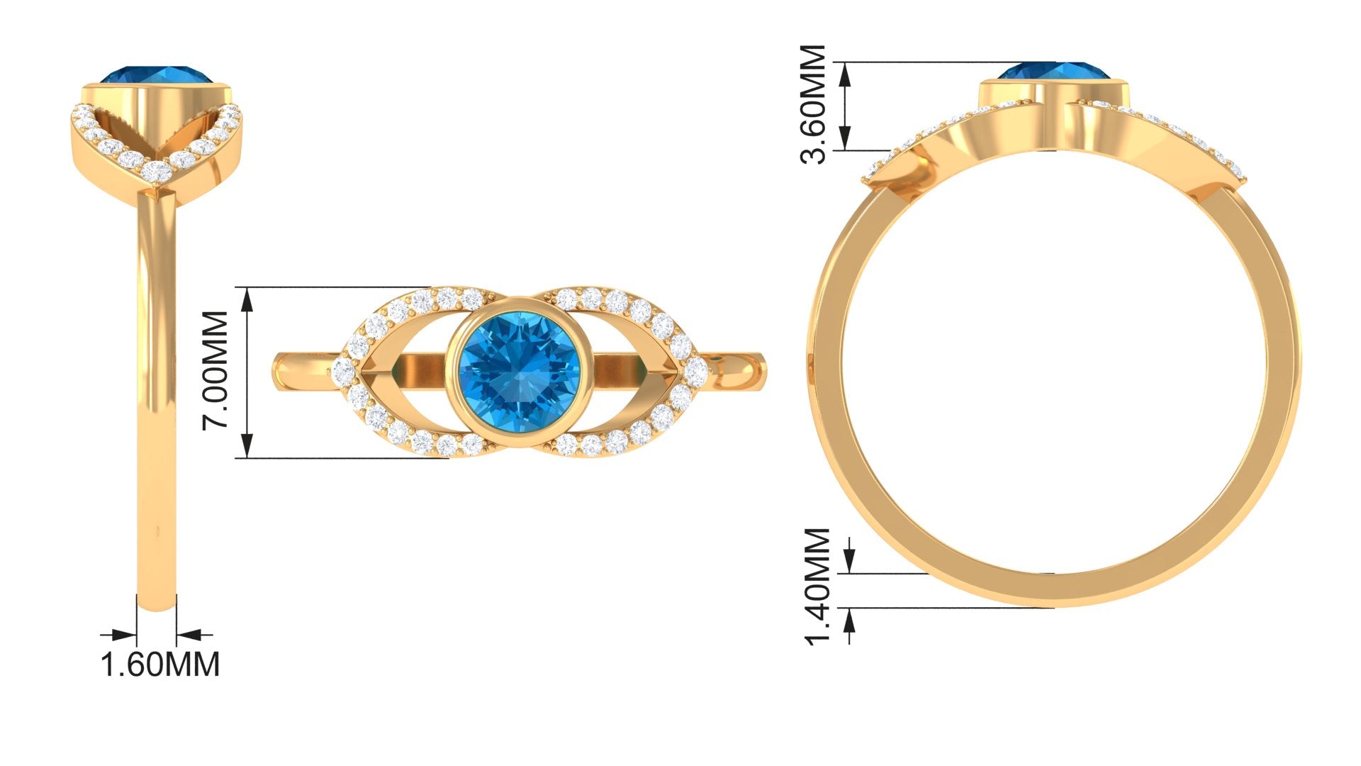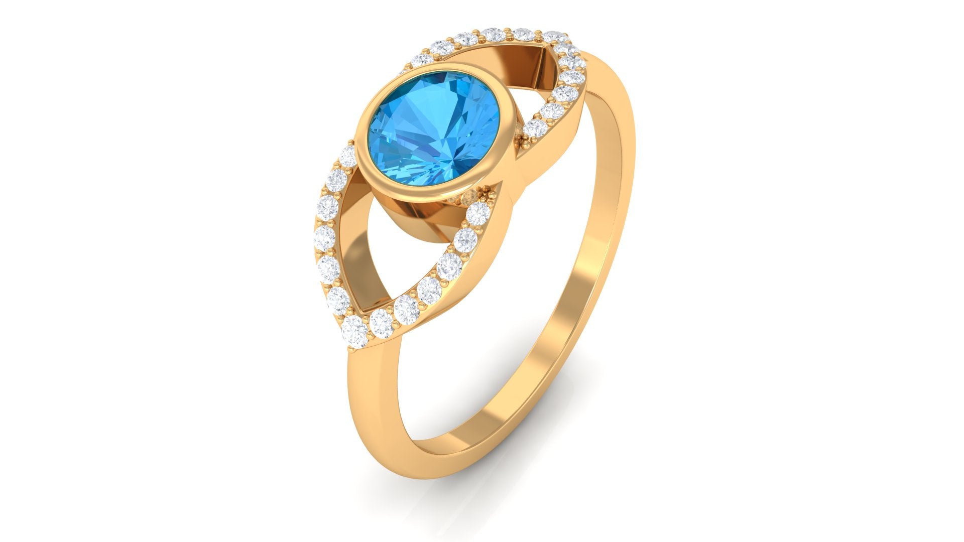 0.75 CT Swiss Blue Topaz Solitaire Ring with Diamond Accent
