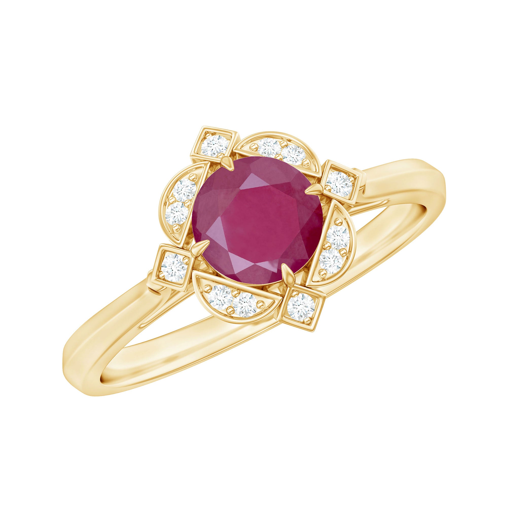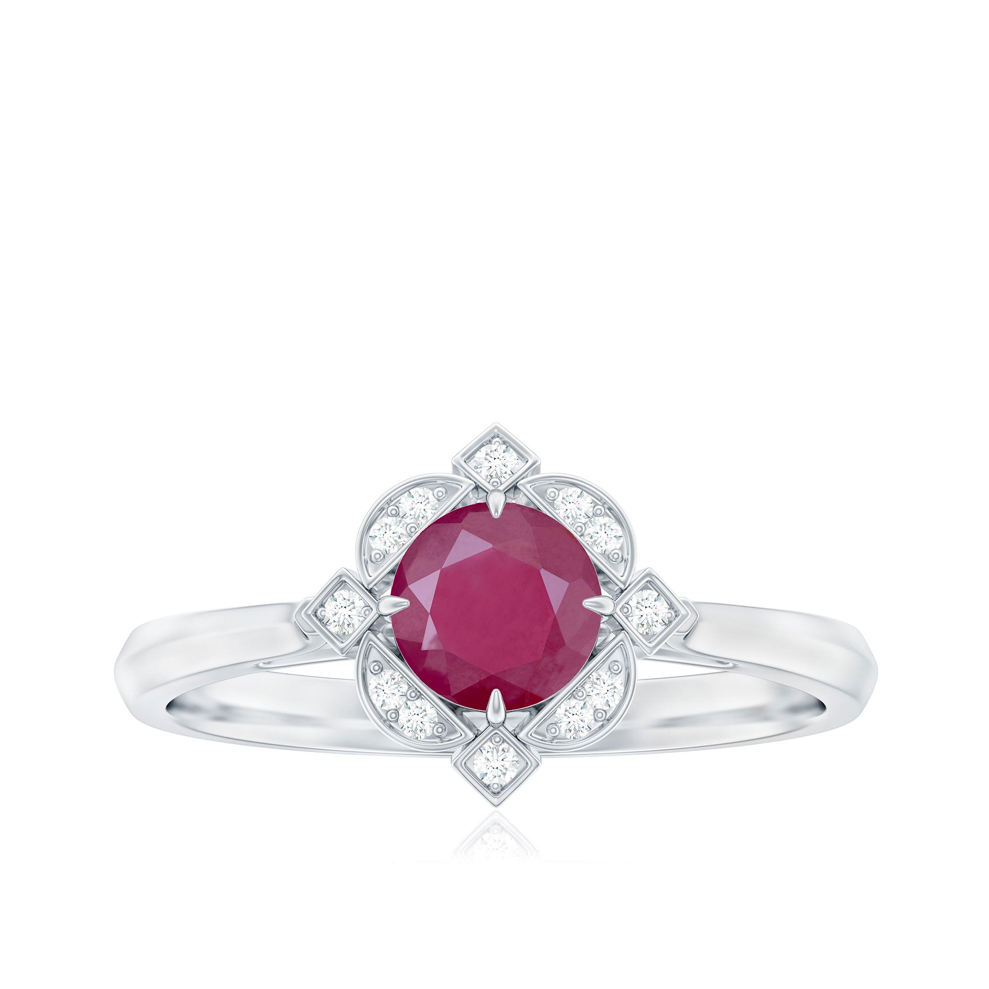 0.75 CT Vintage Ruby Engagement Ring with Diamond