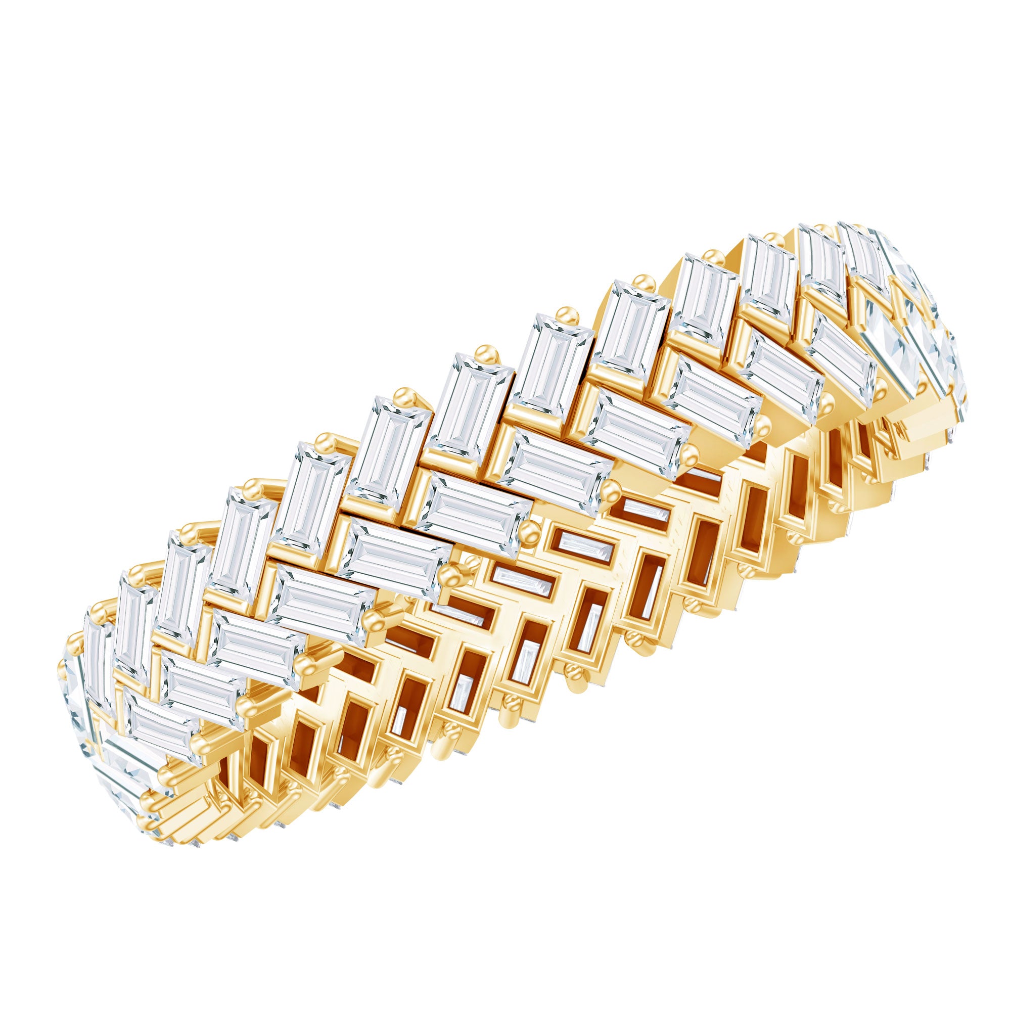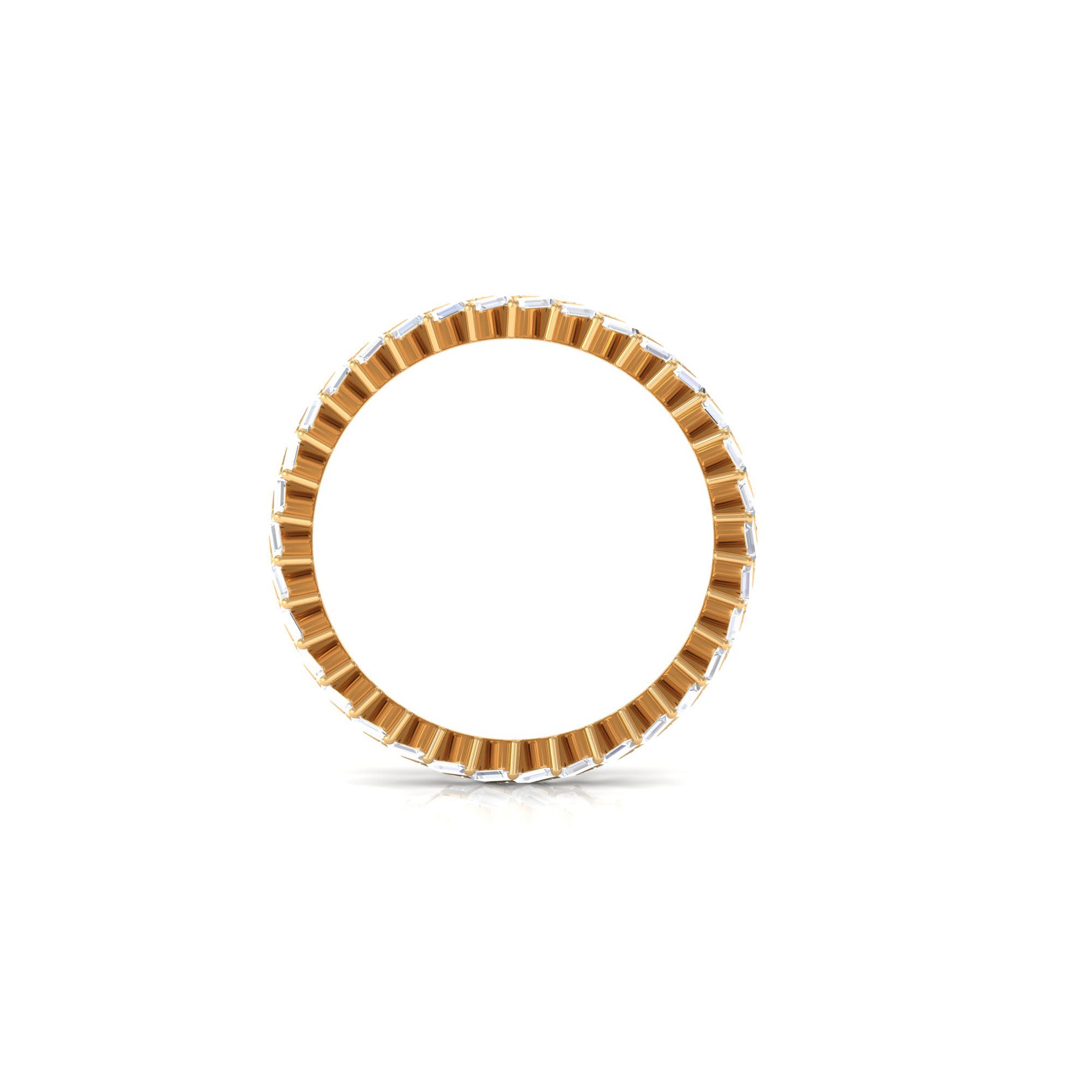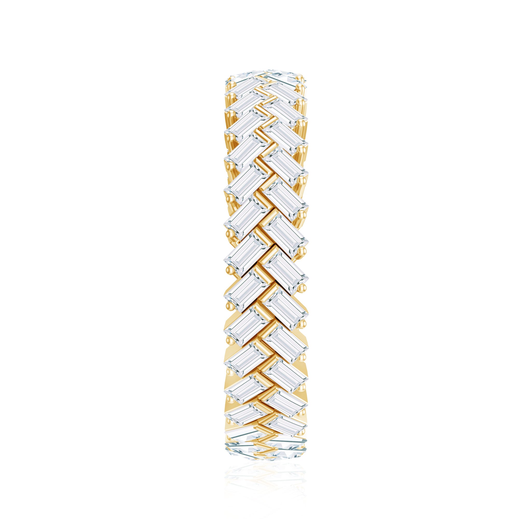 Strike out a gorgeous statement by wearing this elegant Braided Eternity Ring which is embellished with Baguette Cut Zircon. This Zircon Eternity Ring is crafted with Solid Gold for a luxurious appeal.