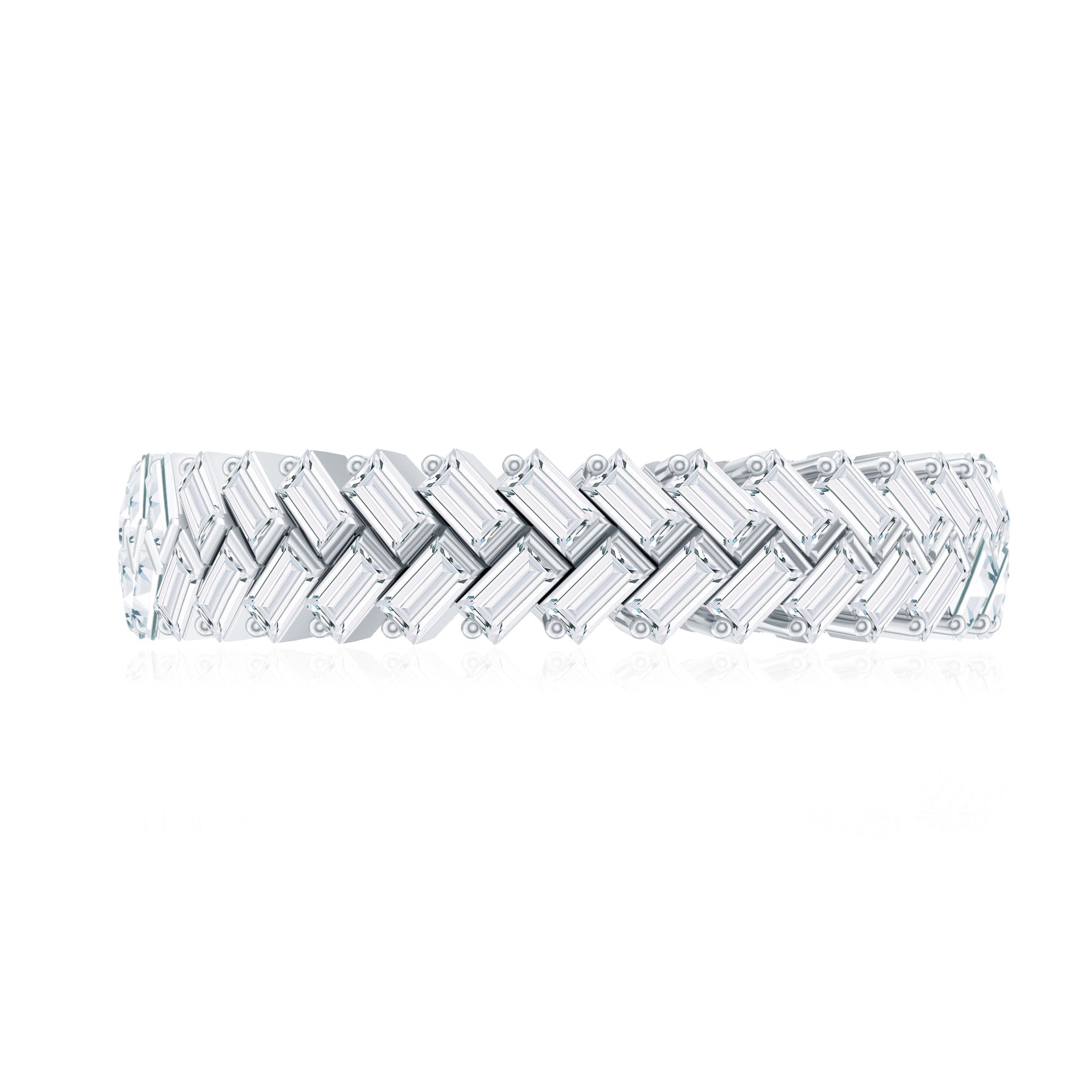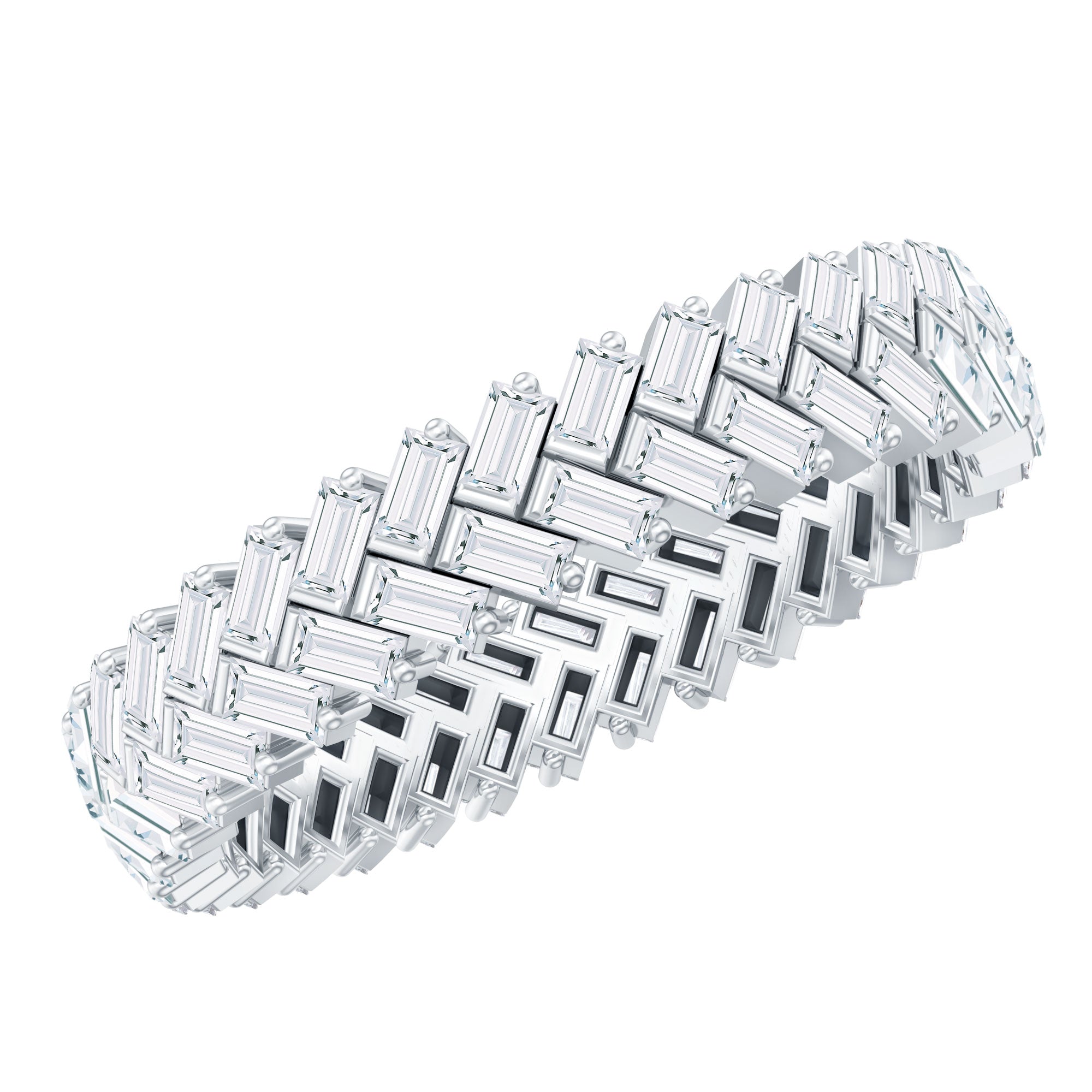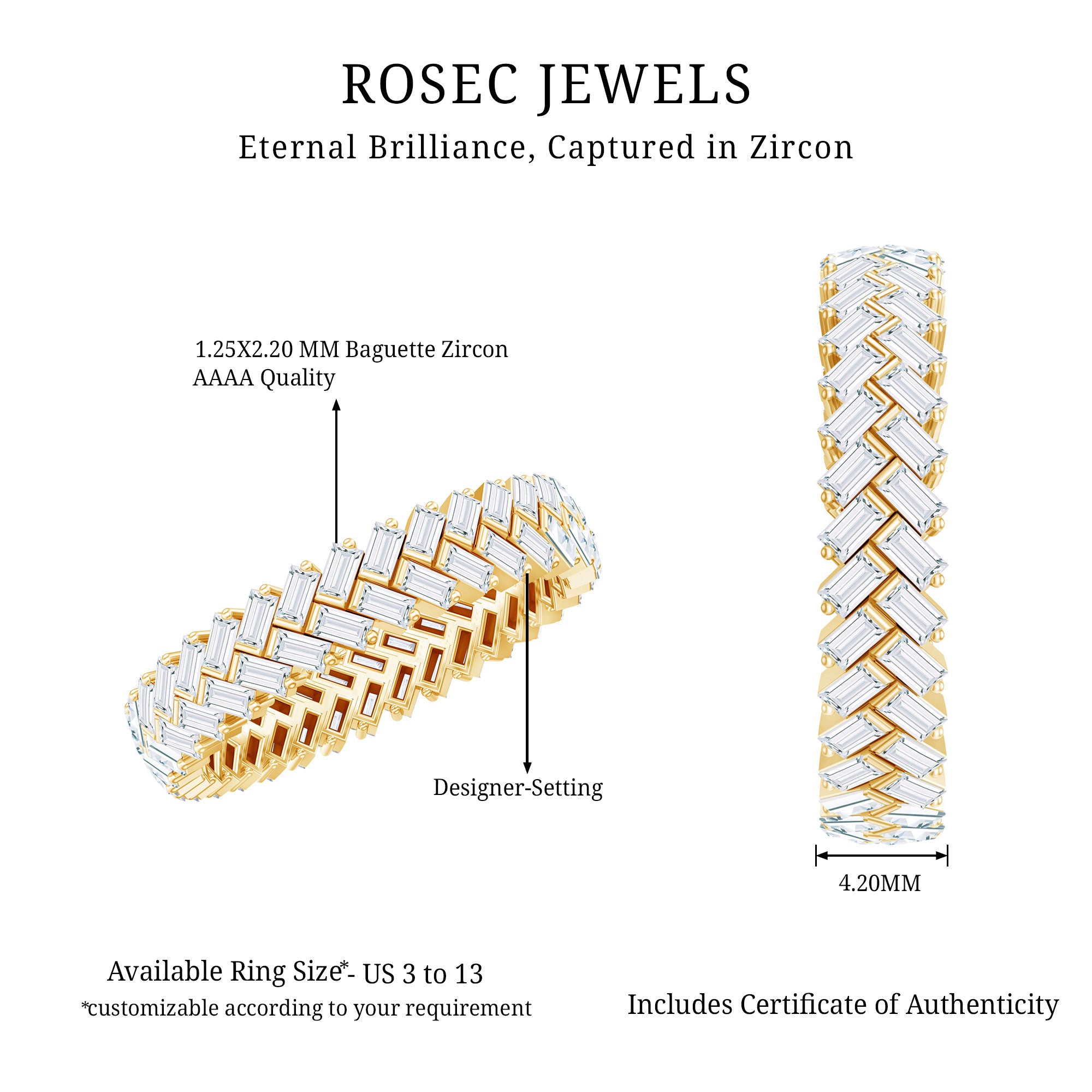 Strike out a gorgeous statement by wearing this elegant Braided Eternity Ring which is embellished with Baguette Cut Zircon. This Zircon Eternity Ring is crafted with Solid Gold for a luxurious appeal.