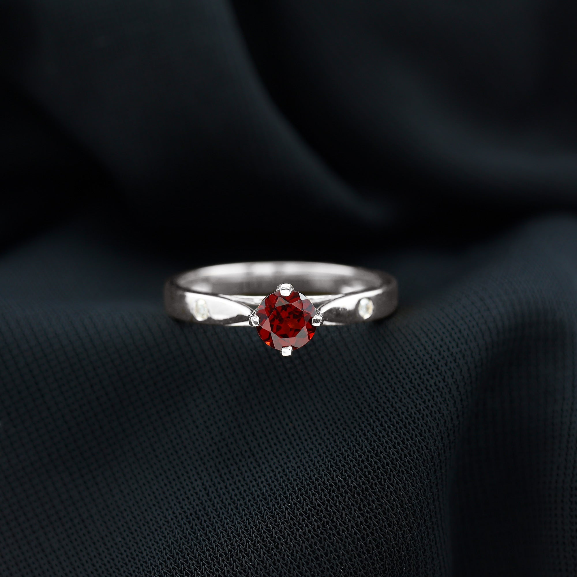 • Garnet Solitaire Rings: - Truly the most traditional option for a garnet engagement rings, the Solitaire Style emphasizes the singular centerpiece of garnet. What's great about this style is its versatility, appealing to various aesthetics. While a round cut garnet solitaire ring might be the classic choice. You can also opt for fancier cuts such as marquise, pear, or princess shapes to add a contemporary touch. For those seeking a vintage vibe then an asscher, cushion, or emerald cut garnet engagement ring will be the ideal choice.